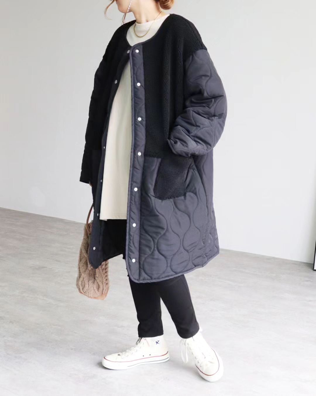 (Трансграничная торговля), японский демисезонный брендовый длинный пуховик, свободный крой, средней длины