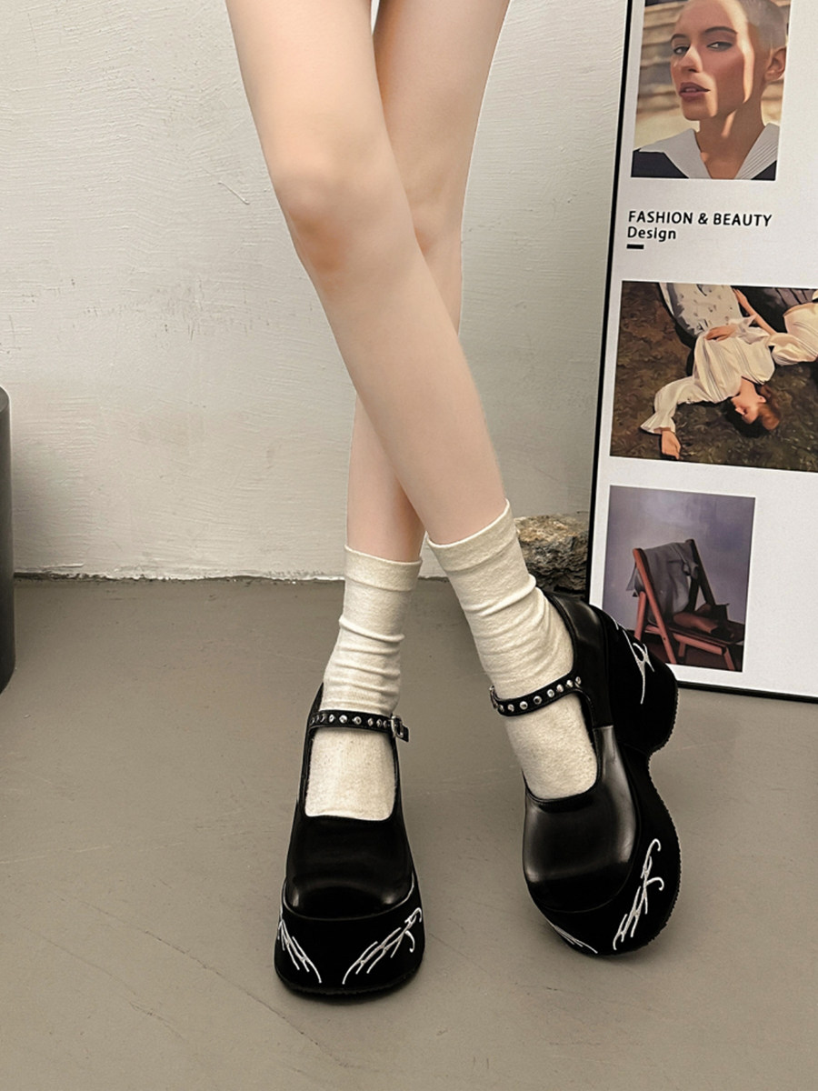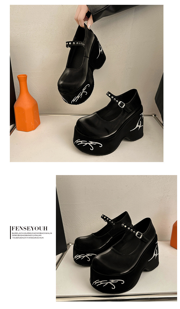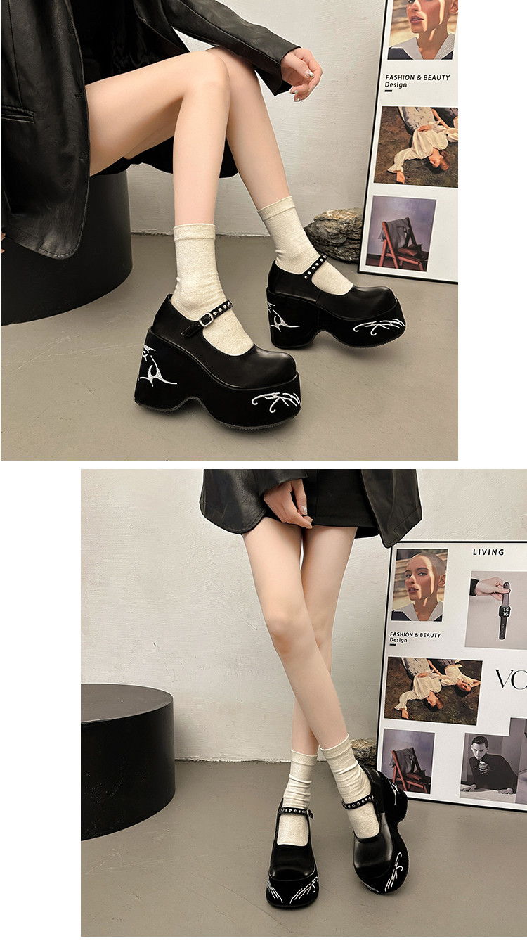 Высокая весенняя черная обувь на платформе для кожаной обуви, 2024 года