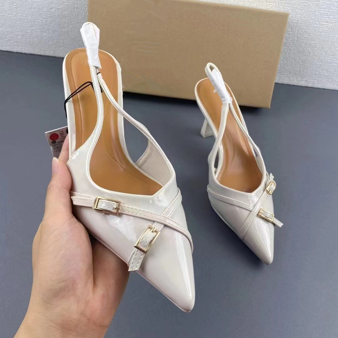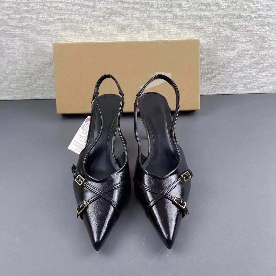 Испанский 2024 Весна Новый острый и мелкий рот позади спотыкающих женских туфлей черная пряжка тонкие каблуки Мюллер Сандалии