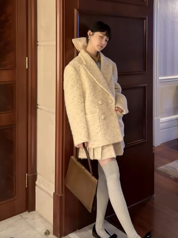 Шерстяное пальто, юбка, демисезонный комплект с пухом, изысканный стиль, подходит для подростков