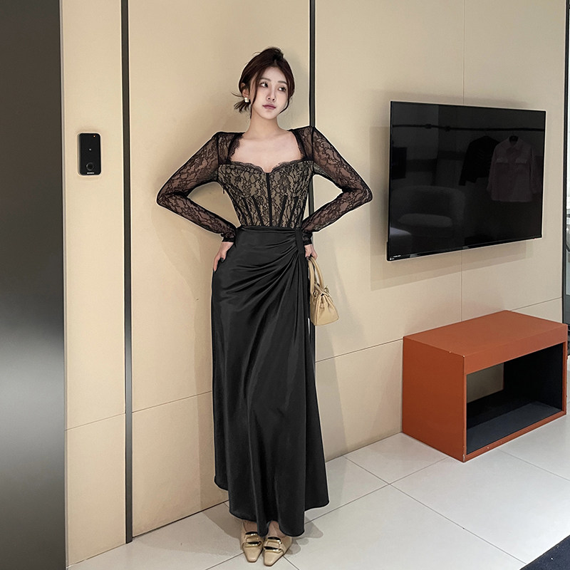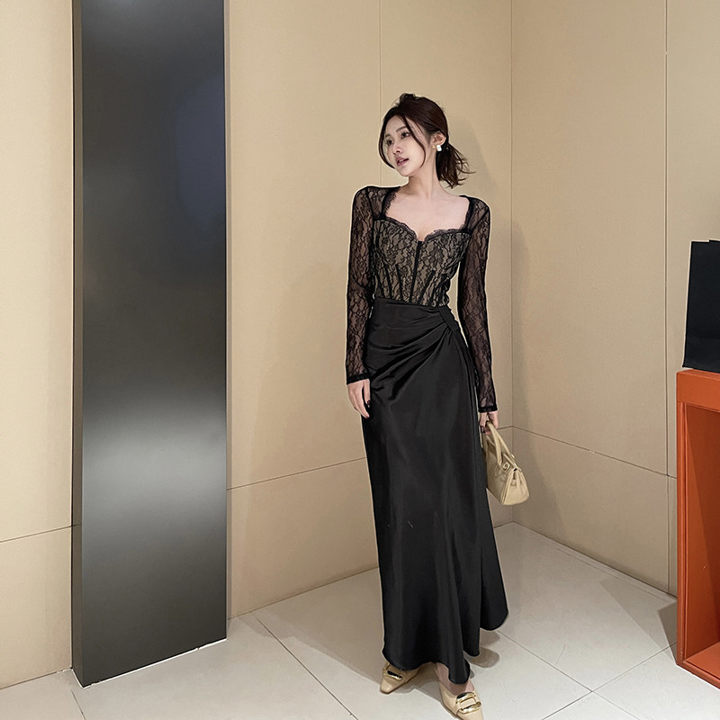 Кружевной модный корсет для приставной кровати, поясная сумка, длинная юбка, французский стиль, облегающий крой, с акцентом на бедрах, средней длины