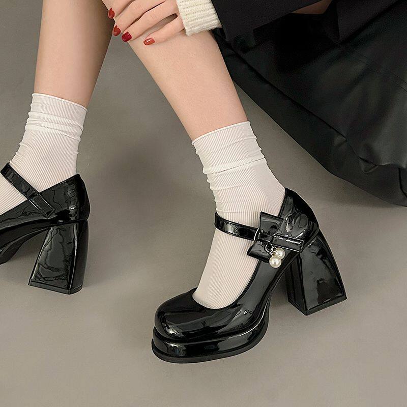 Белые туфли на высоком каблуке, зимняя подходит с юбкой на платформе для кожаной обуви, французский стиль, подходит для подростков