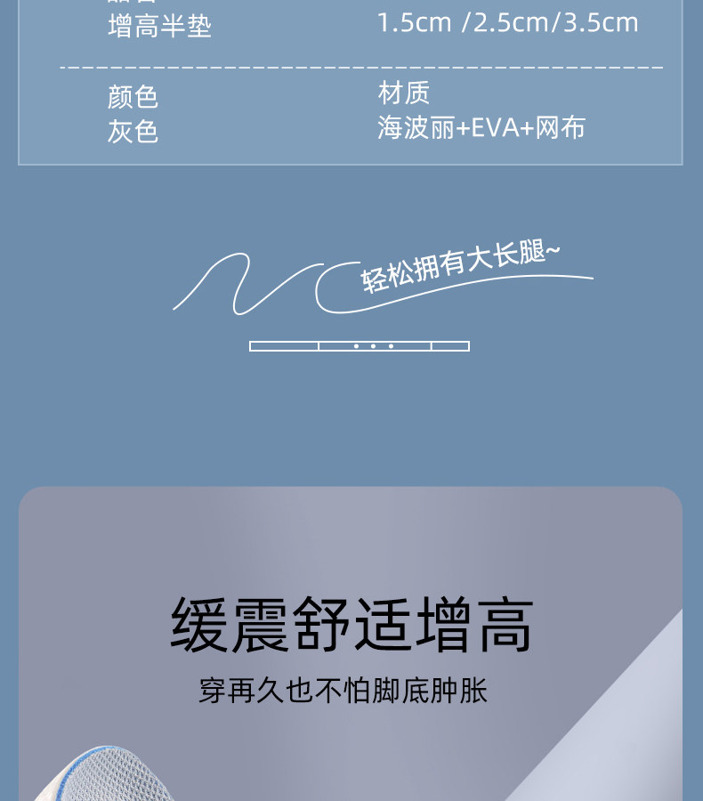- Семь пунктов увеличения прокладки [2 пары] 2,5 см белого серого цвета