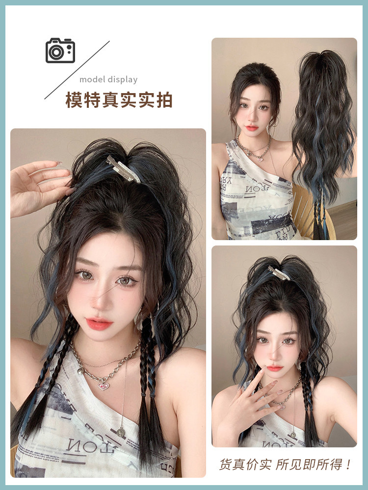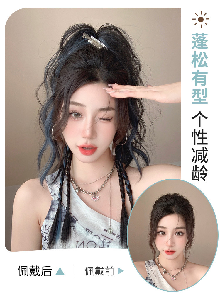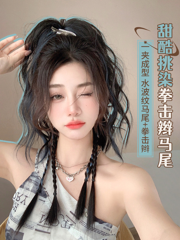 Парик с косичкой, заколка-крабик изготовленная из настоящих волос, боксерский хвостик, придает объем