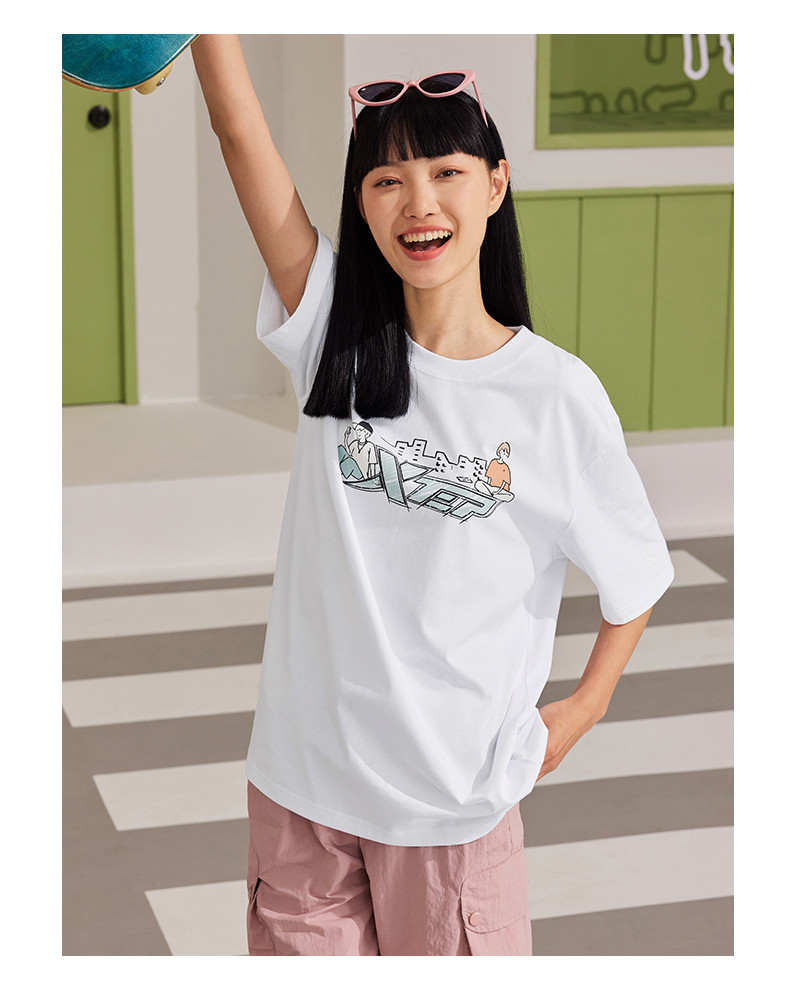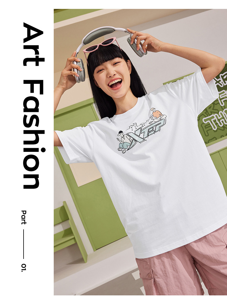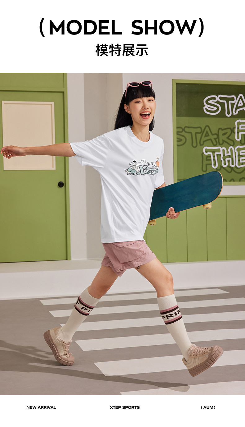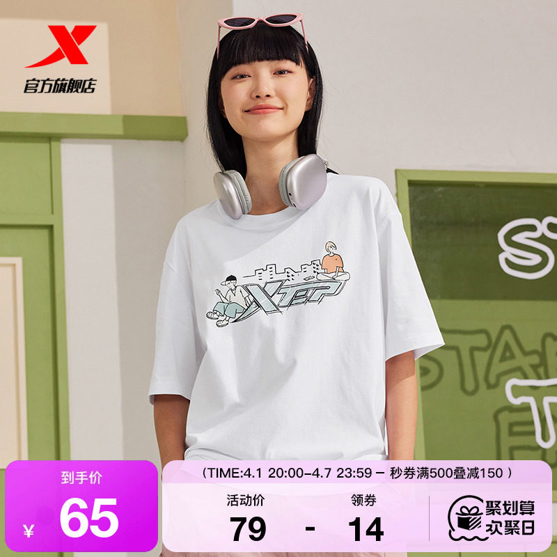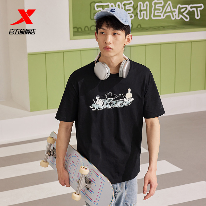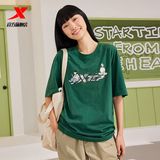 XTSTEP с короткими рукавами мужчин и женского стиля летний новый стиль официальный развлекательный логотип Pure Cotton Sports и повседневная пара свободная топ