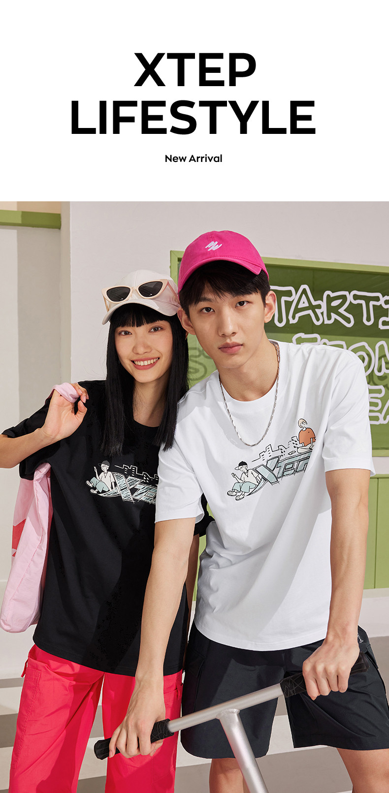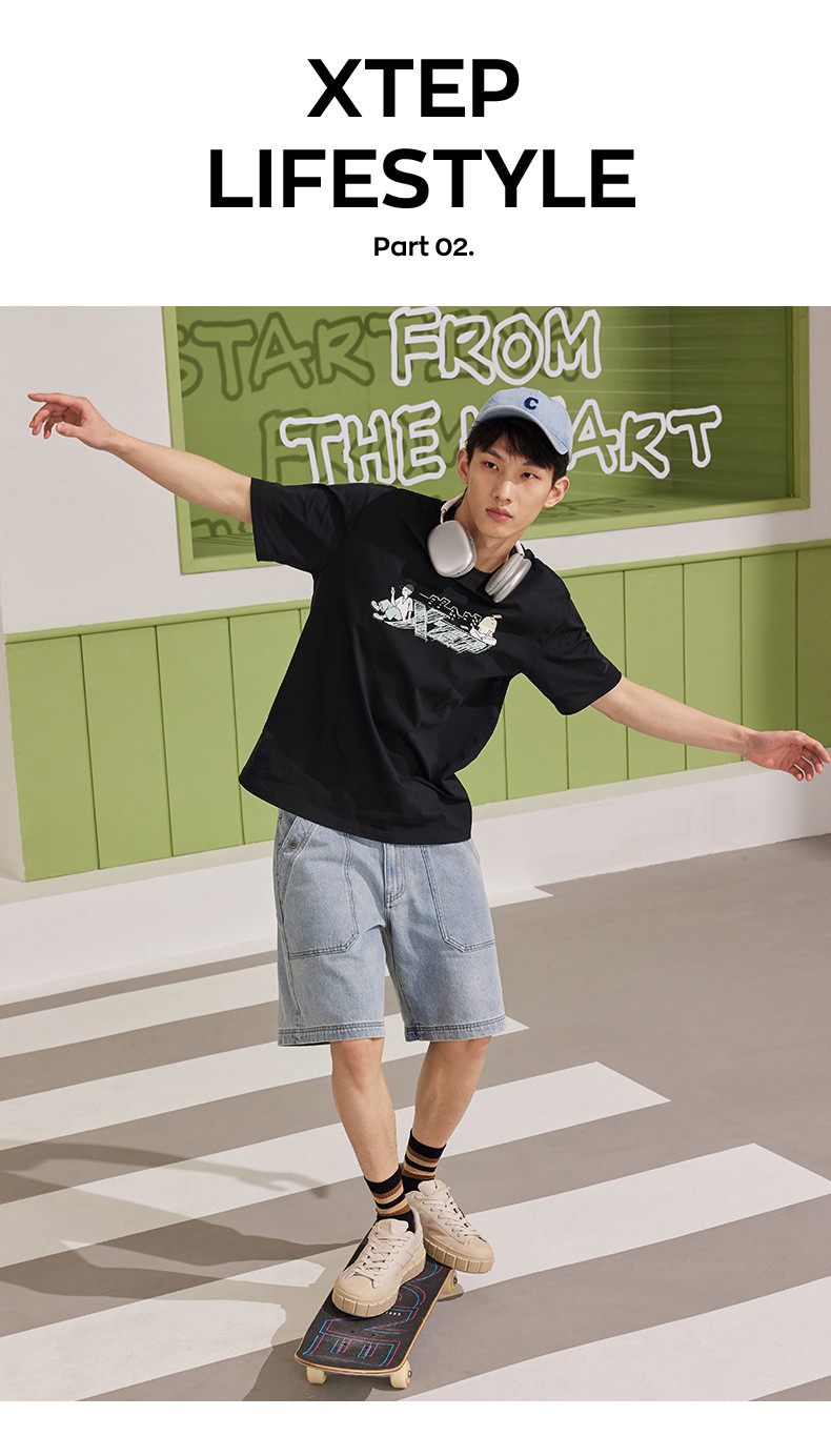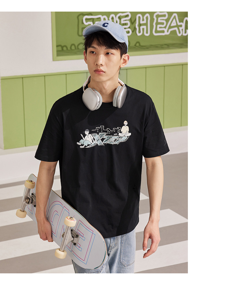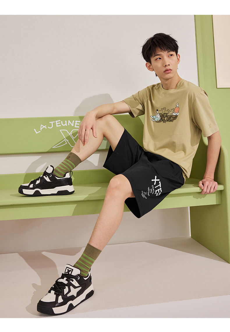 XTSTEP с короткими рукавами мужчин и женского стиля летний новый стиль официальный развлекательный логотип Pure Cotton Sports и повседневная пара свободная топ