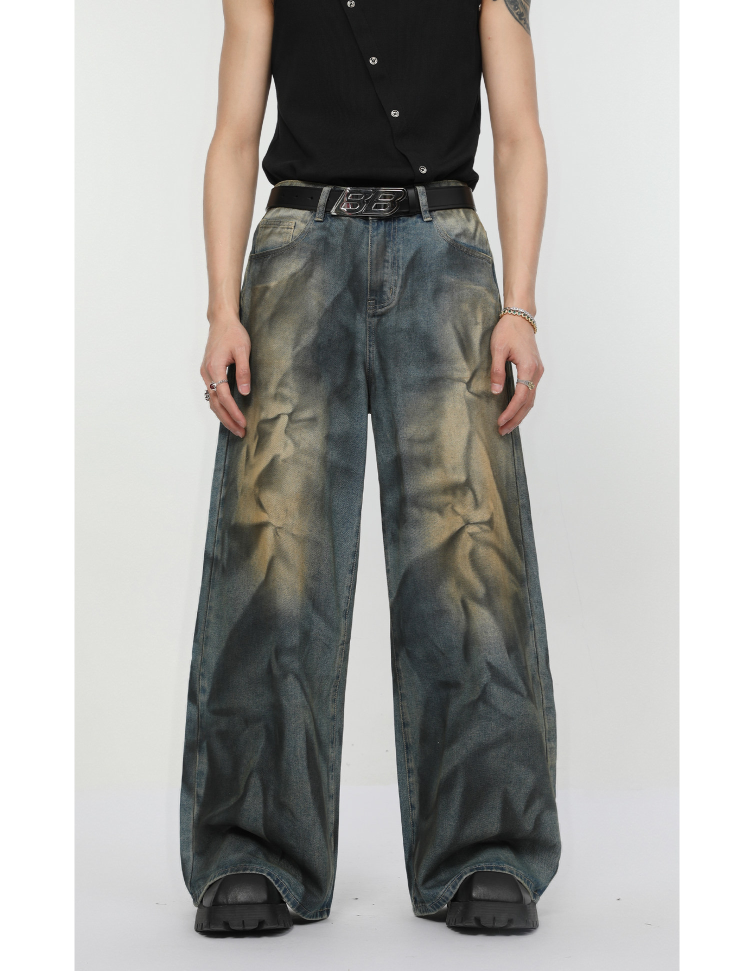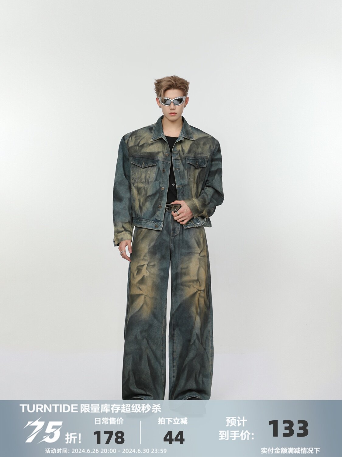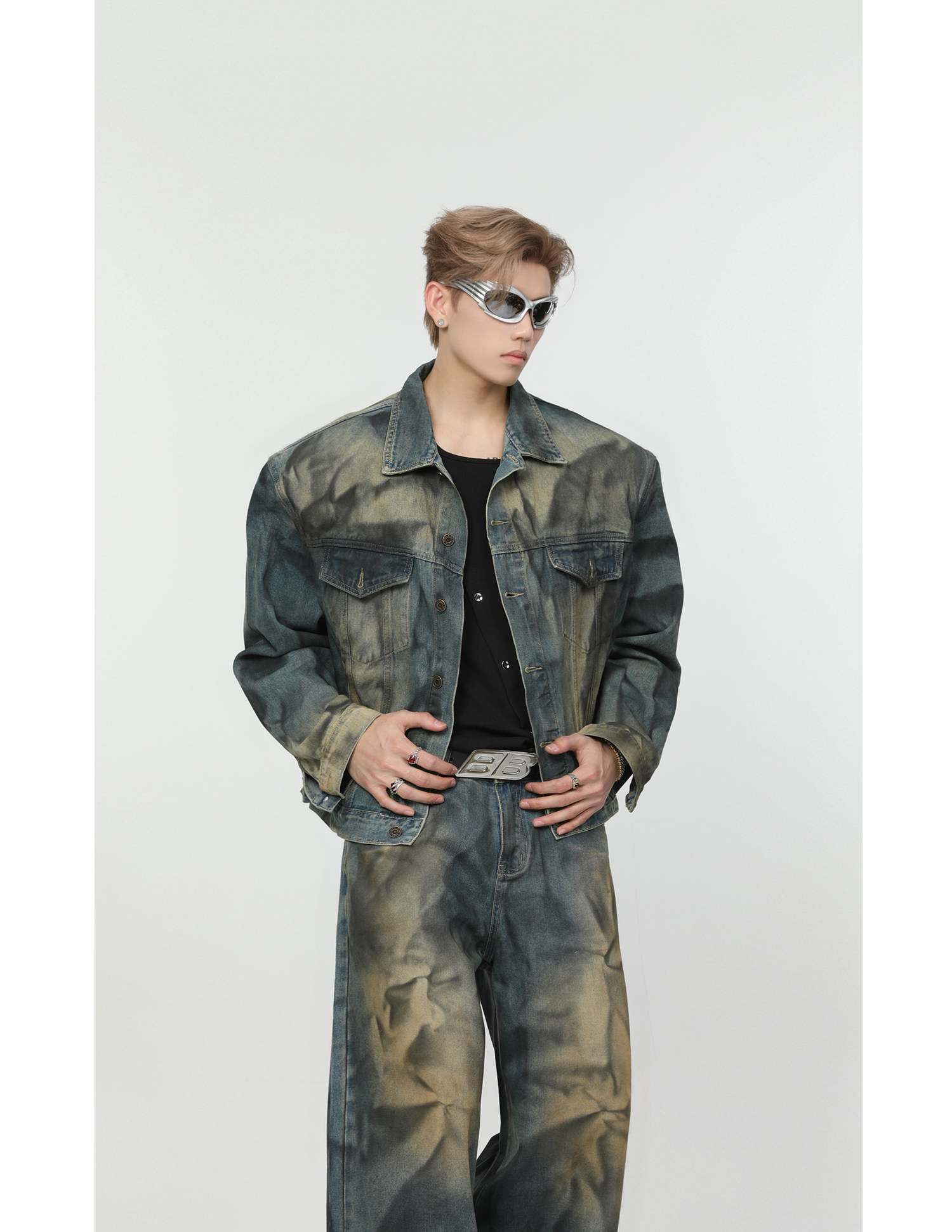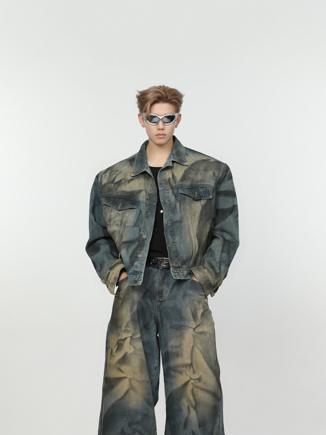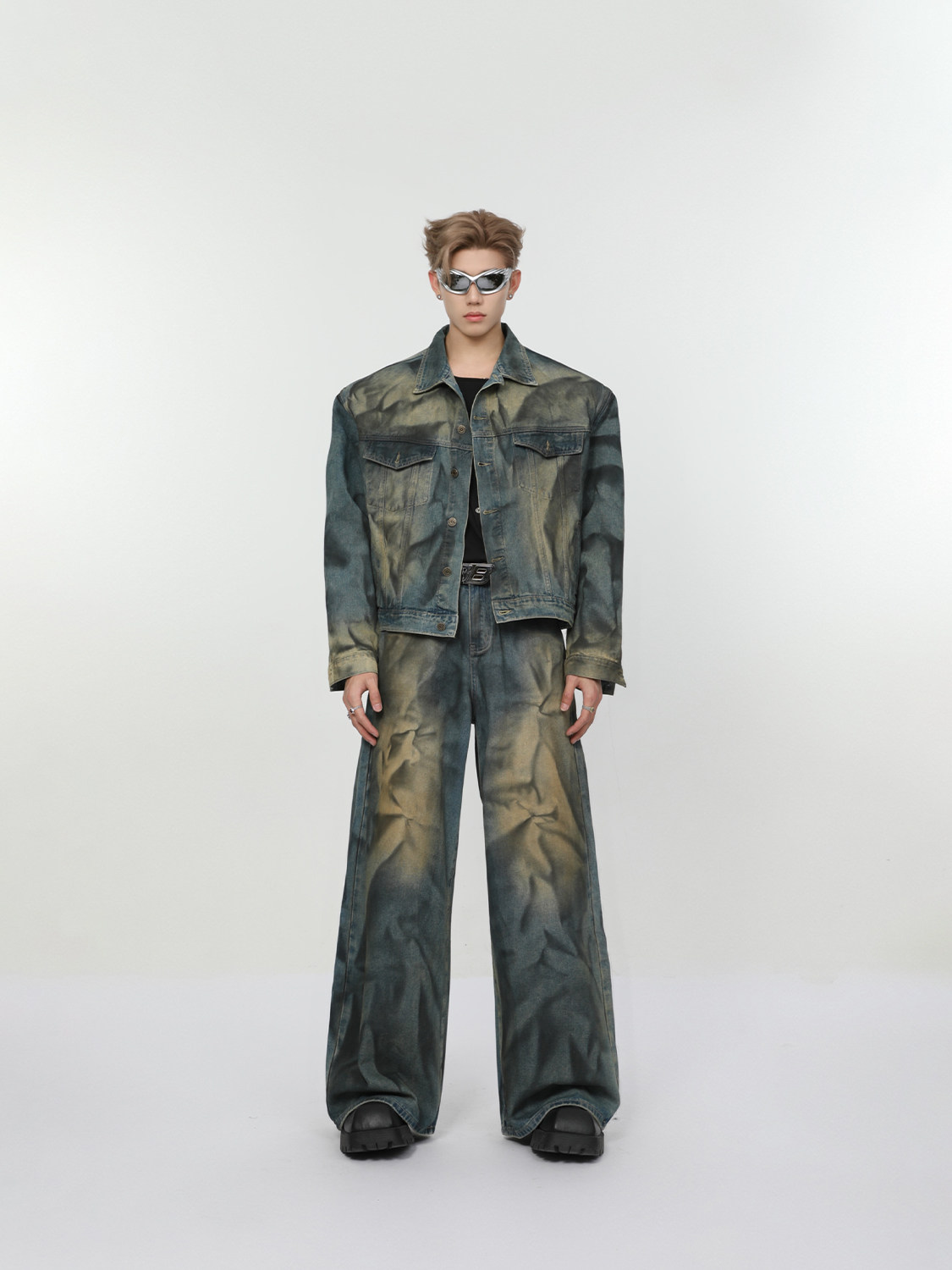 Ретро джинсовый комплект, наплечники, куртка, штаны, свободный прямой крой