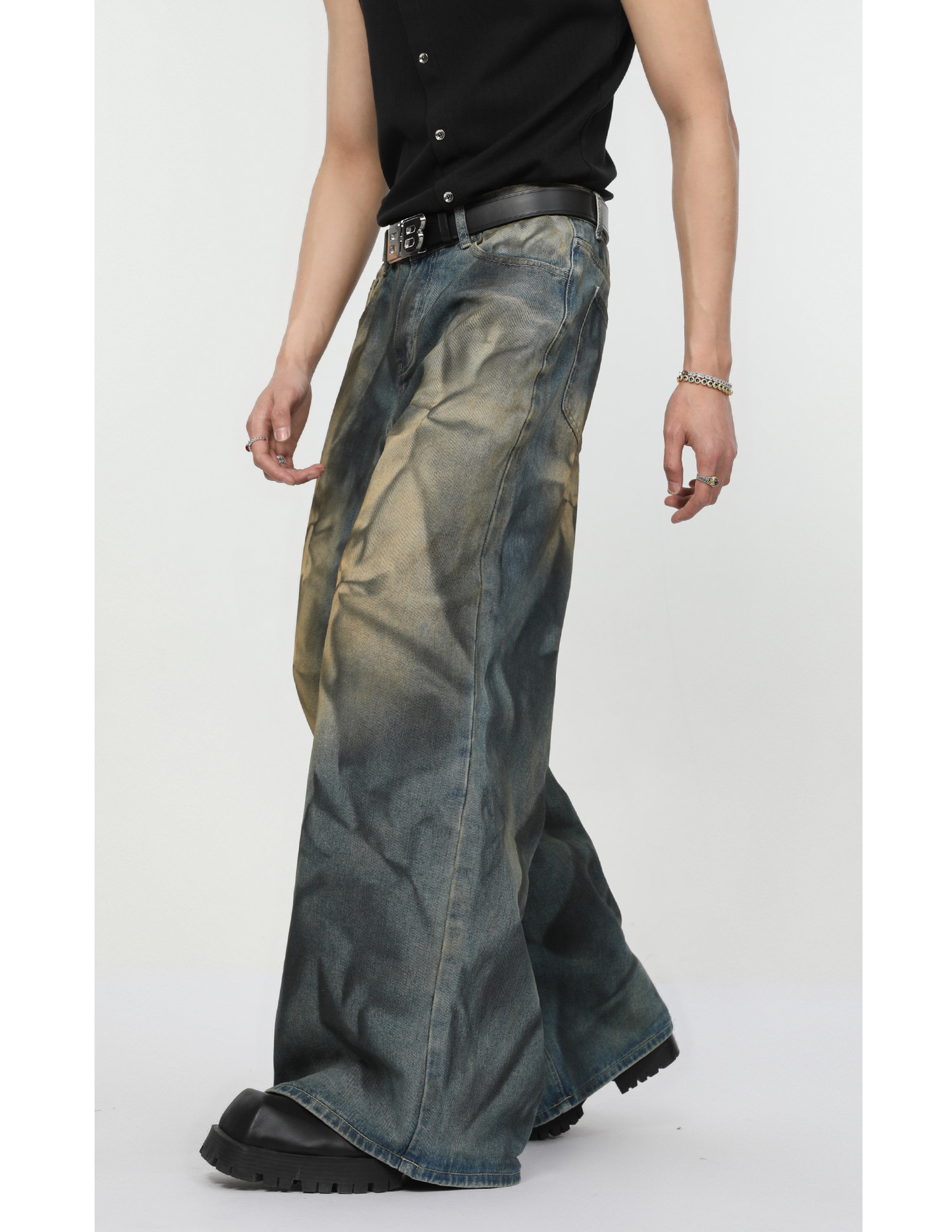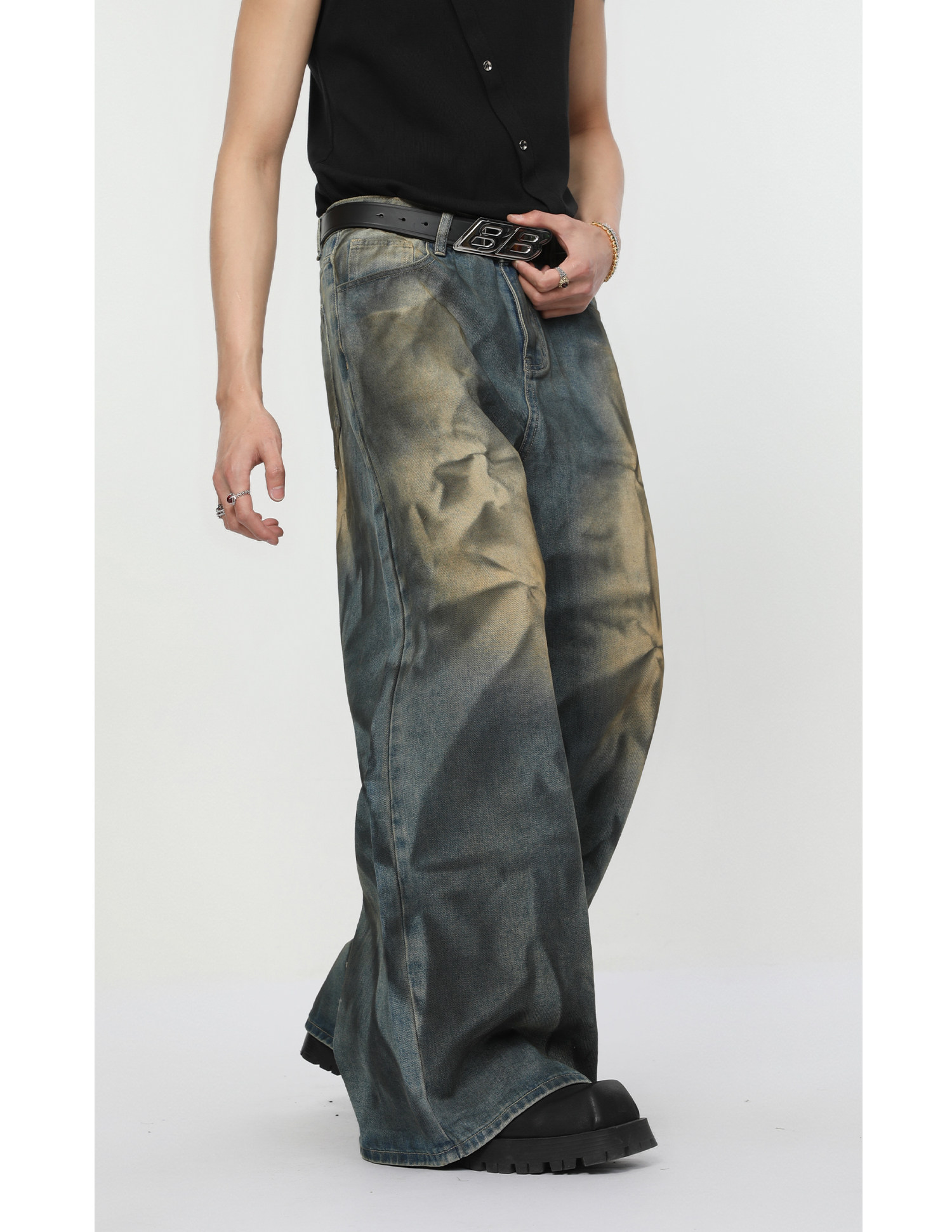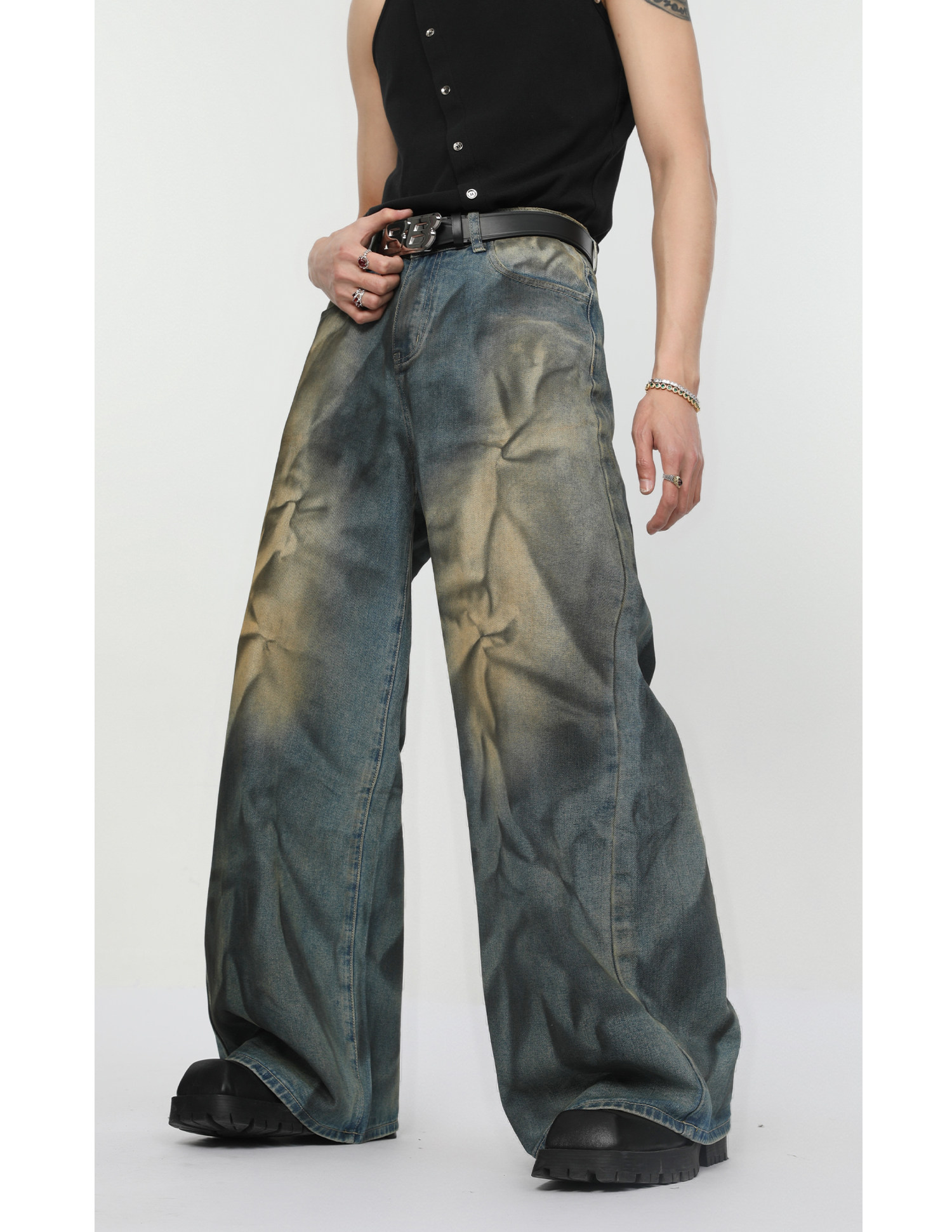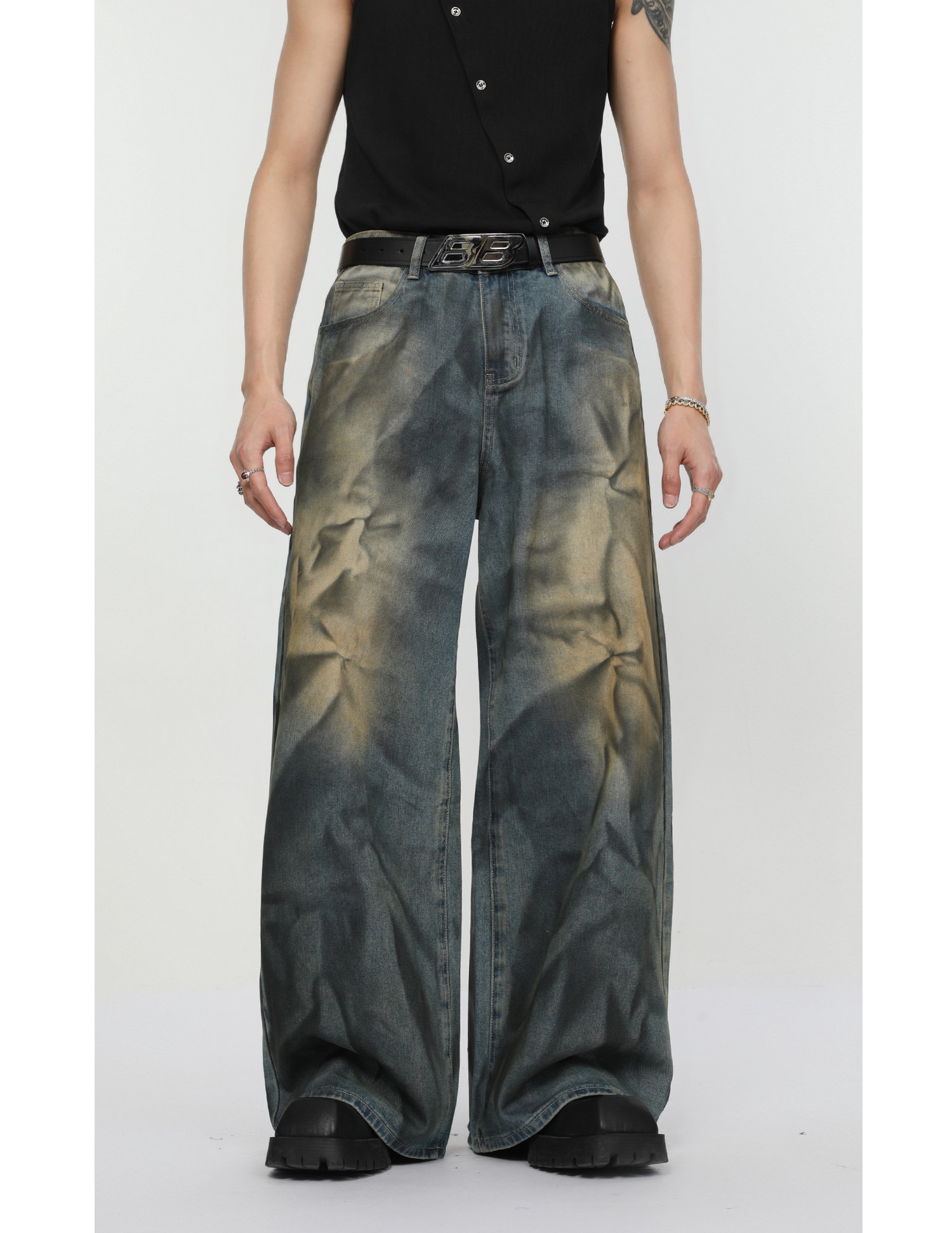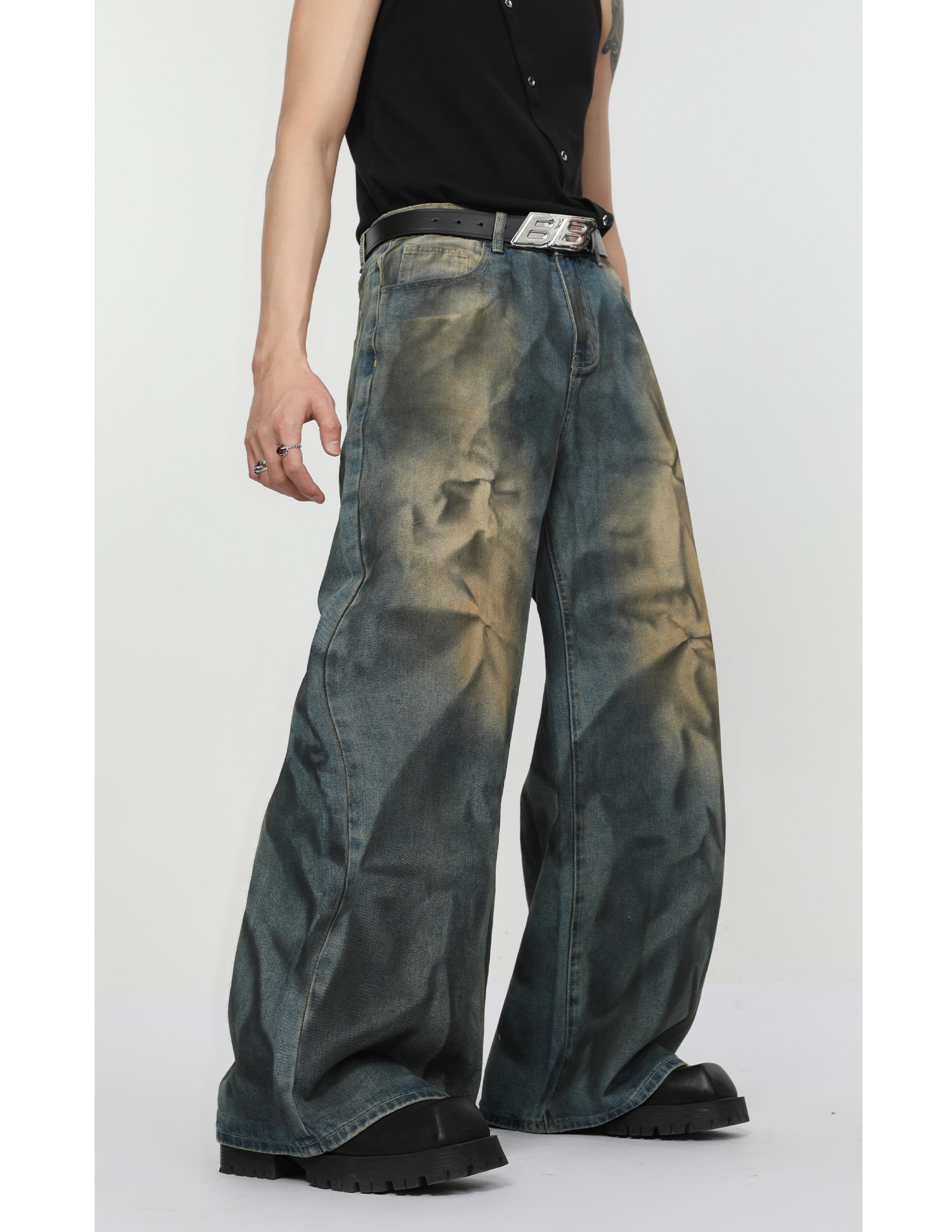Ретро джинсовый комплект, наплечники, куртка, штаны, свободный прямой крой