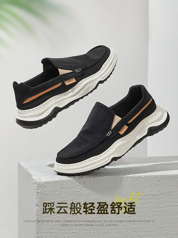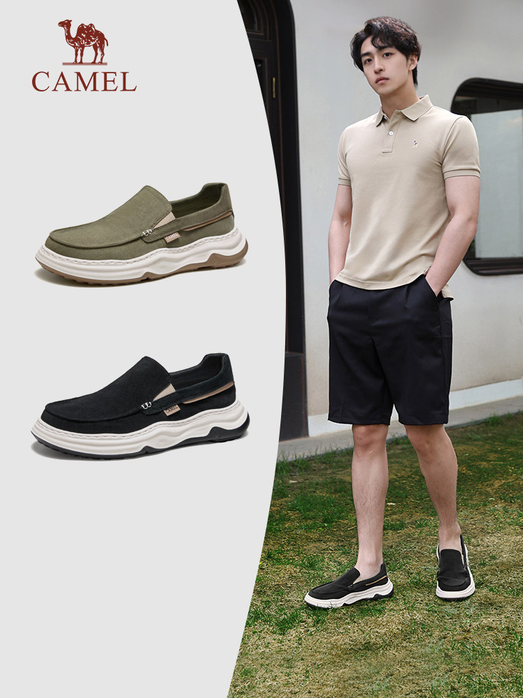 Мужская обувь верблюжьего цвета, новинка 2025 года, летняя дышащая легкая обувь без шнуровки для папы, мужская деловая повседневная тканевая обувь