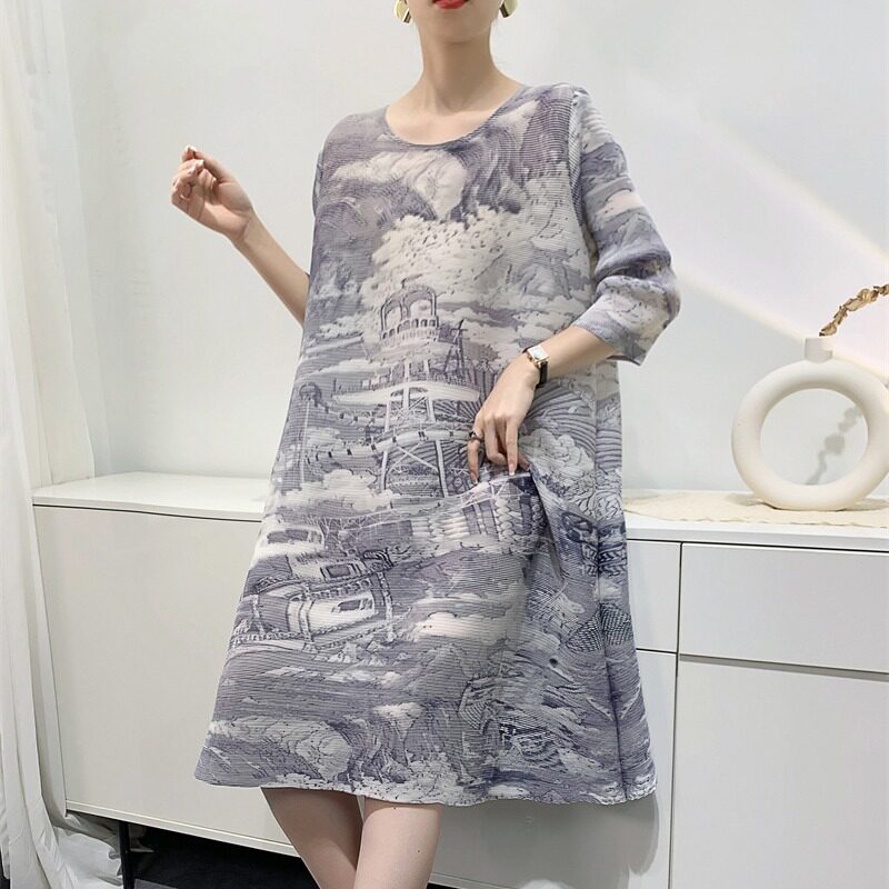 Платье, ретро летняя юбка, изысканный стиль, свободный крой, яркий броский стиль