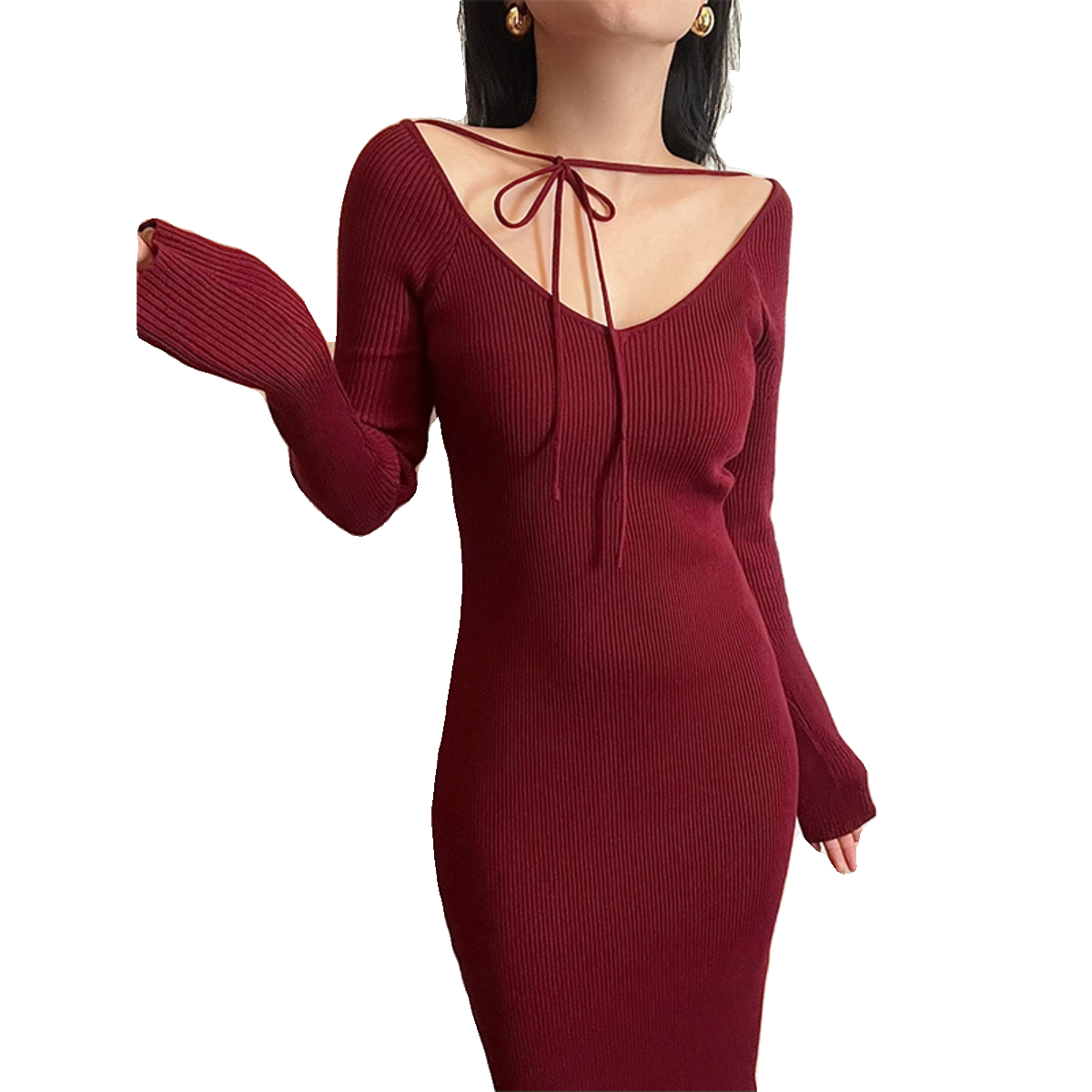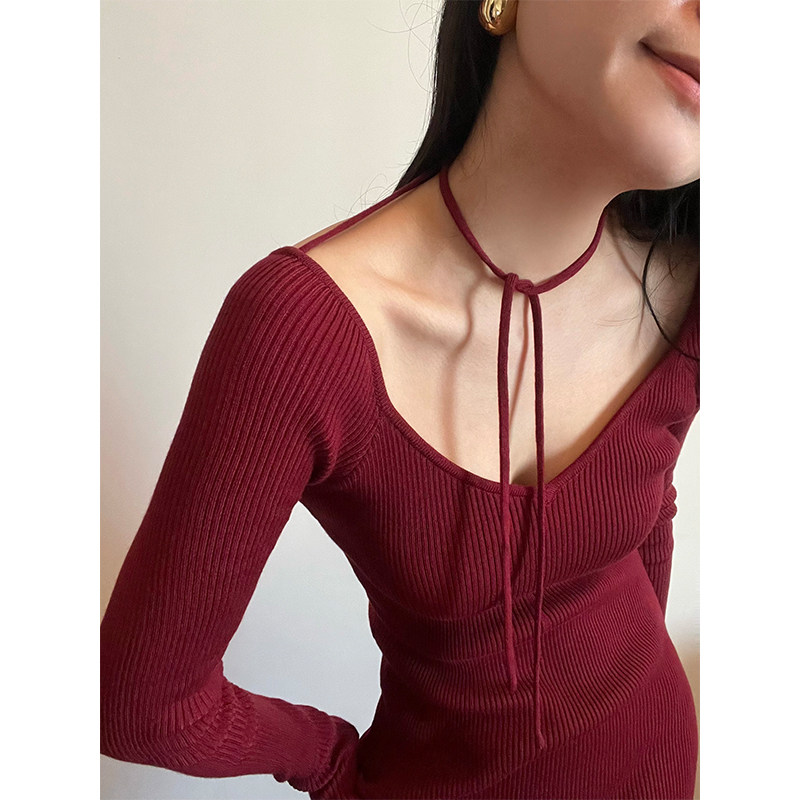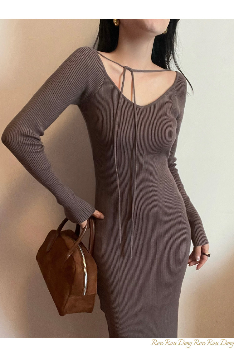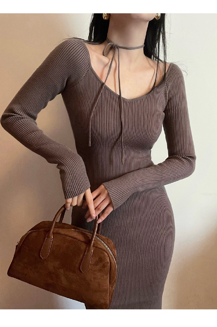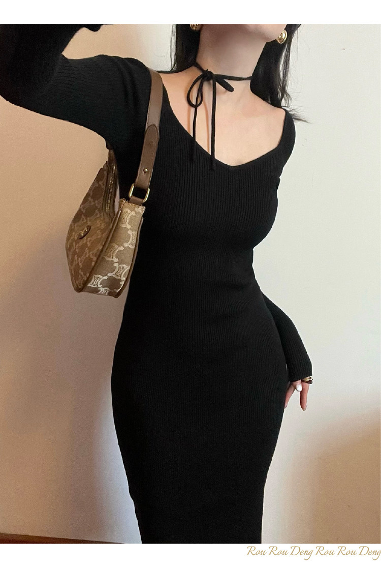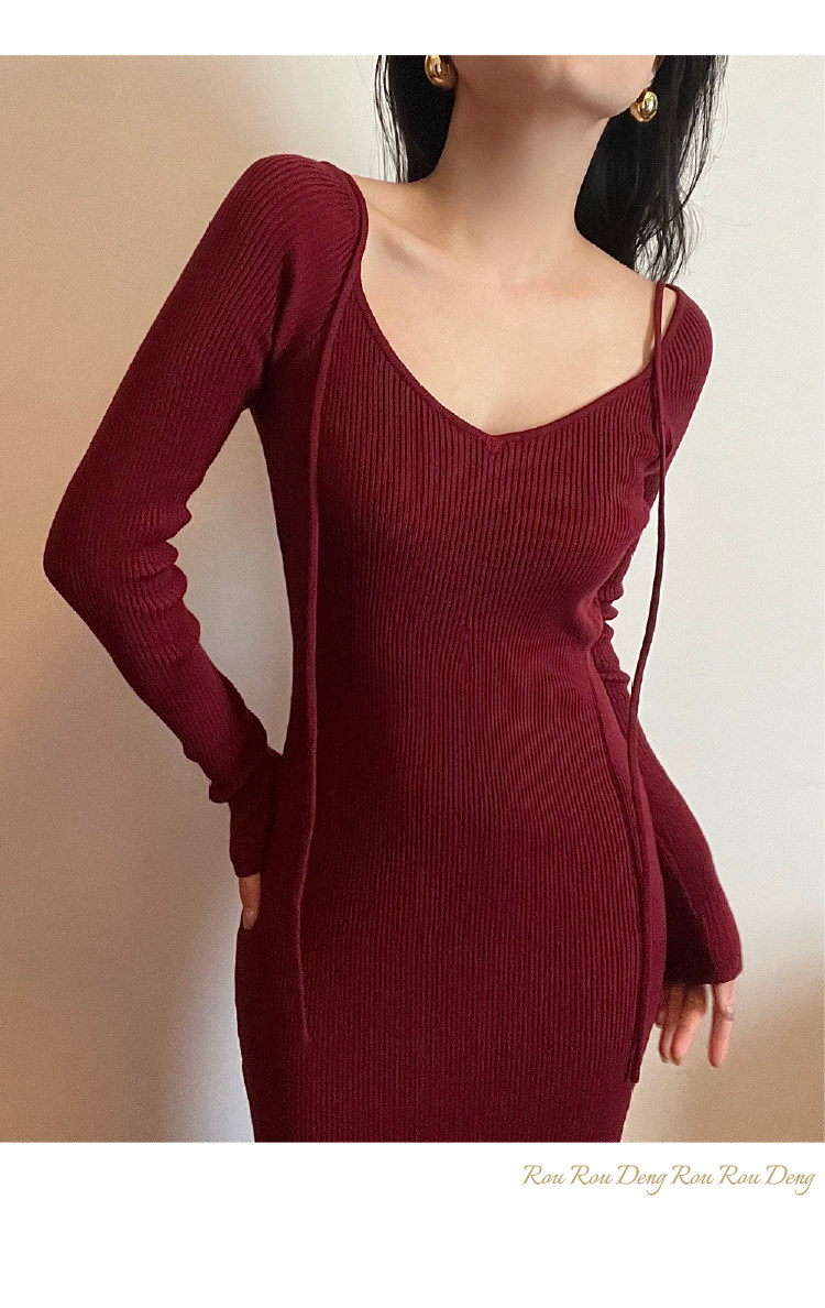Ремень, трикотажное платье, приталенная длинная юбка, французский стиль, 2024 года, городской стиль, яркий броский стиль, изысканный стиль, с акцентом на бедрах