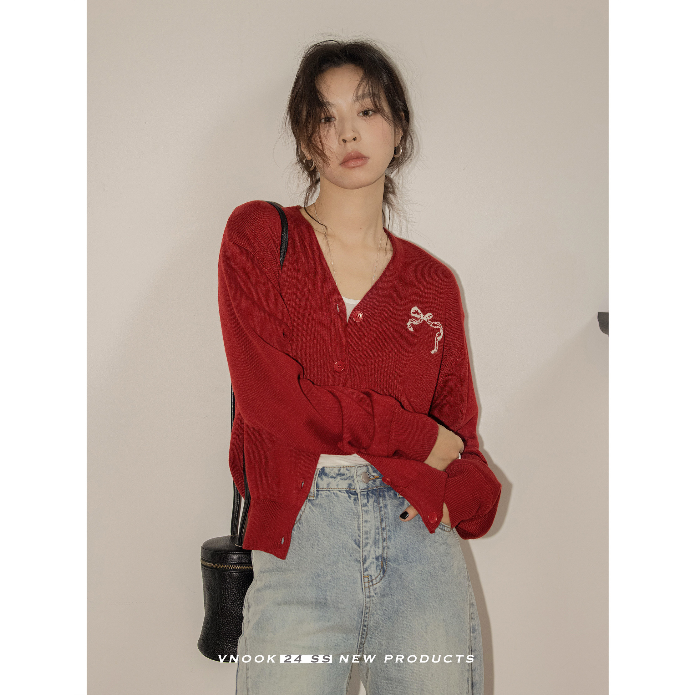 Красный весенний свитер, демисезонный кардиган, классическая шерстяная куртка, оверсайз, V-образный вырез