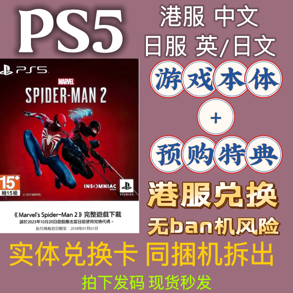 PS5 Marvel Spider-Man 2 Код активации сервера в Гонконге, цифровое издание, код загрузки, гонконгский комплект, распакованная подлинная версия