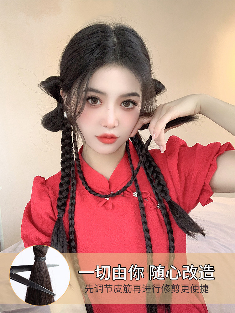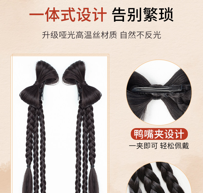 Парик с косичкой, заколка-крабик с бантиком для плетения волос, боксерский хвостик, дреды, 2 карат