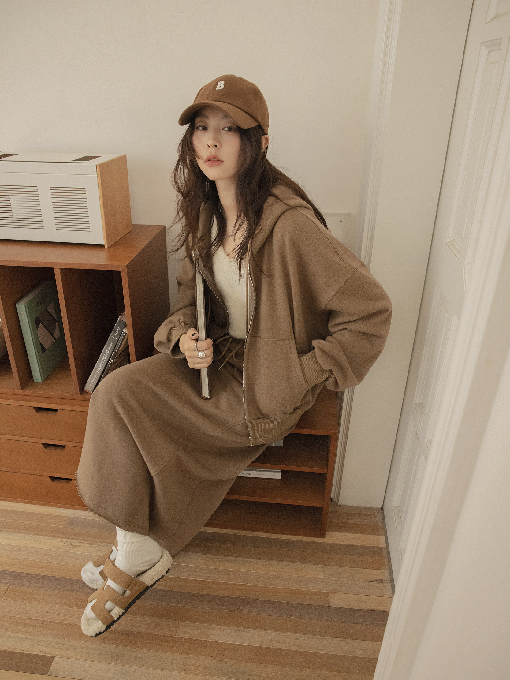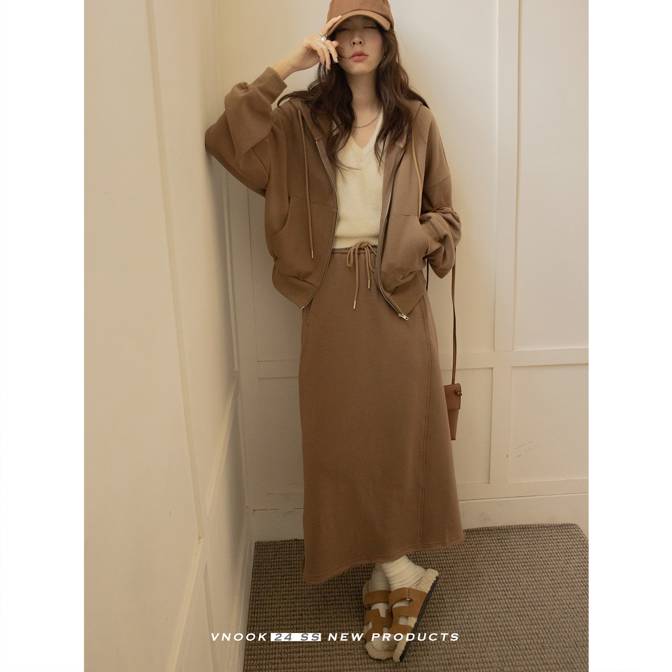 Спортивная весенняя толстовка с капюшоном, куртка, юбка, комплект, свободный крой