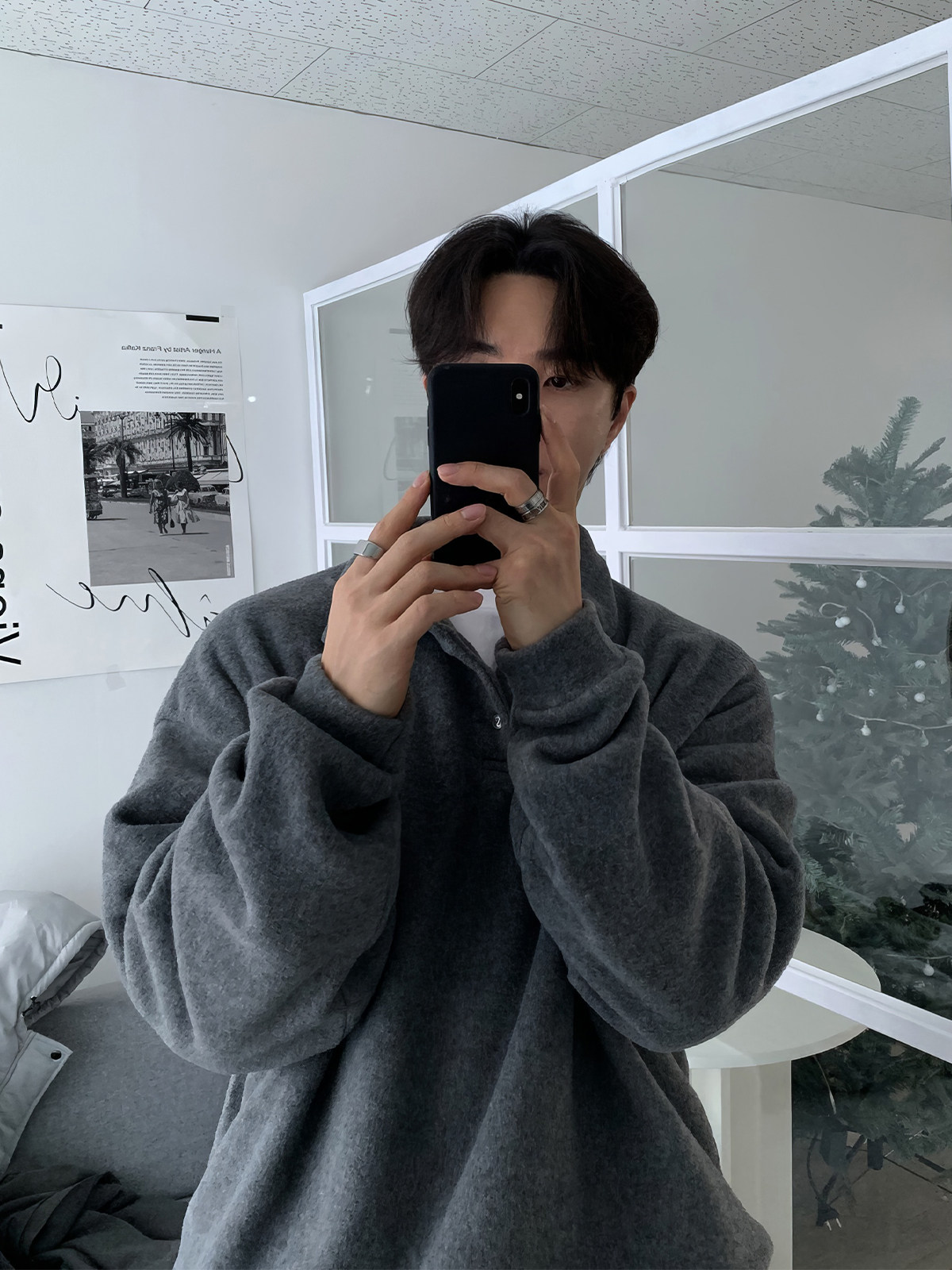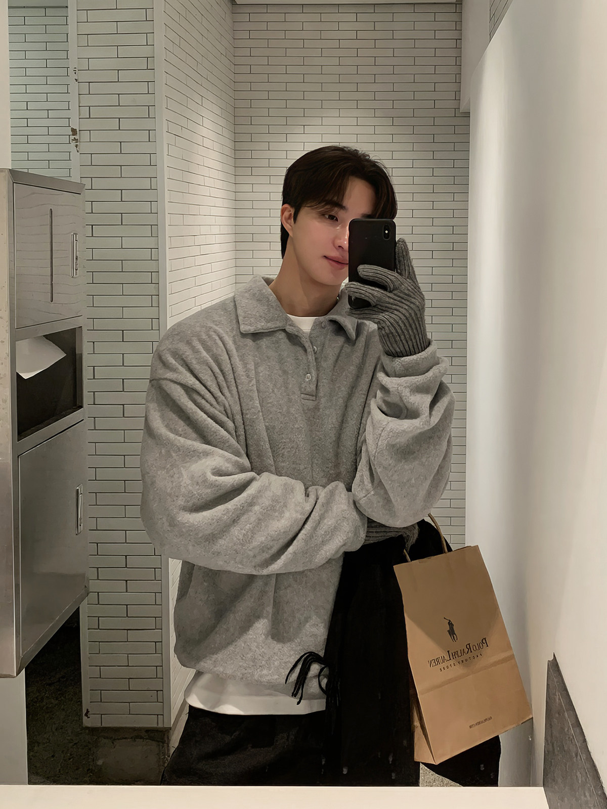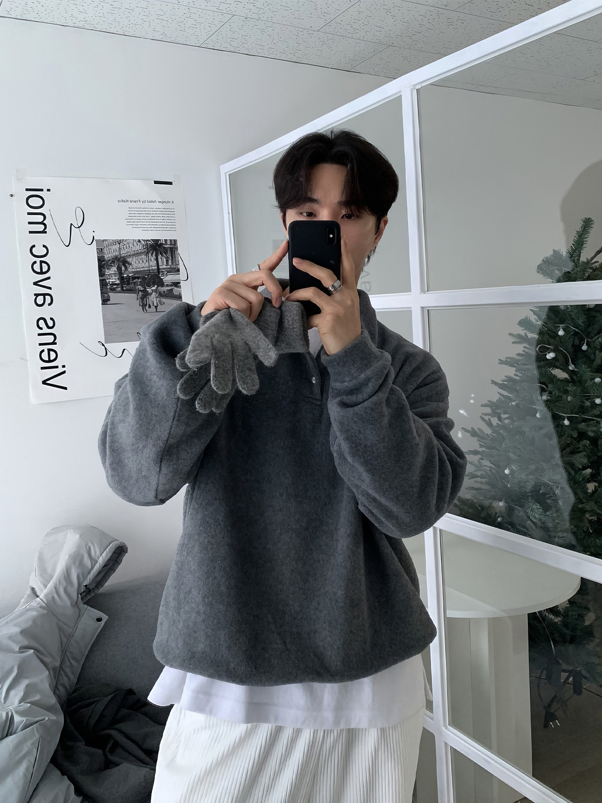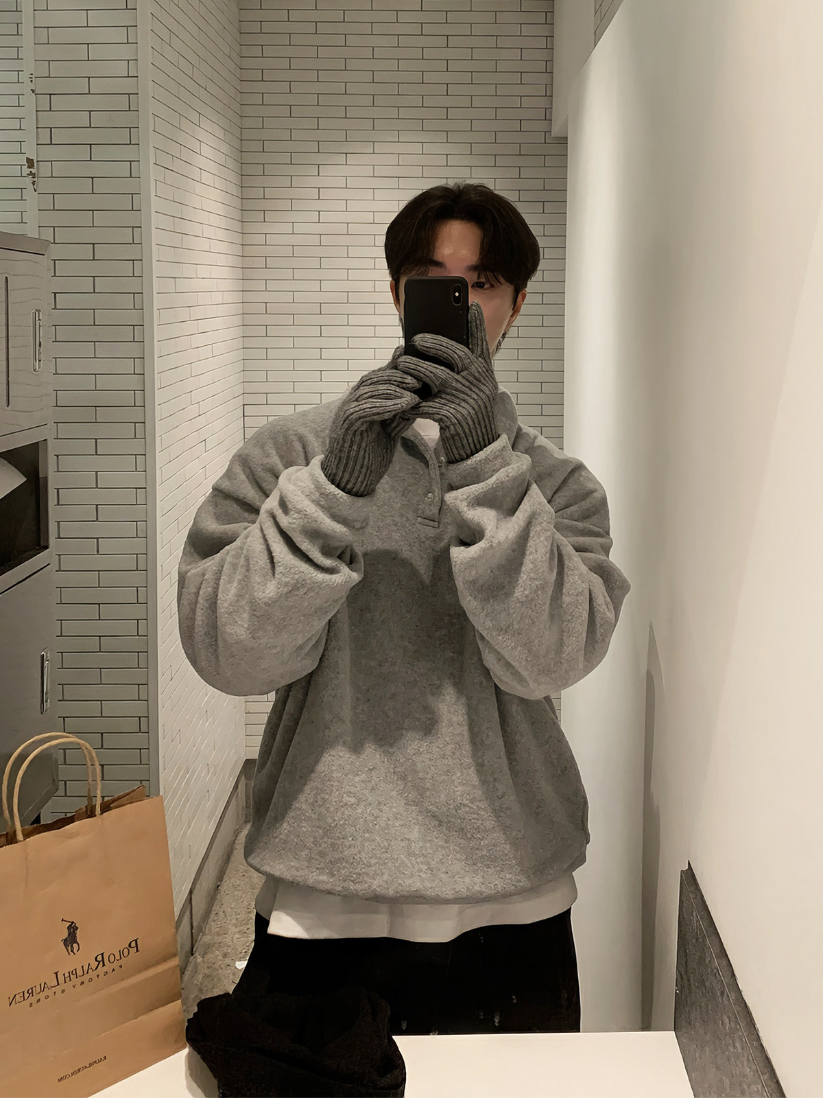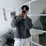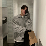 Мужская шерстяная демисезонная толстовка, южнокорейский товар, утепленная куртка, воротник поло, в корейском стиле