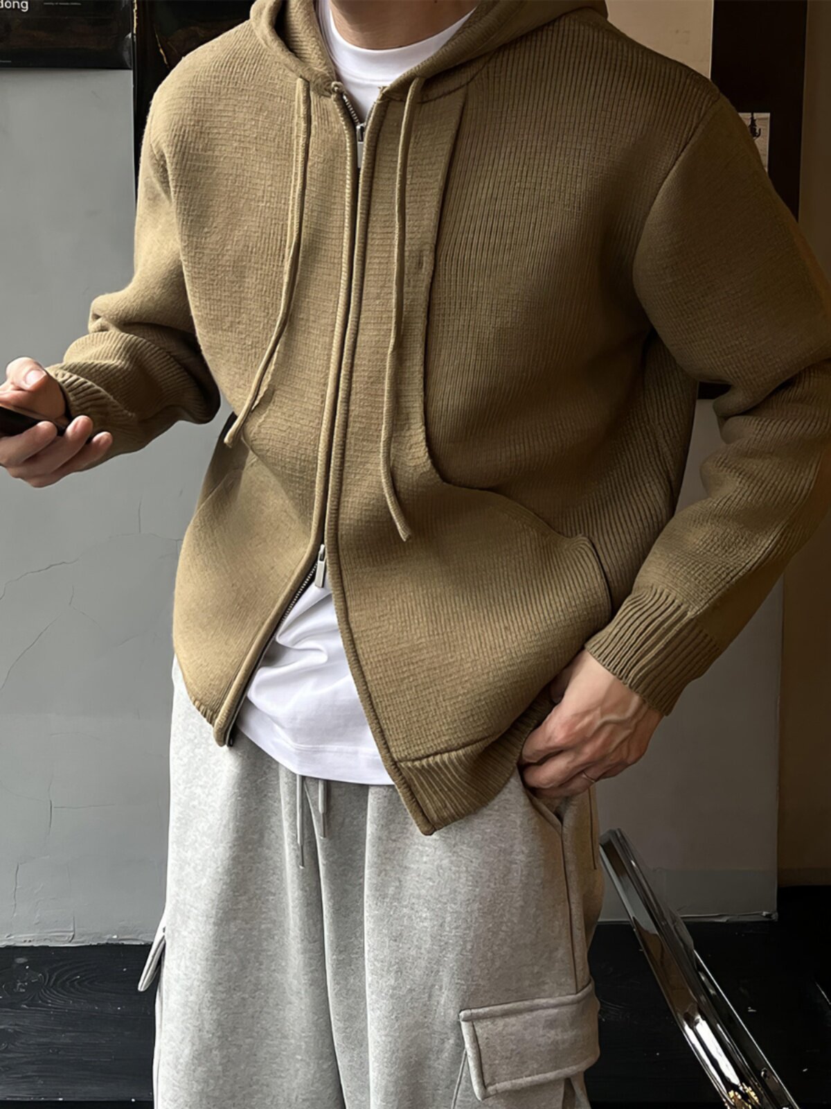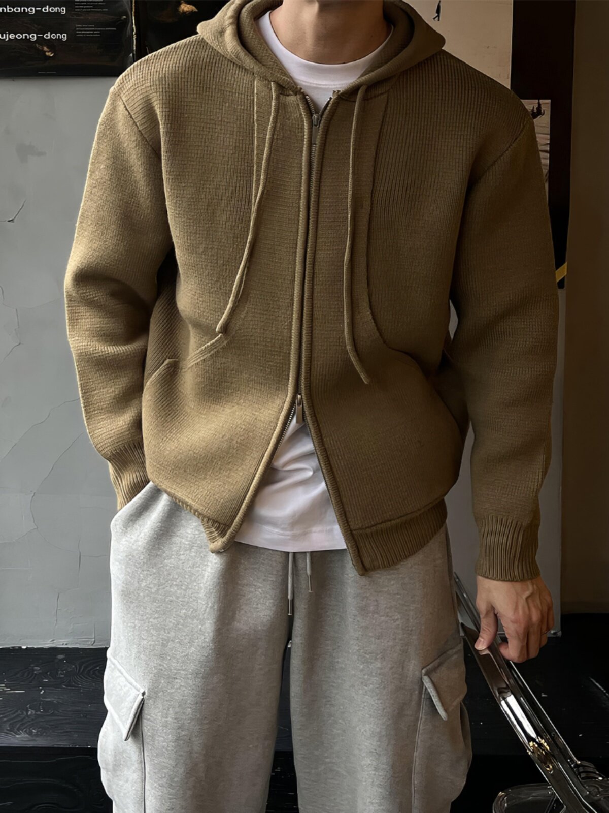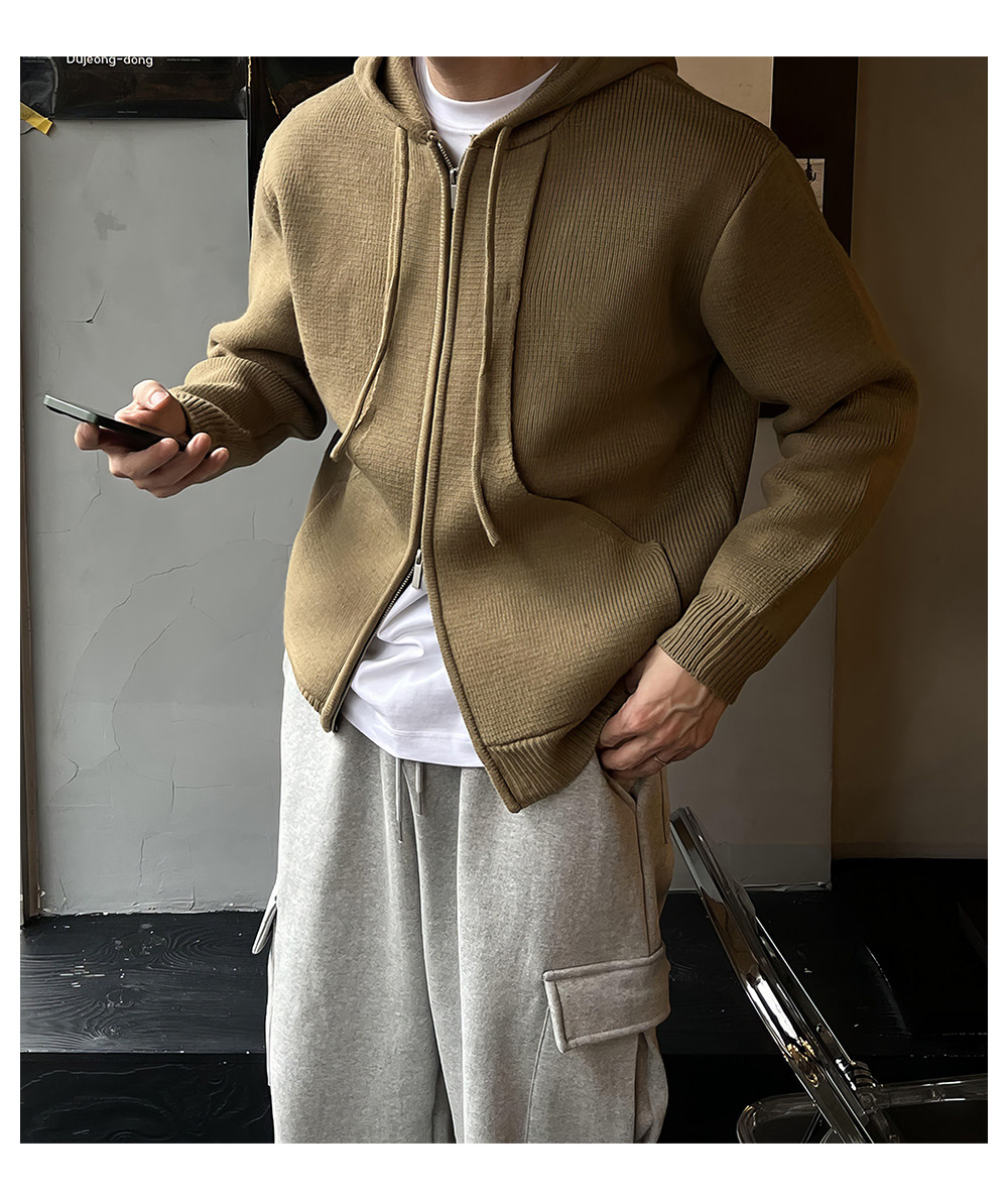 Толстовка с капюшоном, мужской осенний свитер, южнокорейский удерживающий тепло товар, кардиган, увеличенная толщина, в корейском стиле