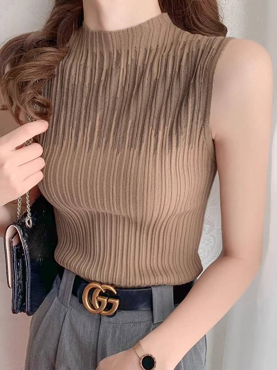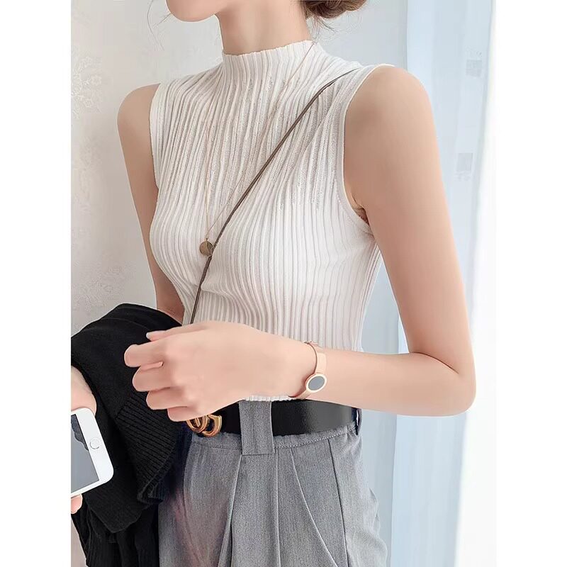 Трикотажный осенний жилет, осенняя белая базовая приятная телу майка топ без рукавов