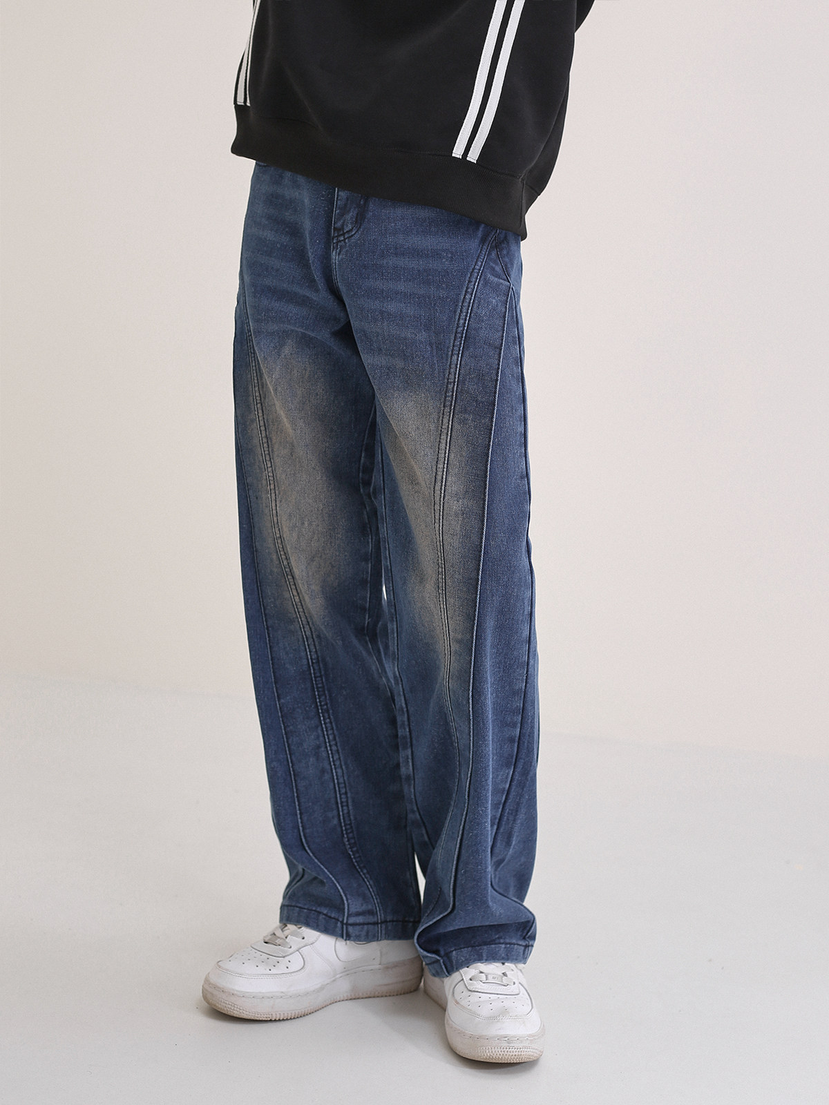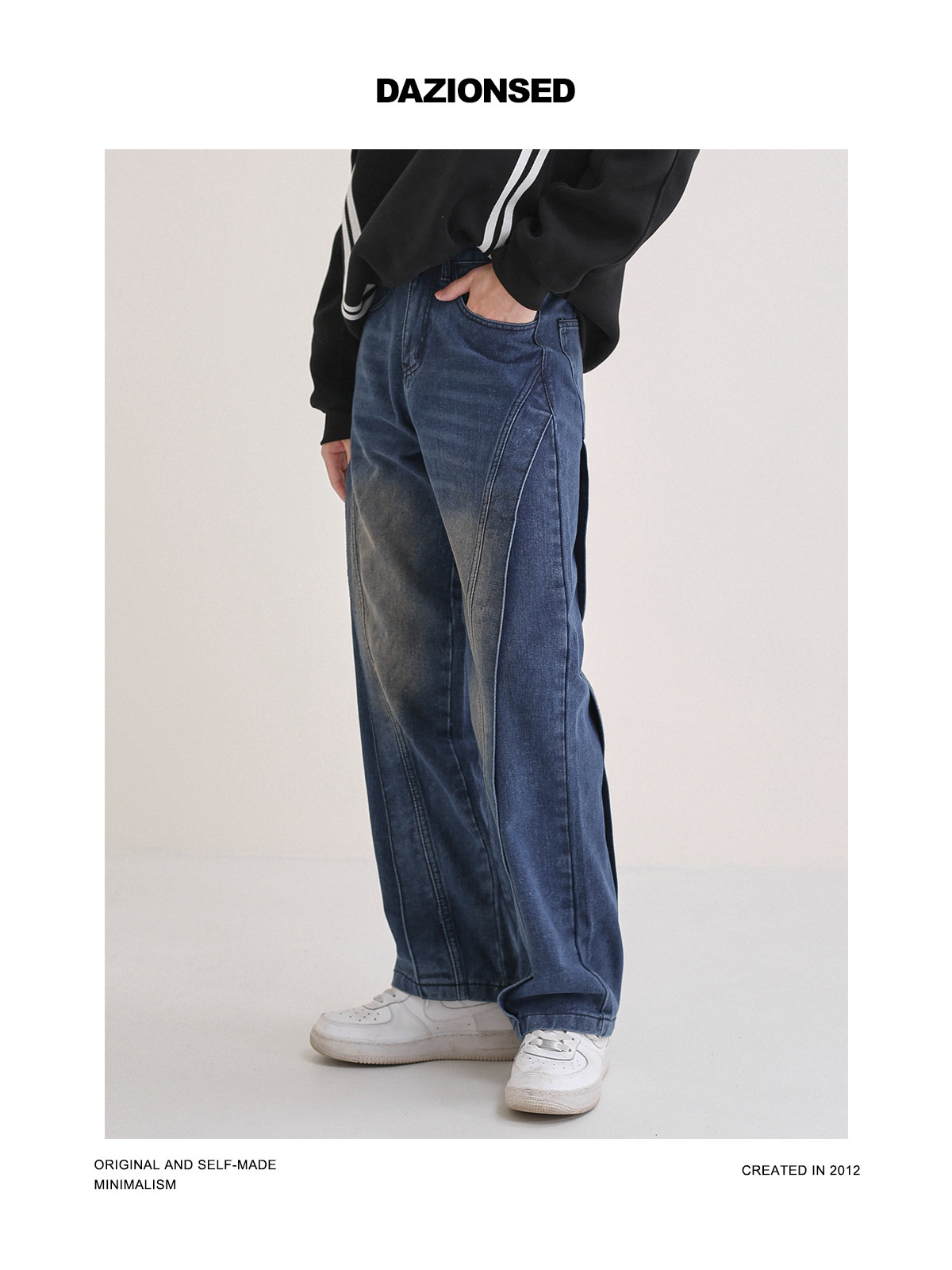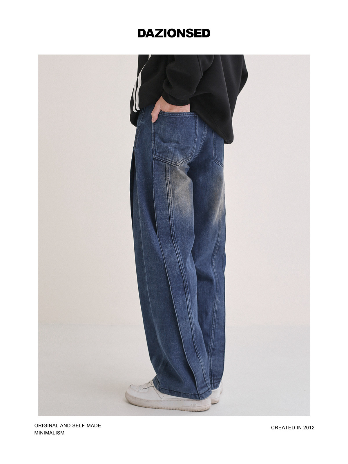Трехмерные дизайнерские прямые свободные джинсы, темно-синие штаны, тренд сезона, в американском стиле