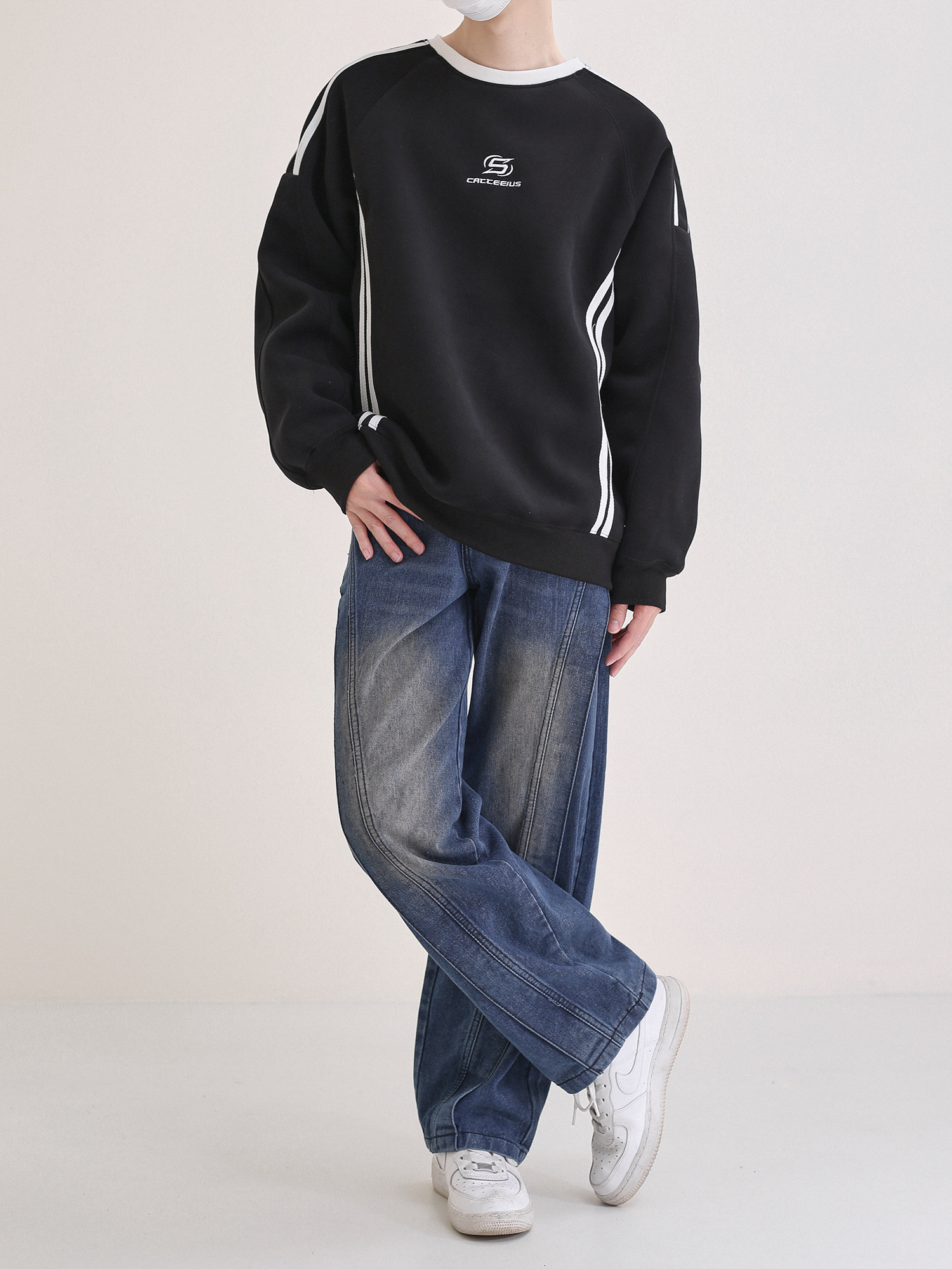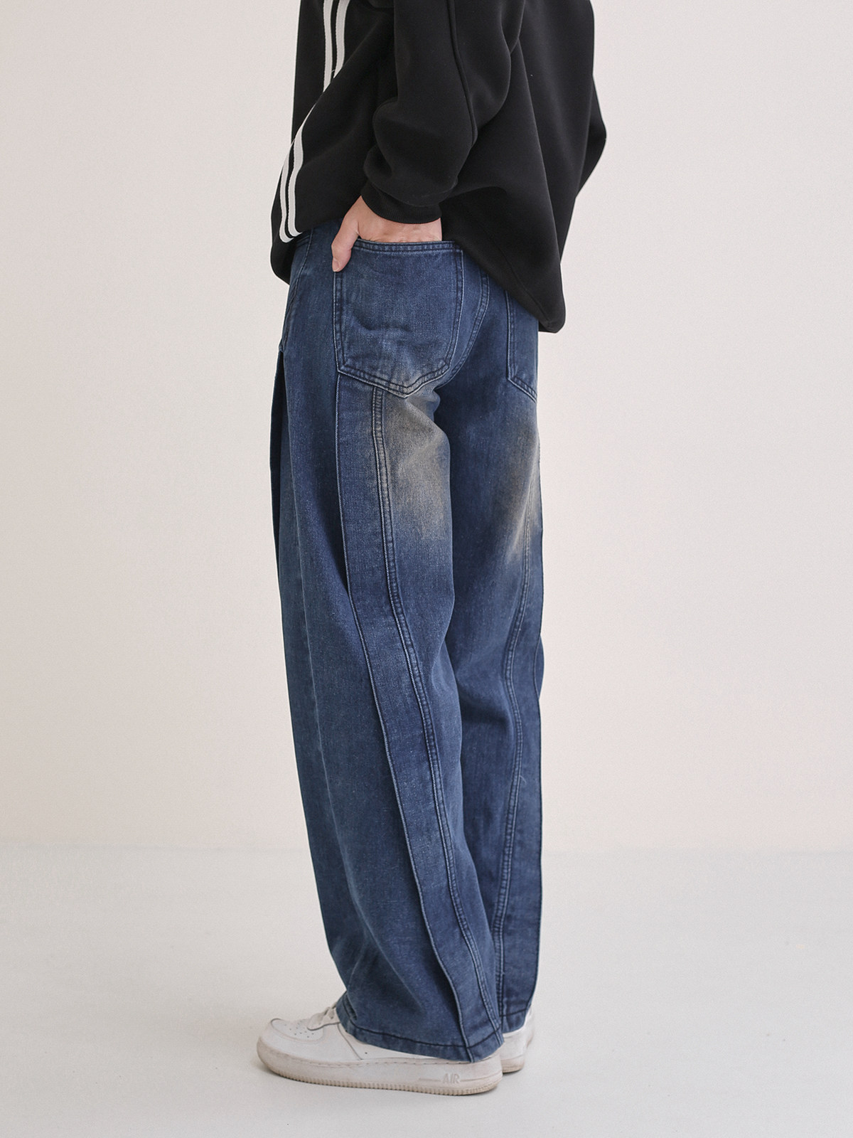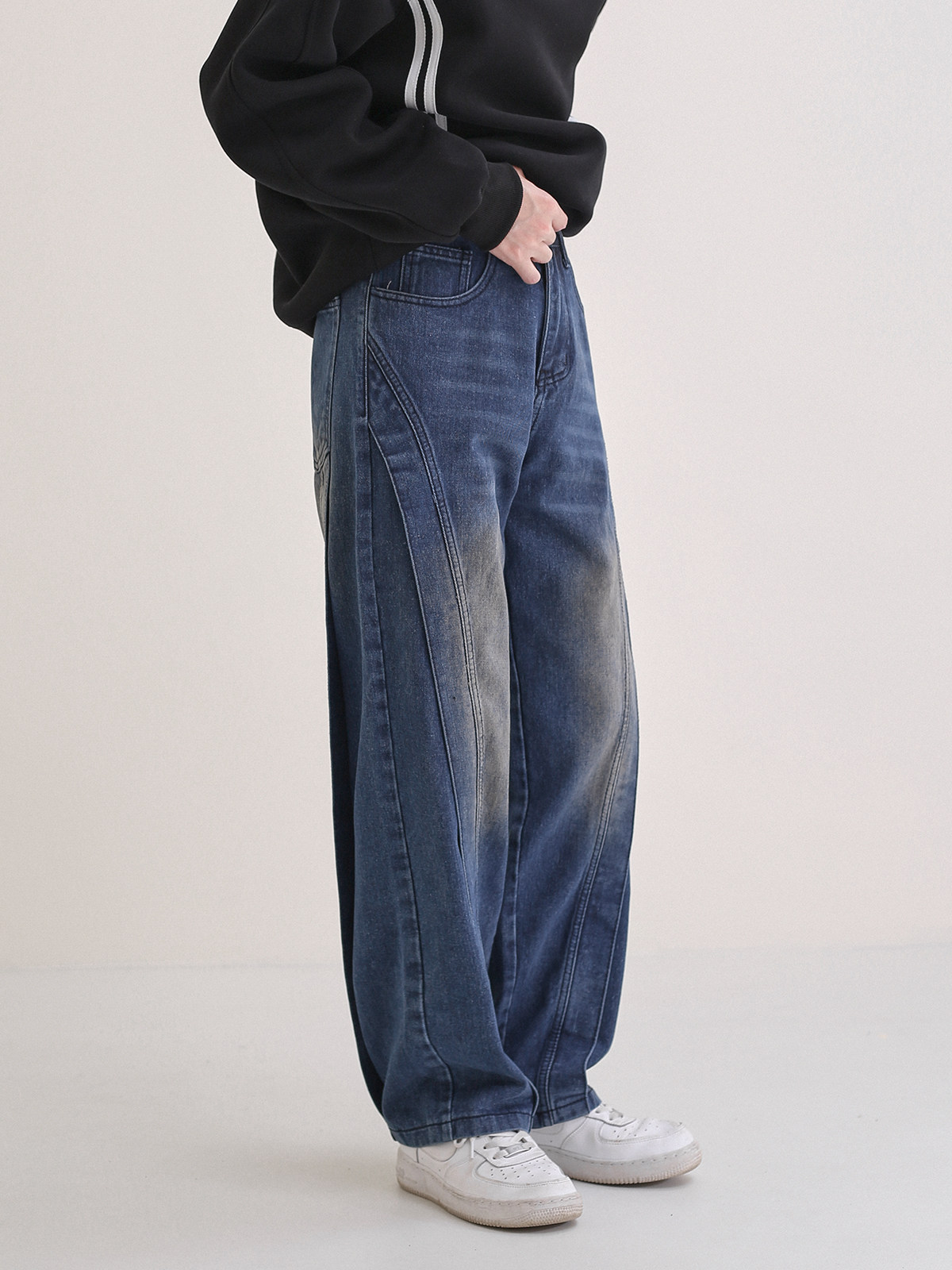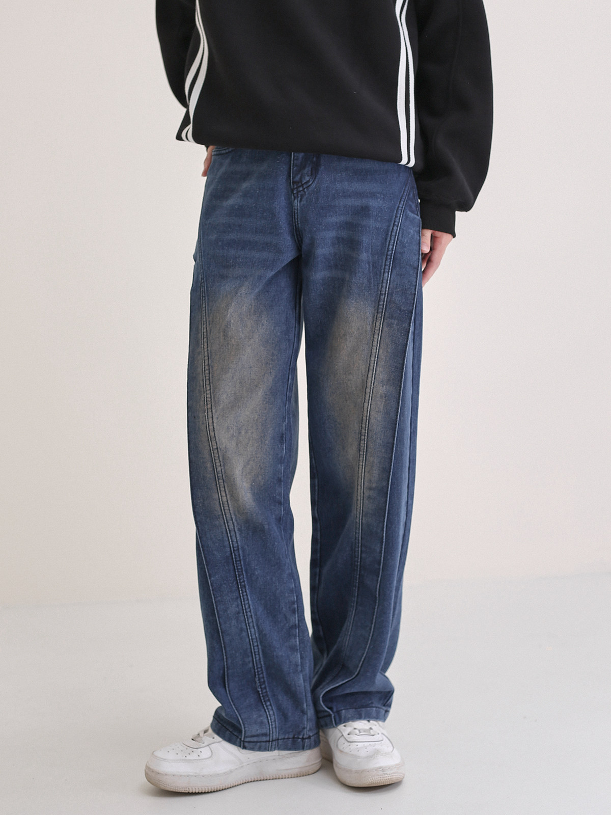 Трехмерные дизайнерские прямые свободные джинсы, темно-синие штаны, тренд сезона, в американском стиле