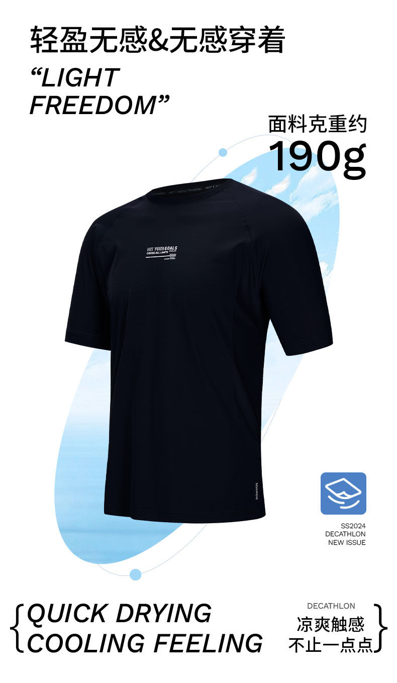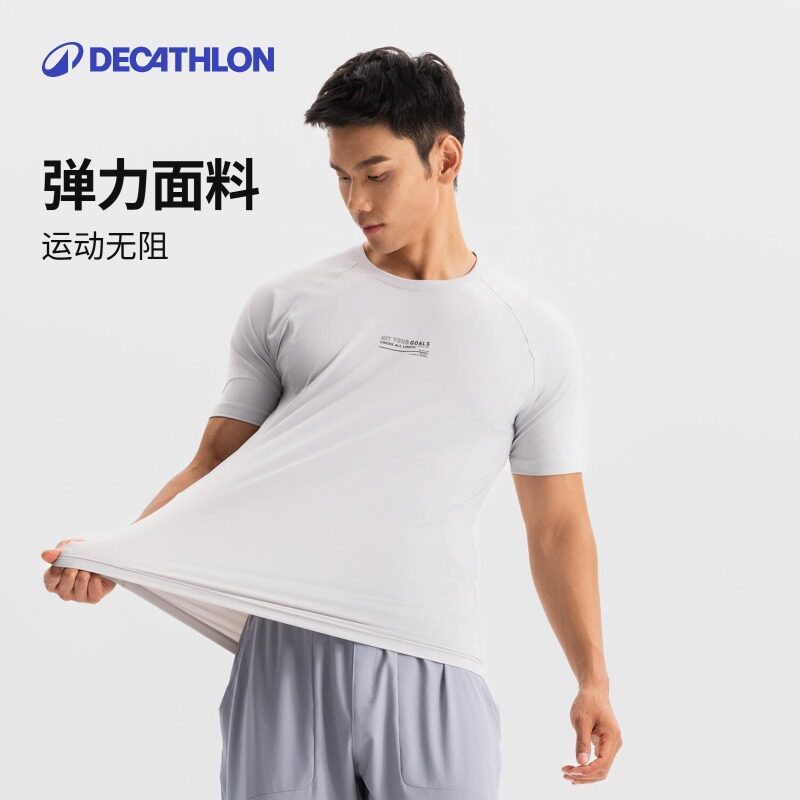 Decathlon 149 крутая мужская футболка из ледяного шелка для бега, фитнеса, быстросохнущая, дышащая, с короткими рукавами, быстросохнущая сухая одежда 8861653SAX2