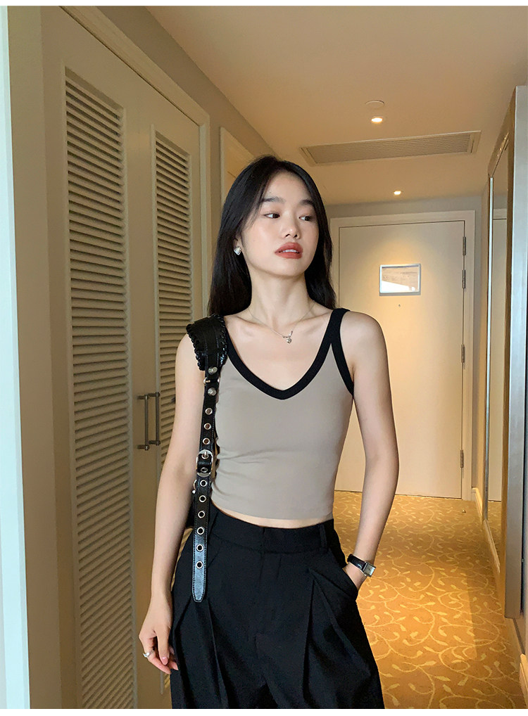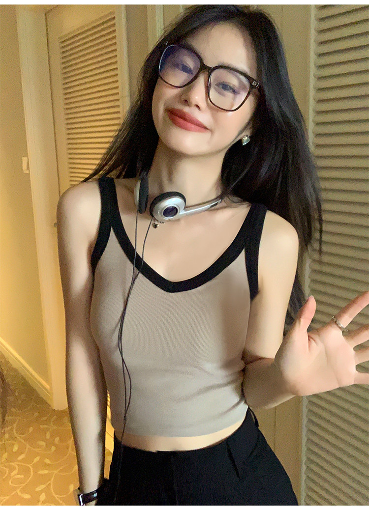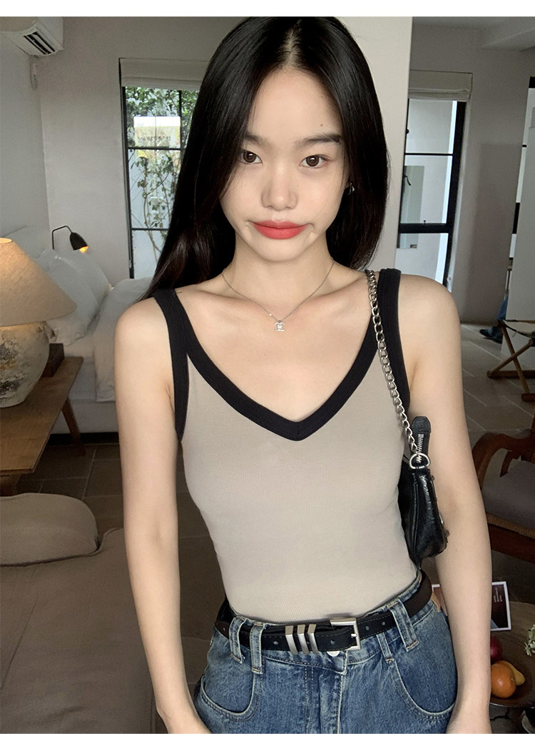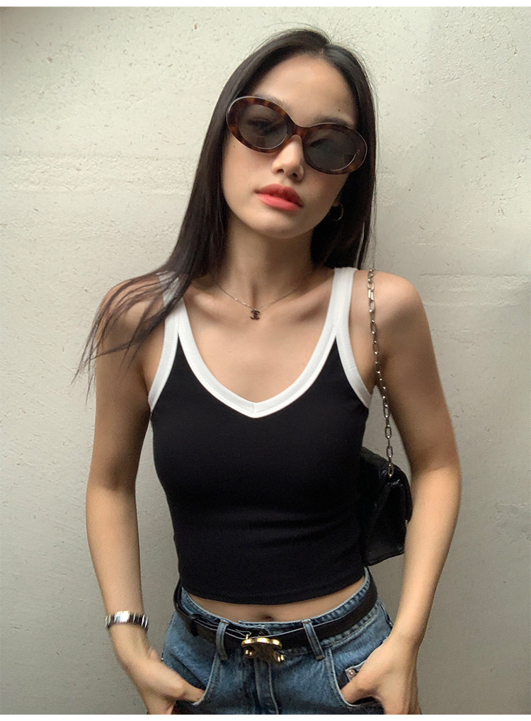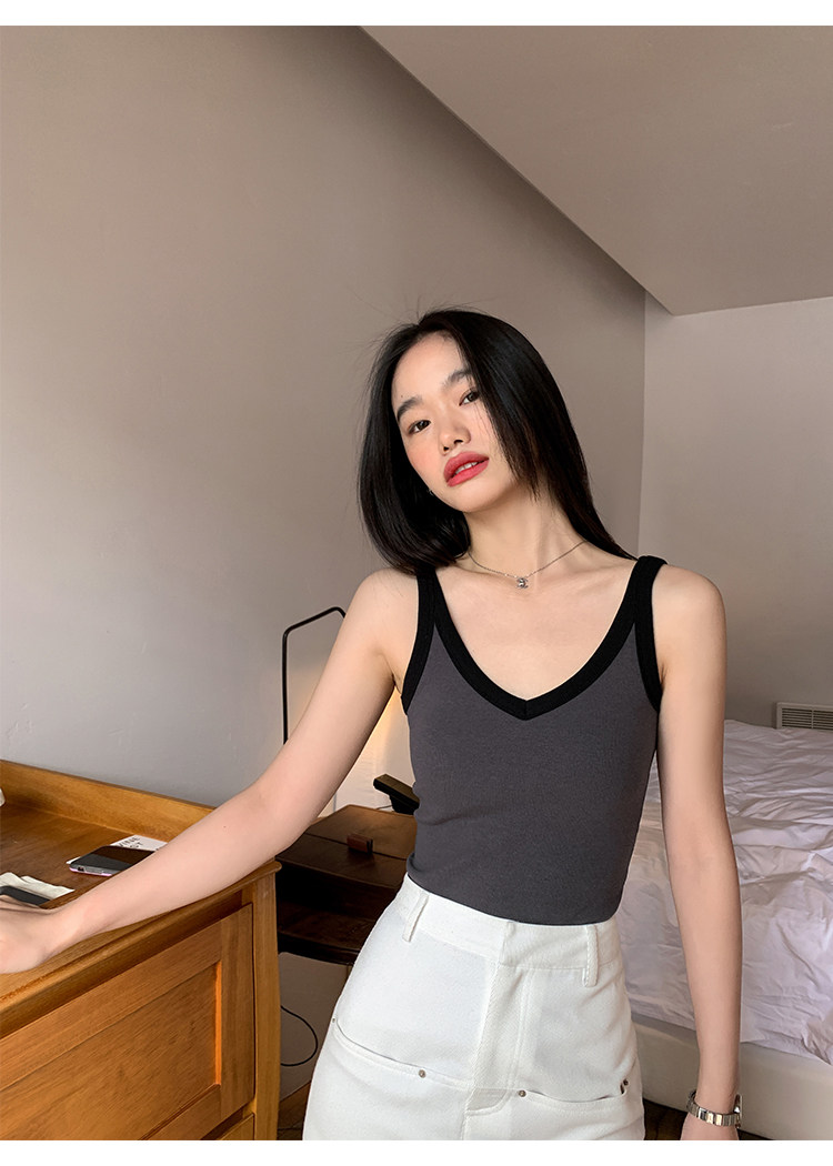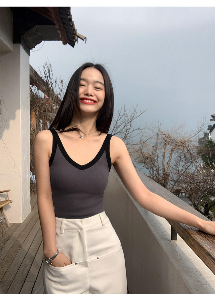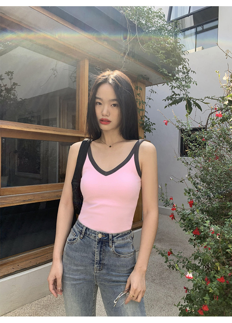 pusumede Топ с чашечками, дизайнерская трикотажная майка топ без рукавов, V-образный вырез, тренд сезона, облегающий крой