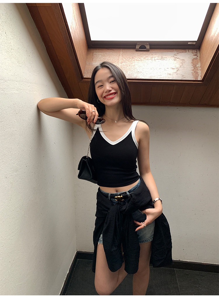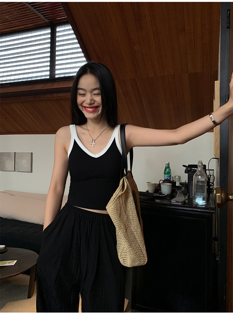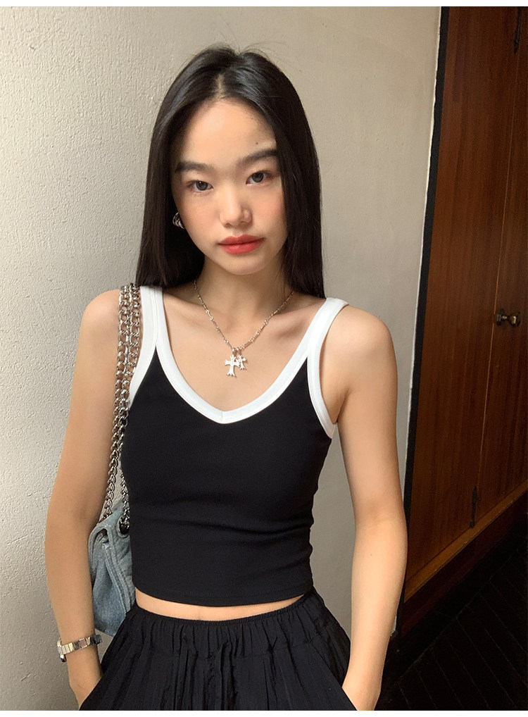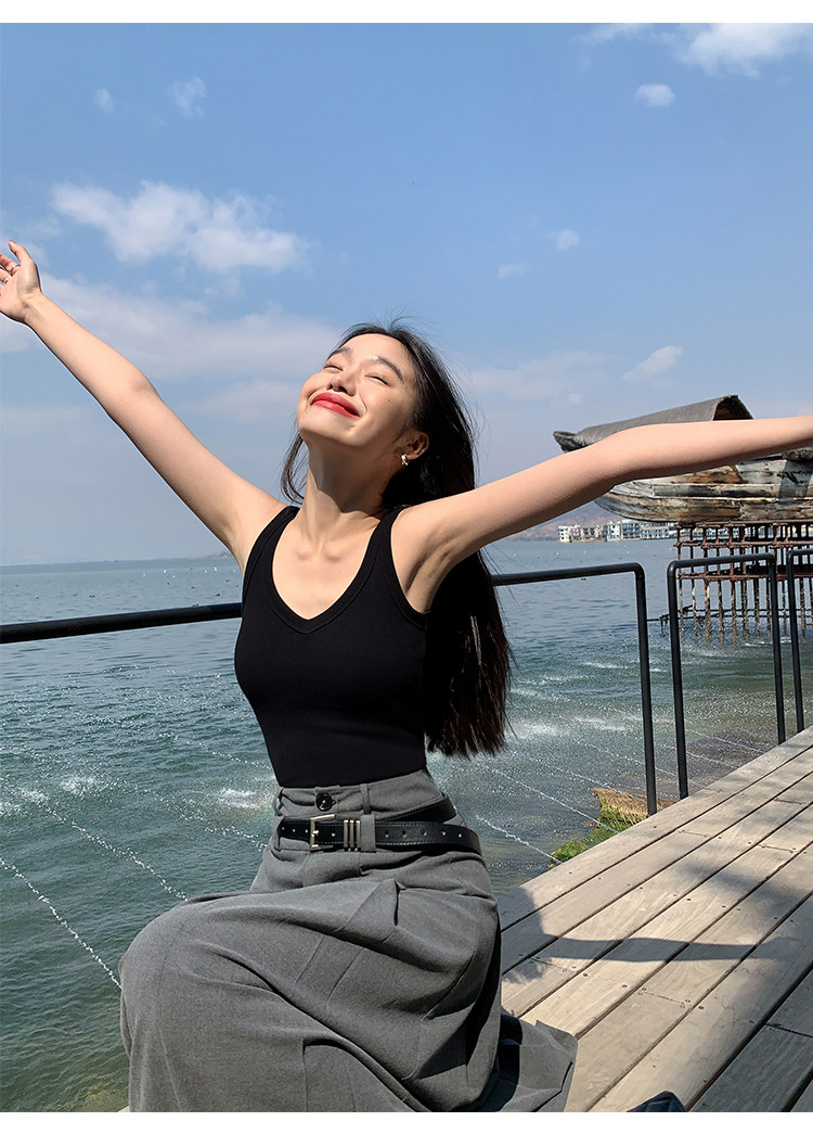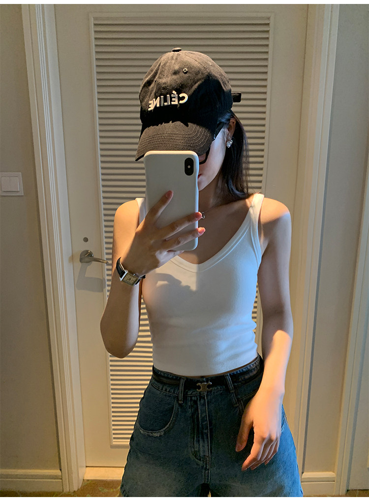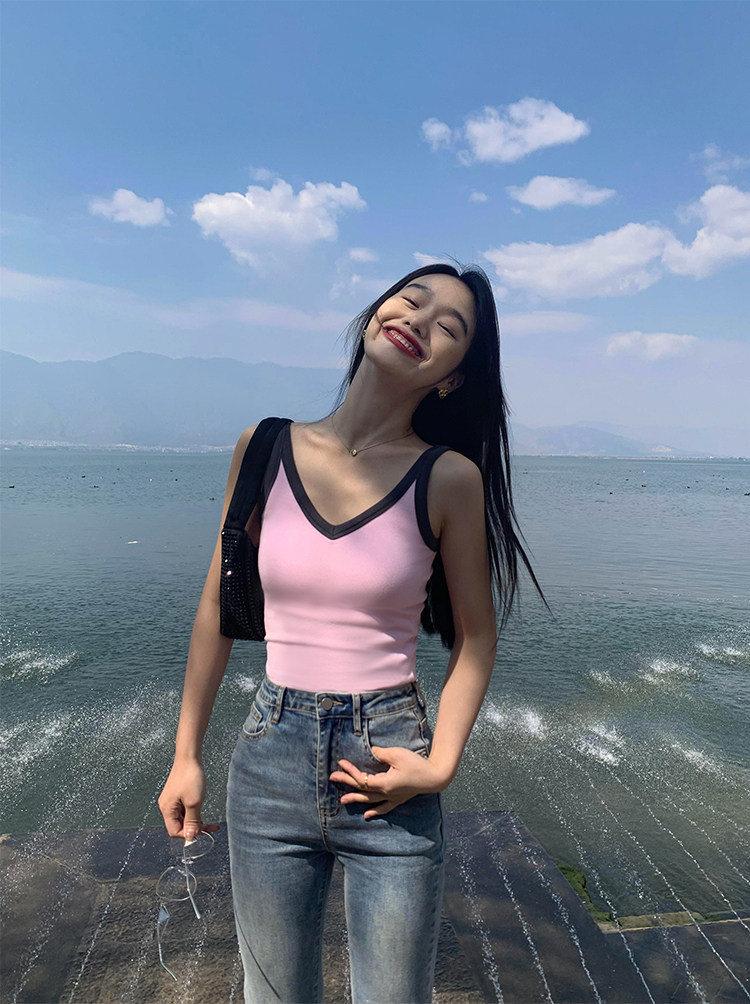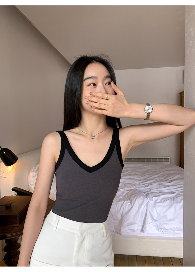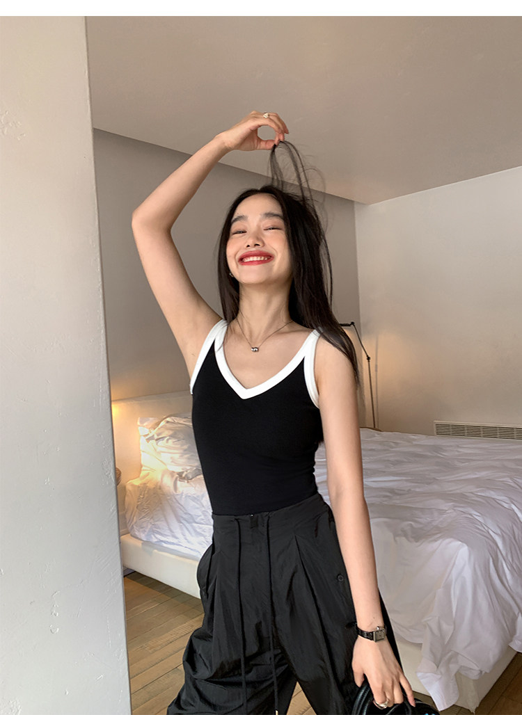 pusumede Топ с чашечками, дизайнерская трикотажная майка топ без рукавов, V-образный вырез, тренд сезона, облегающий крой