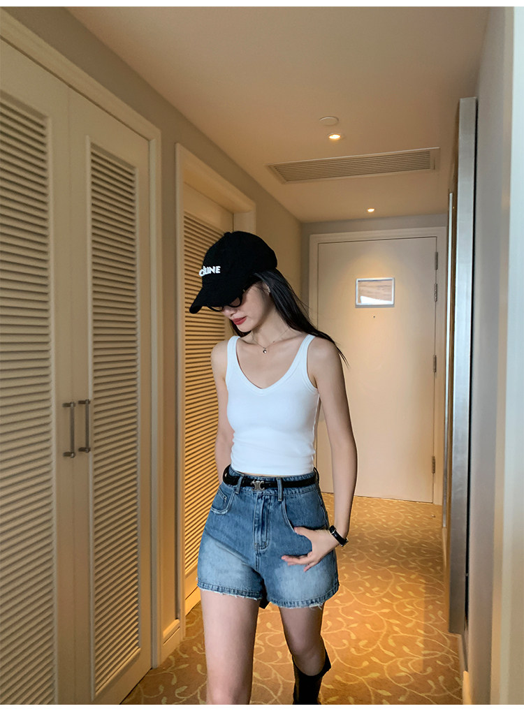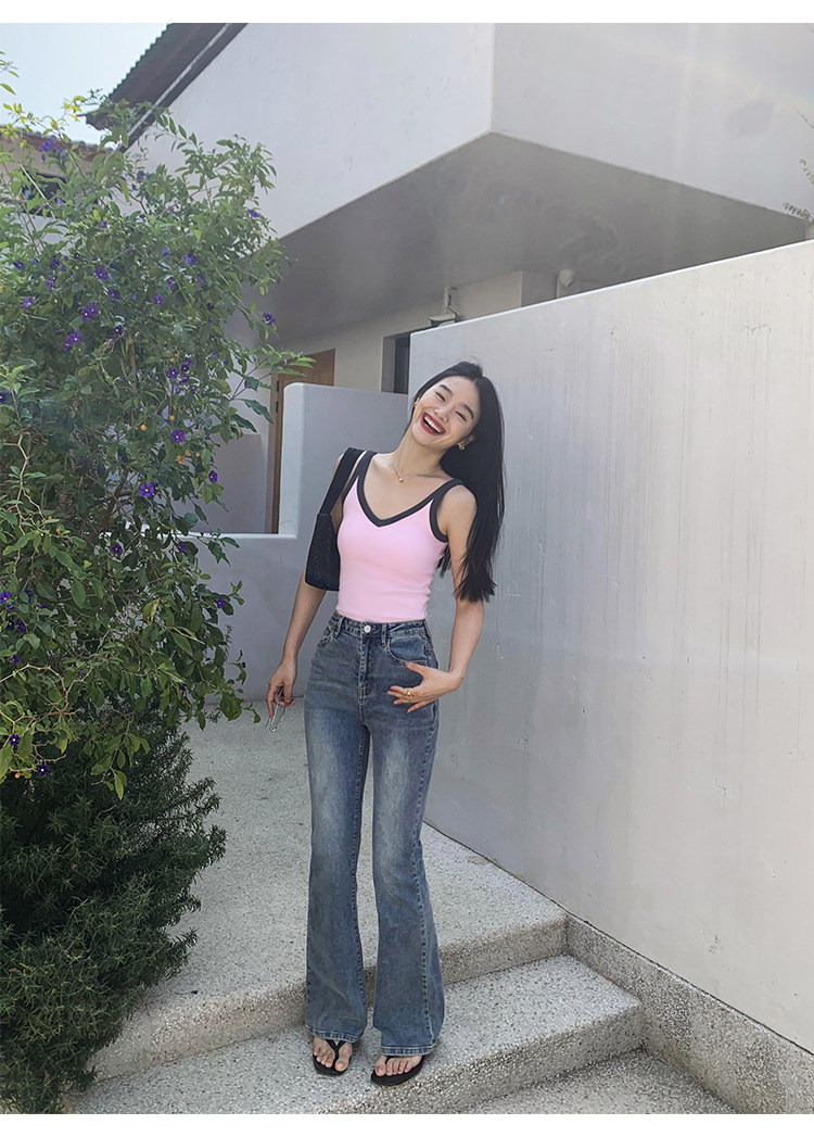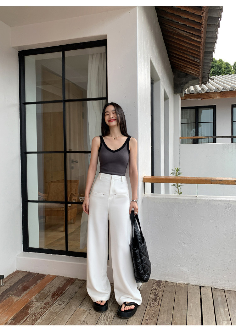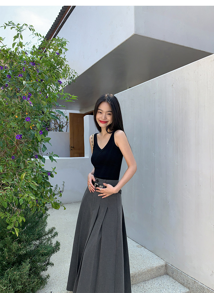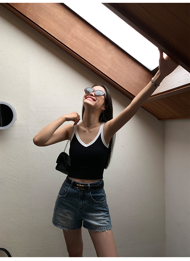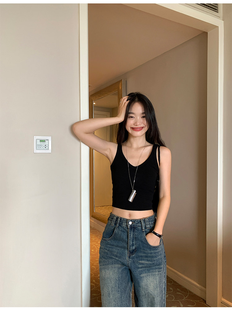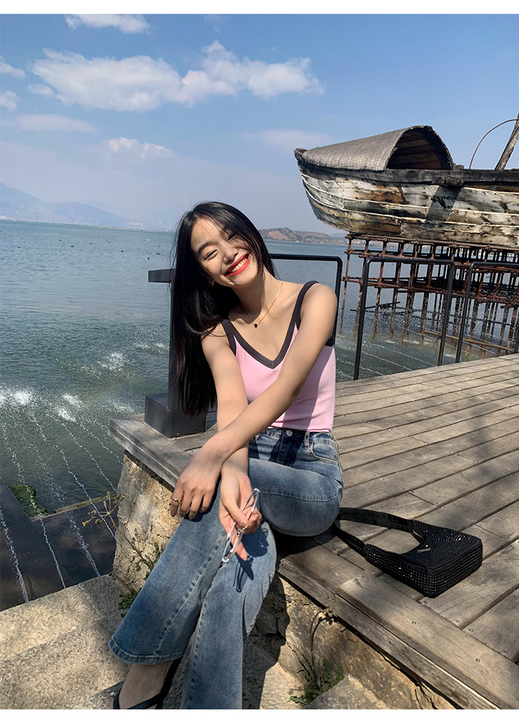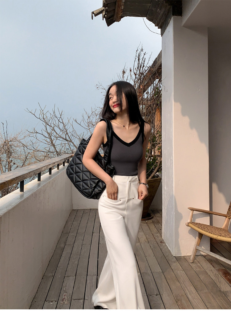 pusumede Топ с чашечками, дизайнерская трикотажная майка топ без рукавов, V-образный вырез, тренд сезона, облегающий крой