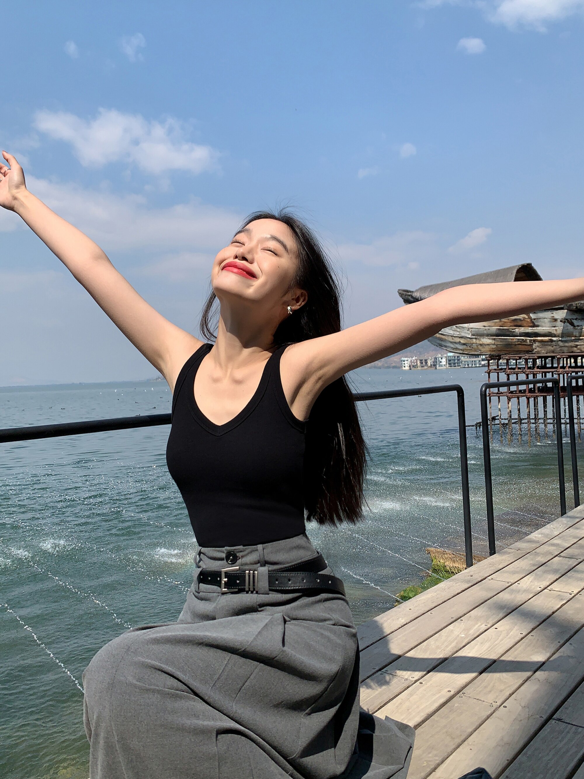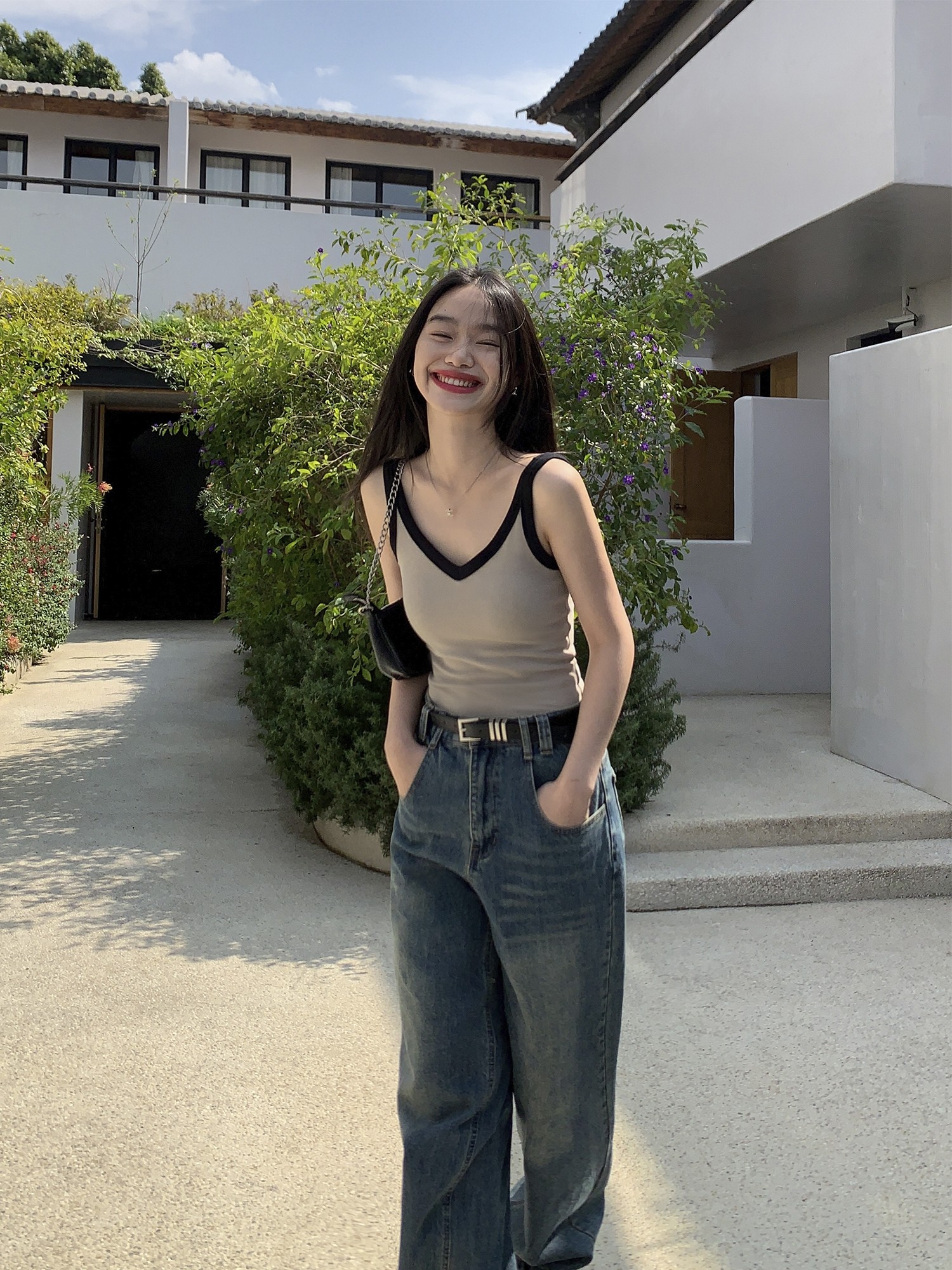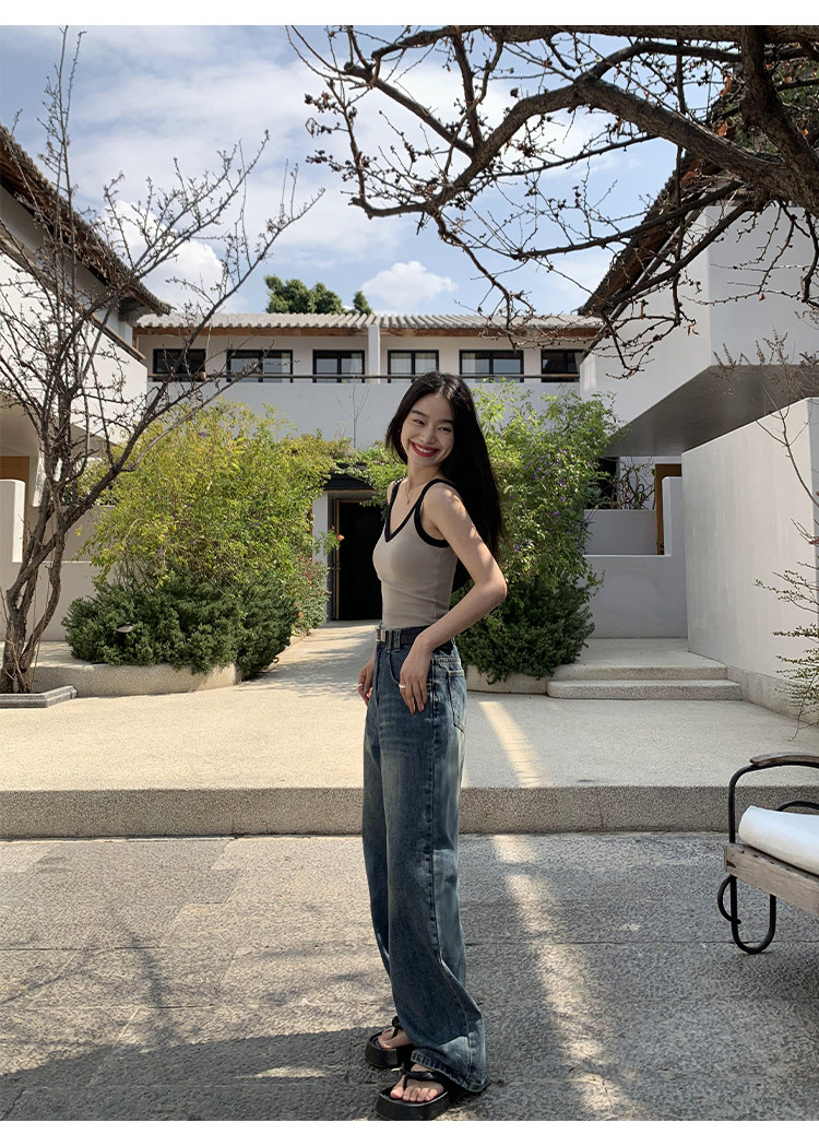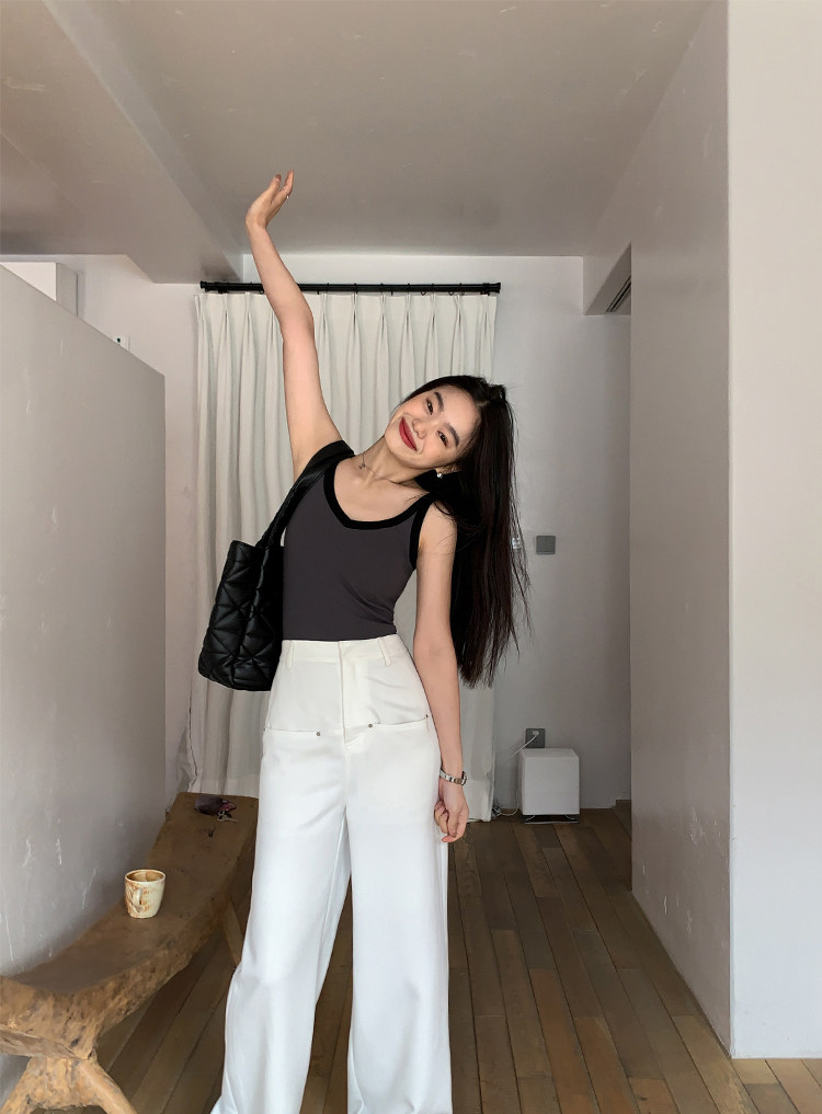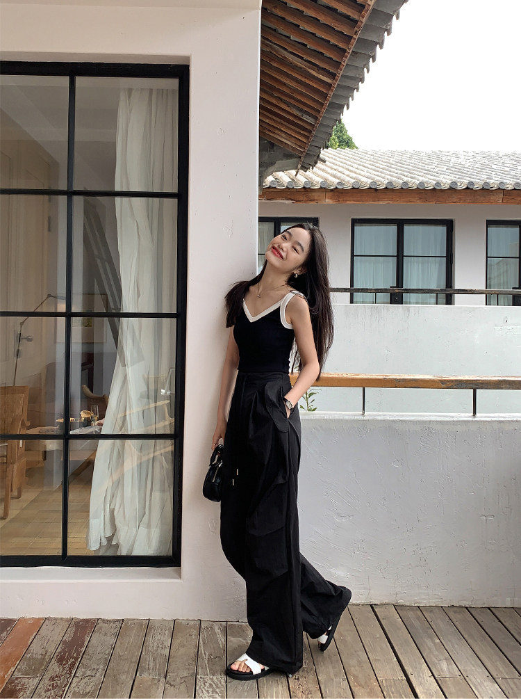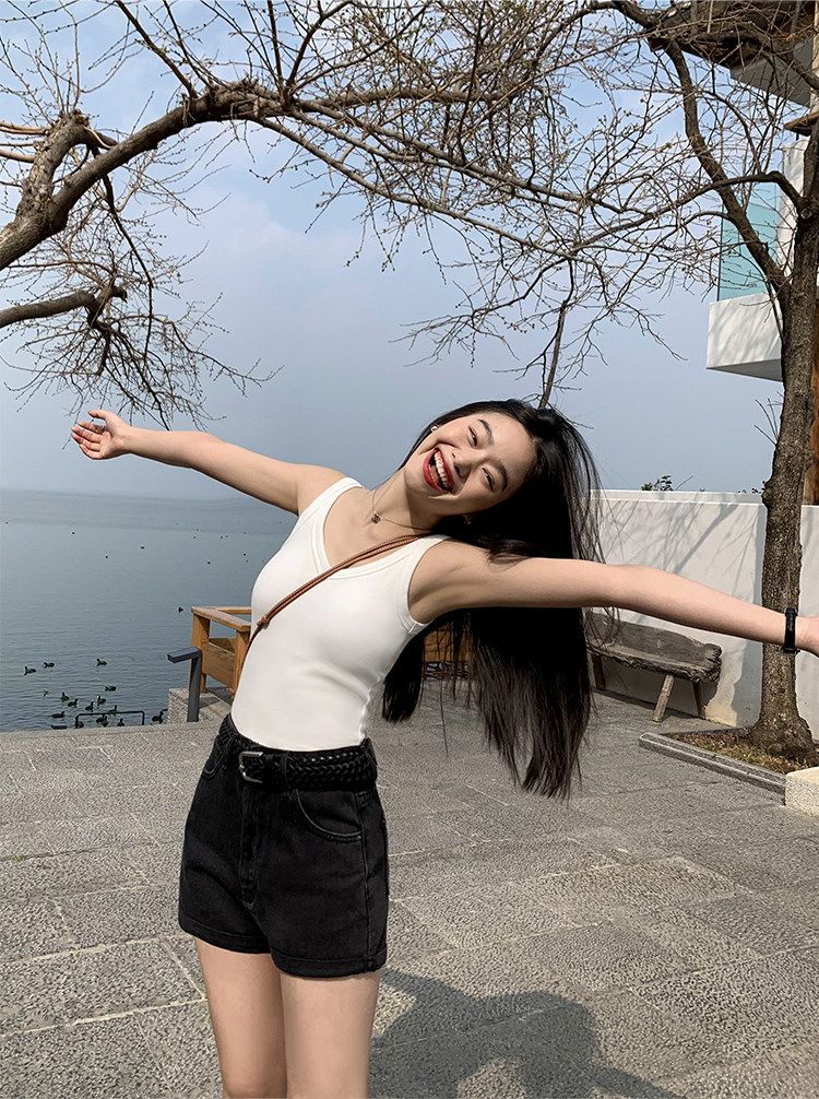 pusumede Топ с чашечками, дизайнерская трикотажная майка топ без рукавов, V-образный вырез, тренд сезона, облегающий крой