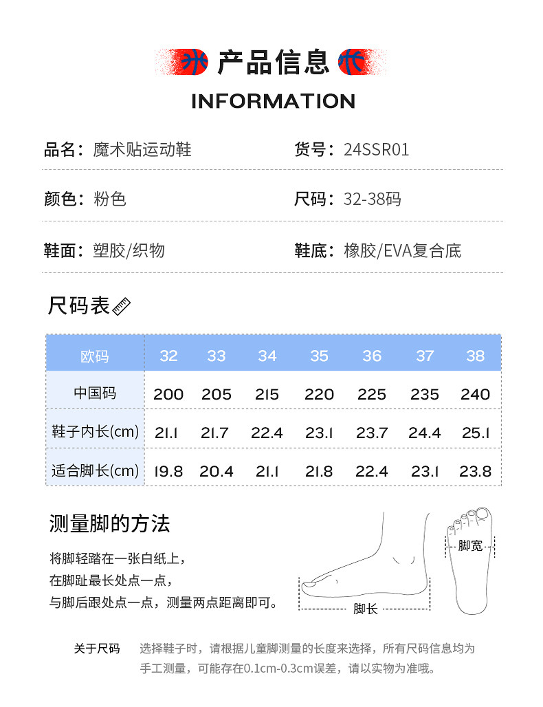 | Размер обуви: | 32 (длина футов 19,8/внутри 21,1), 33 (20,4/внутри 21,7), 34 (21,1/внутри 22,4), 35 (21,8/внутри 23.1), 36 (22,4/внутри 23,7), 37 (23,1/внутри 24.4), 38 (23,8/внутри 25.1) |