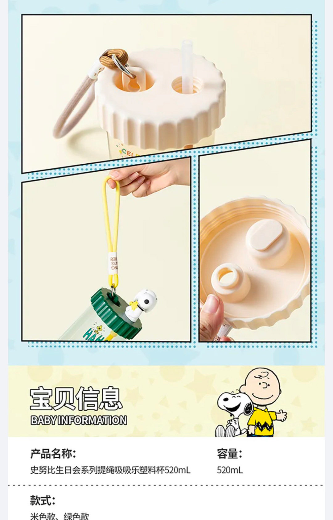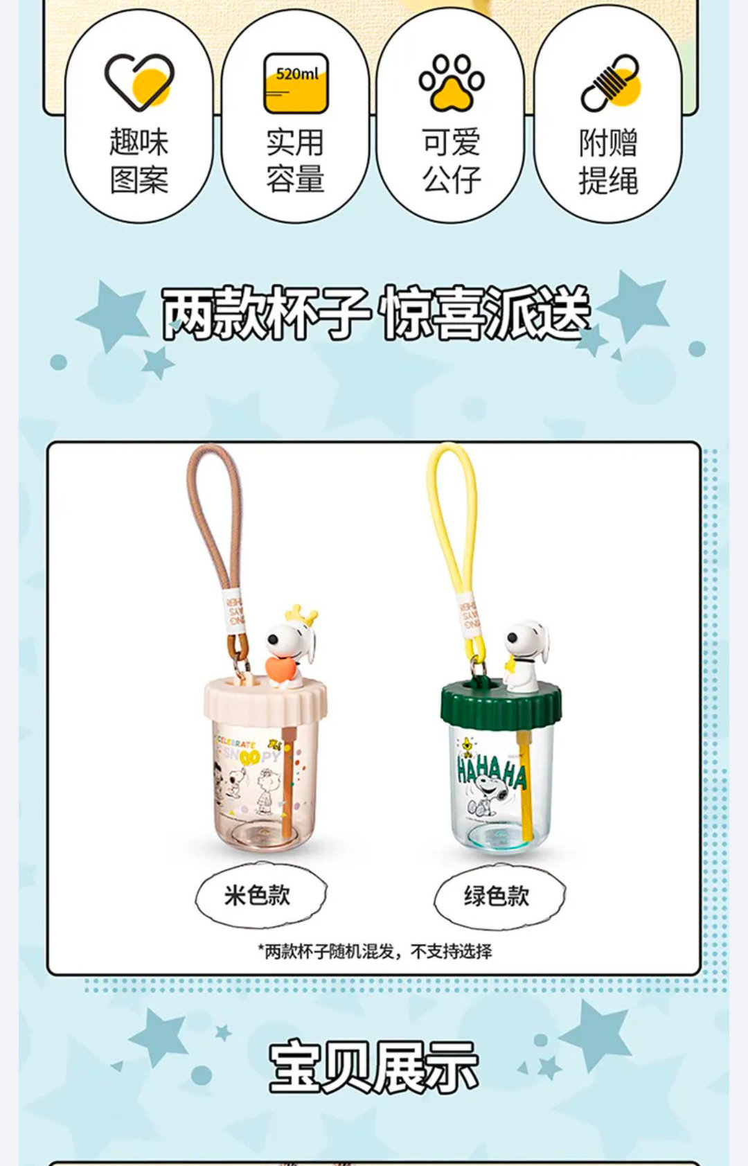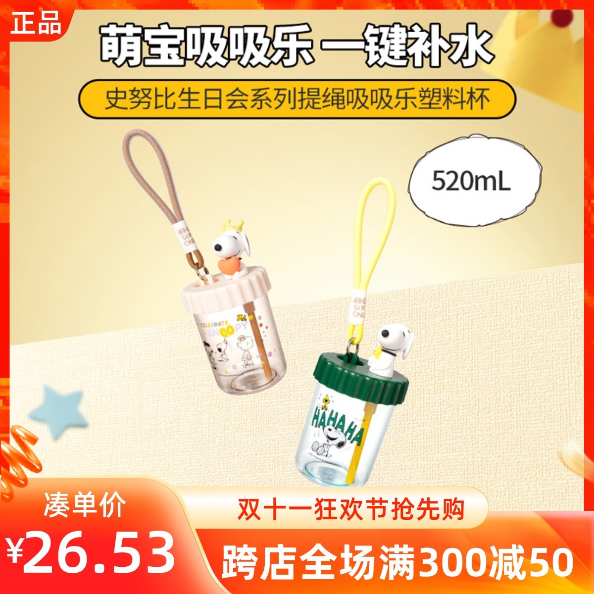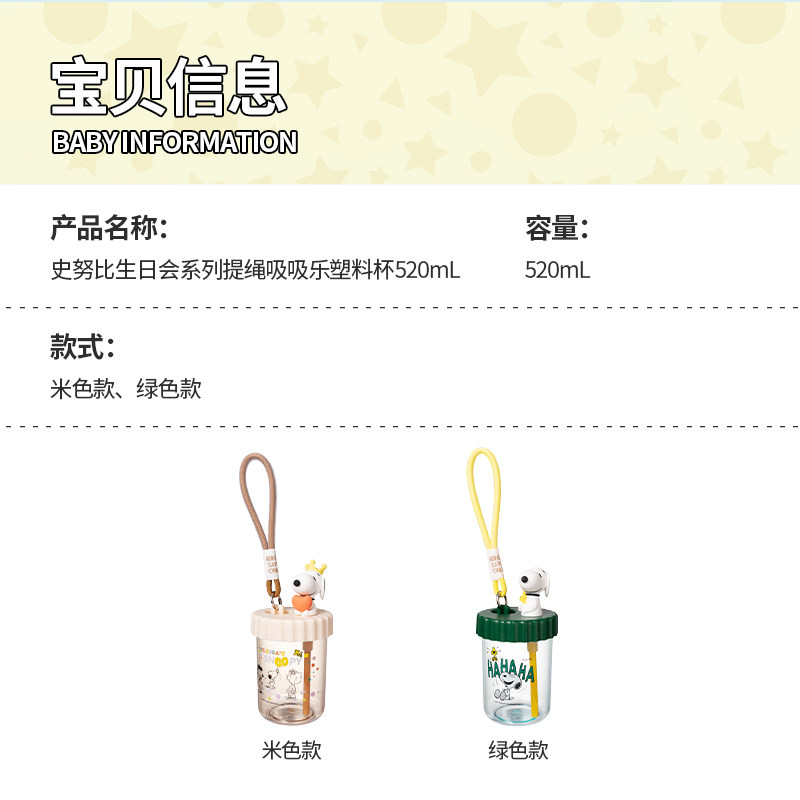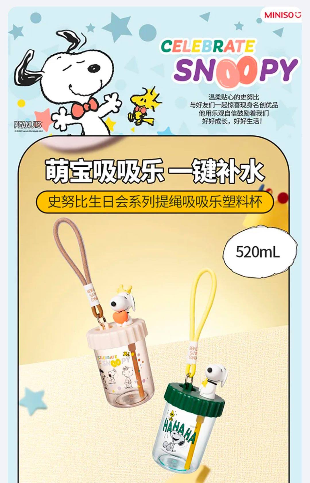 Miniso Snoopy Series серии по случаю дня рождения веревка всасывающая всасывание Le Пластиковая чашка удобная чашка для путешествий