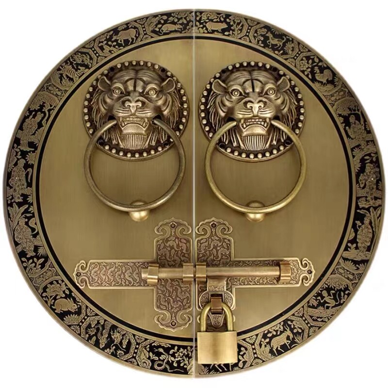 Мингцзян, антикварная китайская дверная эмболия с двойной дверной медной ручкой на открытом воздухе в саду ретро Деревянный Дверный Лок