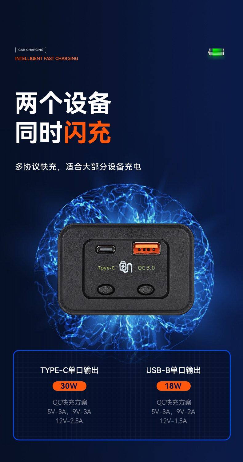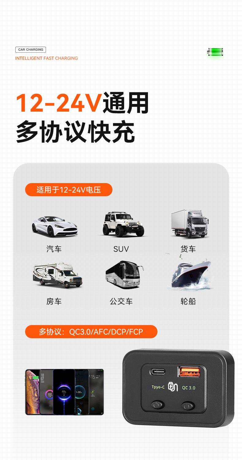 Автомобильная шина модификация USB Mobile Phone Зарядное устройство 12-24V Добавляет автомобиль USB+Type-C Быстрая зарядка