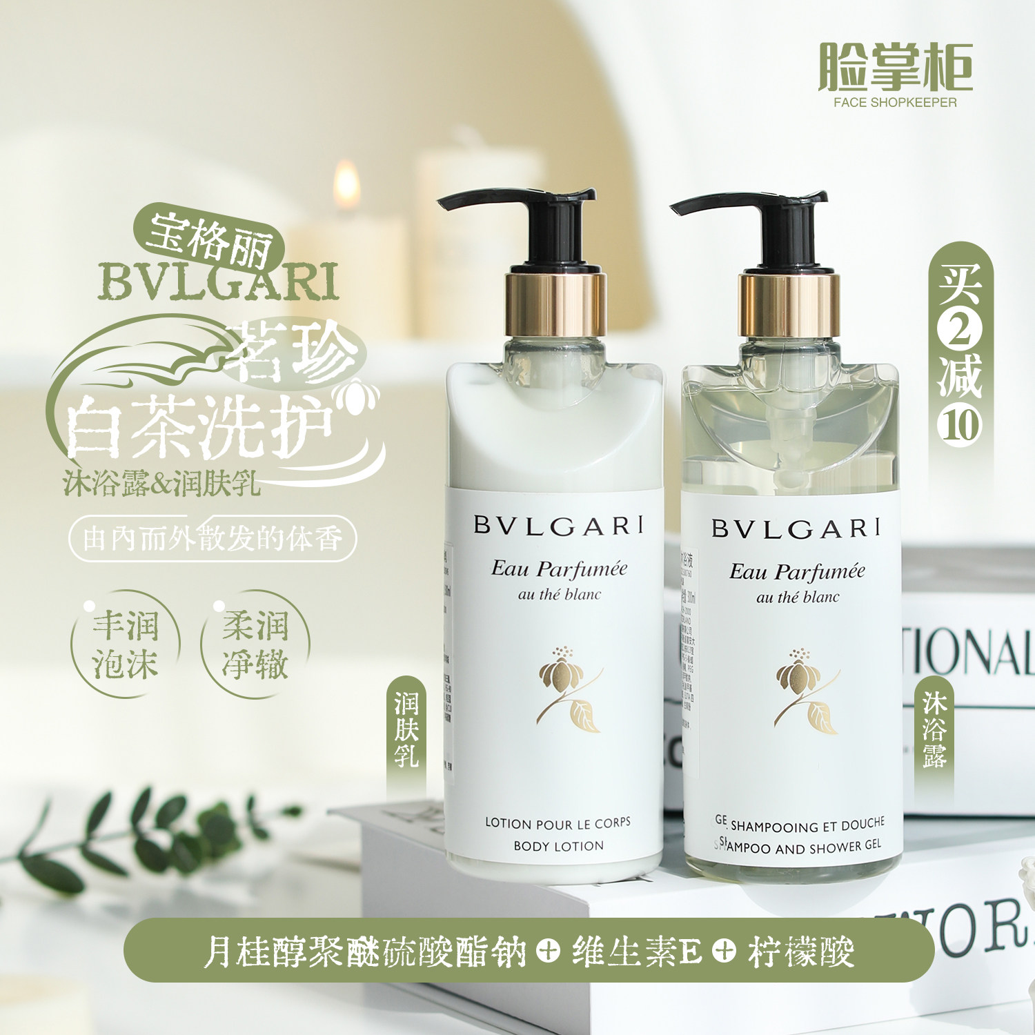 Bvlgari, белый чай, гель для душа, молочко для тела со стойким ароматом, 300 мл, долговременный эффект