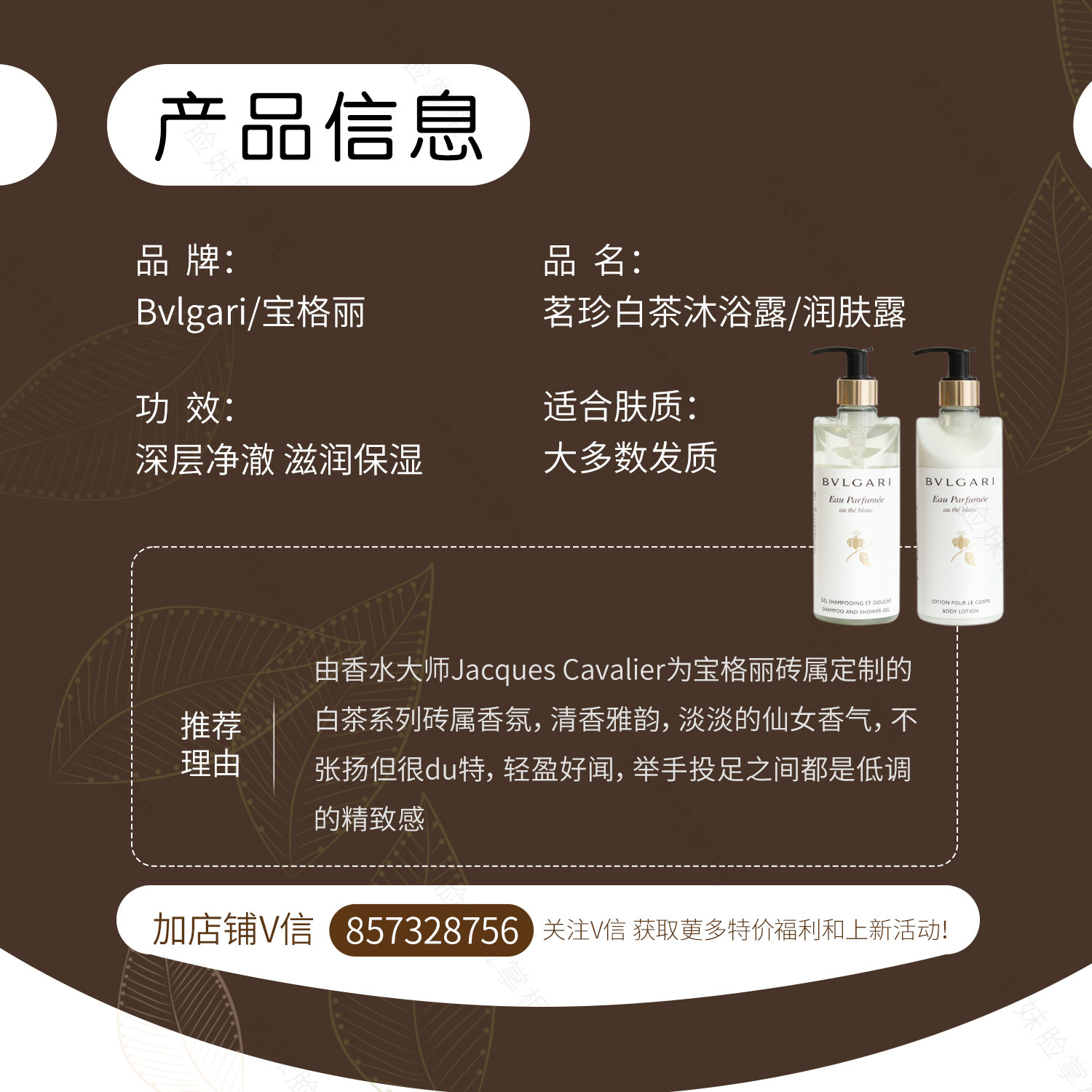 Гель душа белого чая и увлажняющая роса в отеле Bulgari