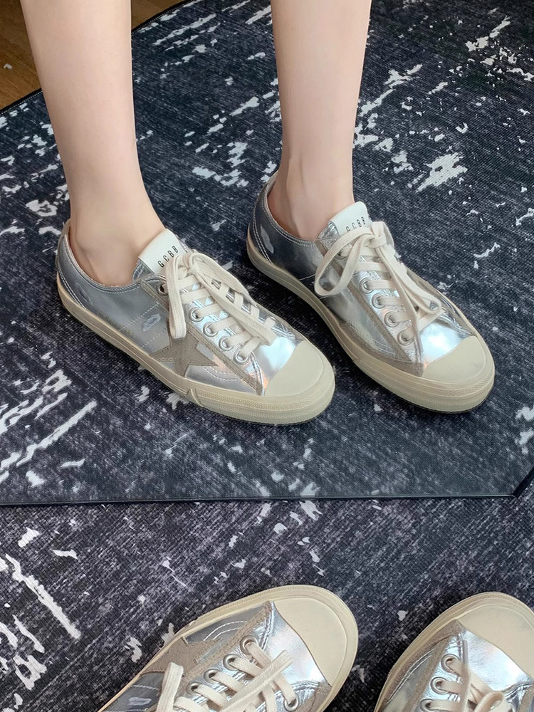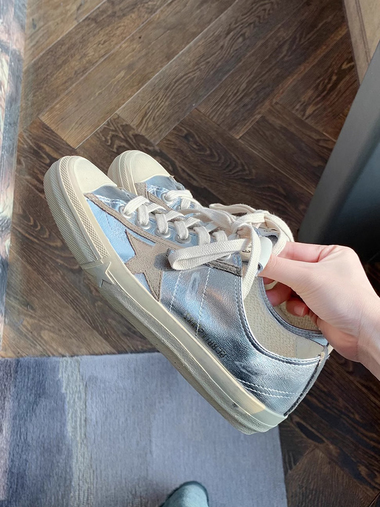 Гонконг 2025, грязные туфли из натуральной кожи со шнурком и серебряной звездой, женские грязные туфли, спортивная и повседневная обувь, белые туфли, кроссовки