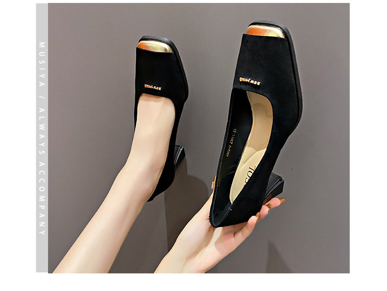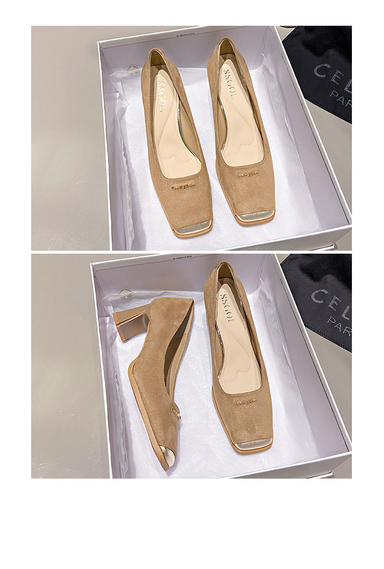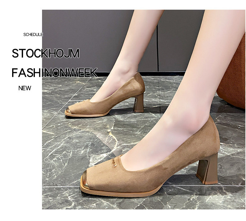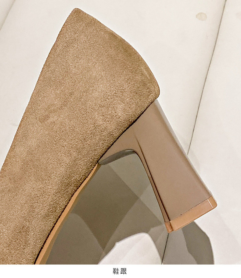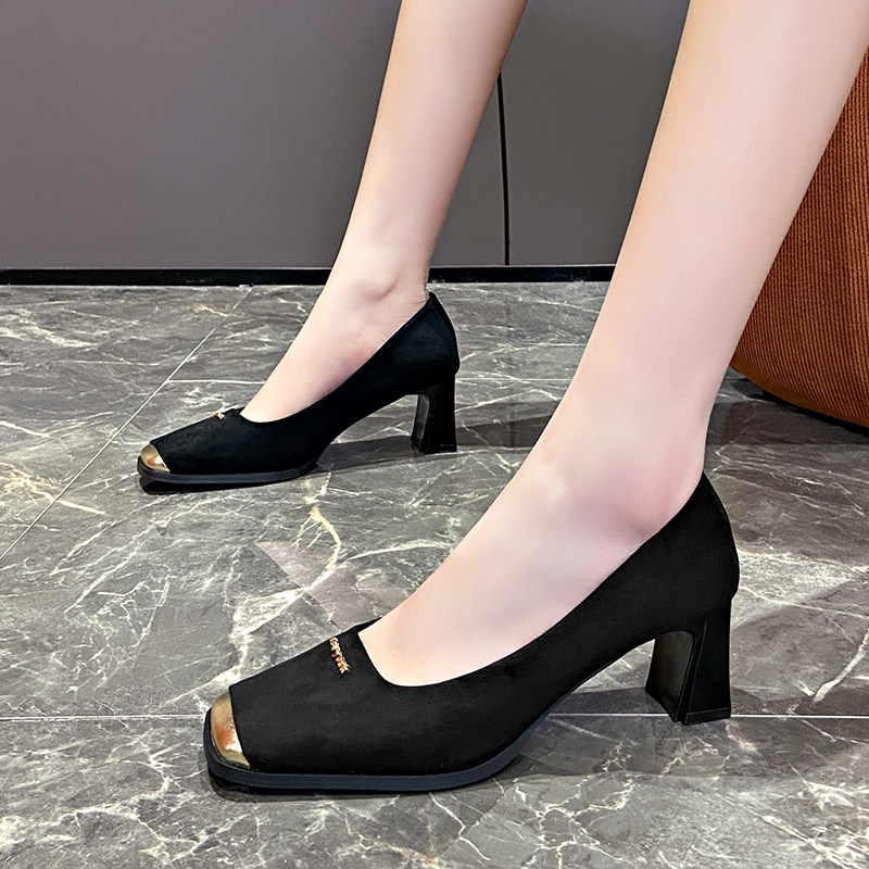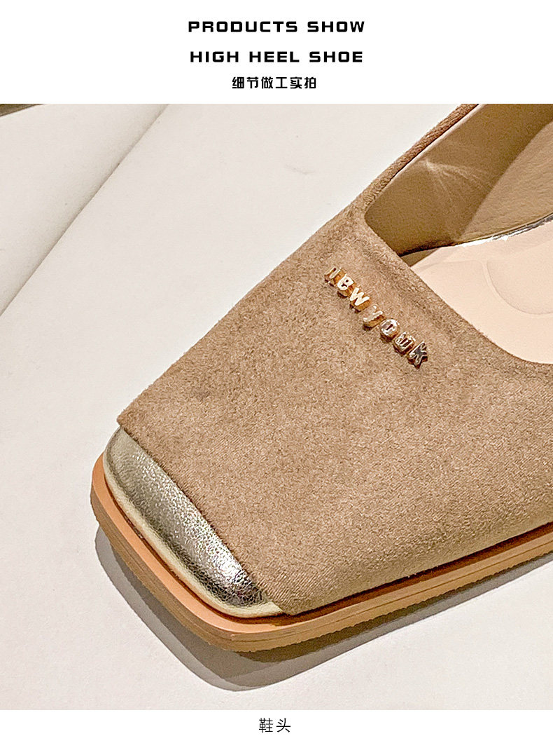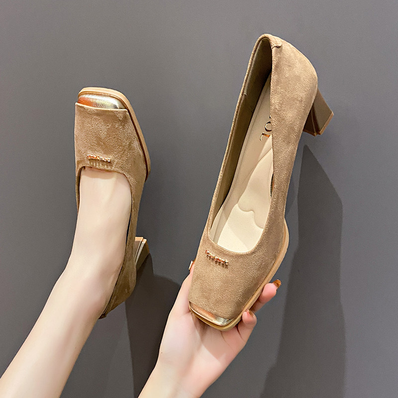 Женские туфли на высоком каблуке с прошитым квадратным носком, новинка 2024 года, весенние модные замшевые туфли во французском стиле на толстом каблуке с неглубоким горлышком и каблуком 6 см