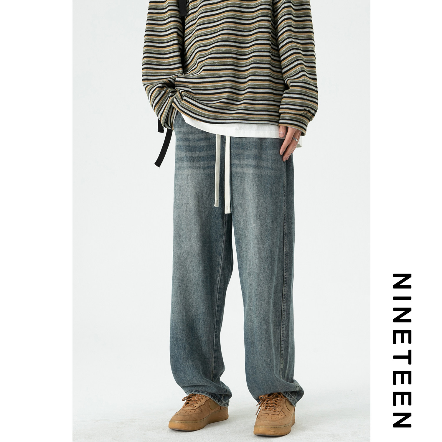 Весенние трендовые прямые свободные джинсы для отдыха, штаны, тренд сезона, на шнурках
