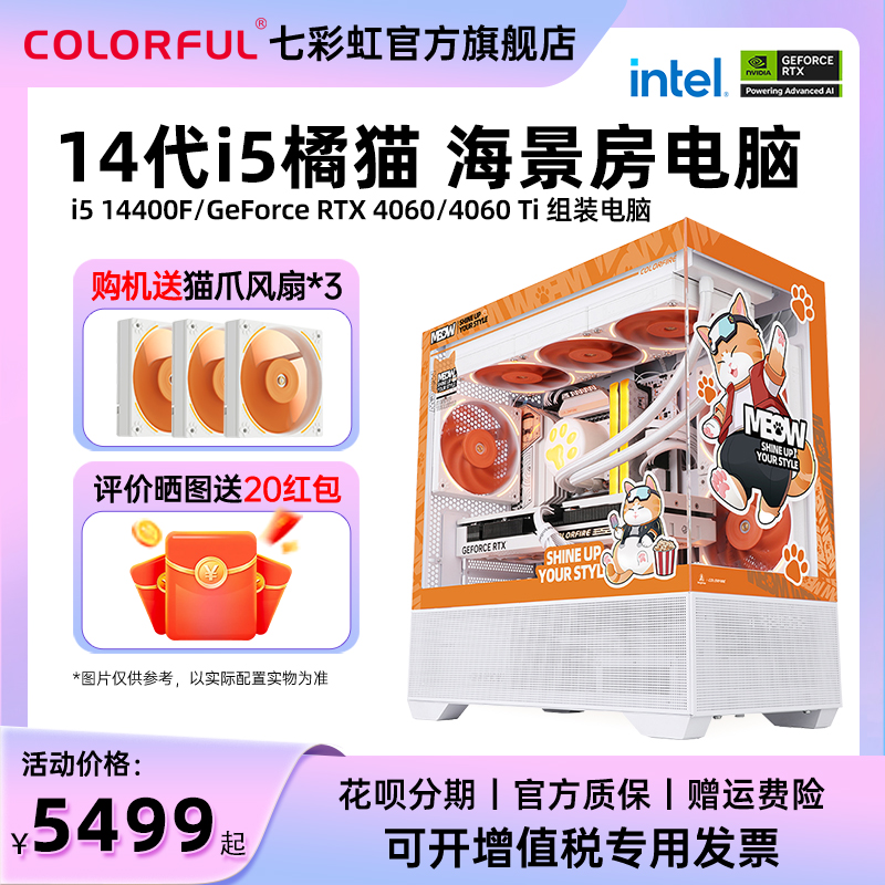 Совершенно новый Orange Cat I5 14400F/14700F RTX4060 4060TI 8G Независимая графическая карта 4070SUPER 12G Desktop Computer Designer Designer рендеринг шасси DIY сборка