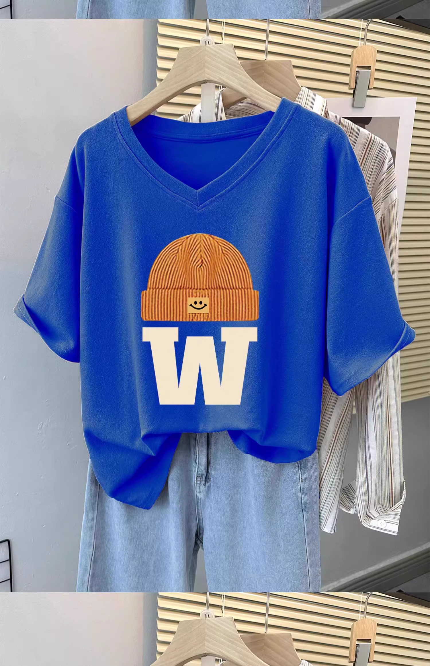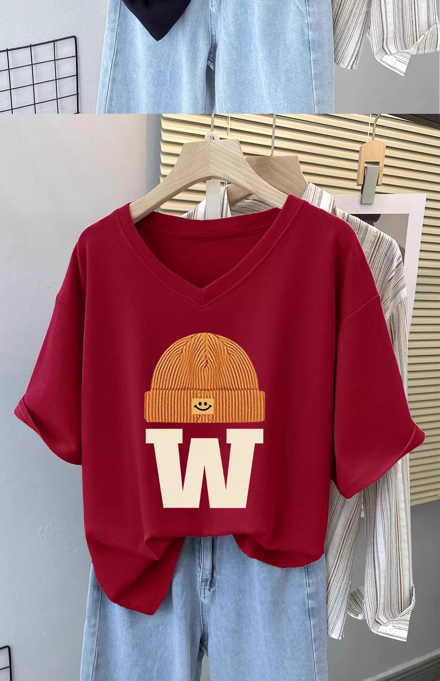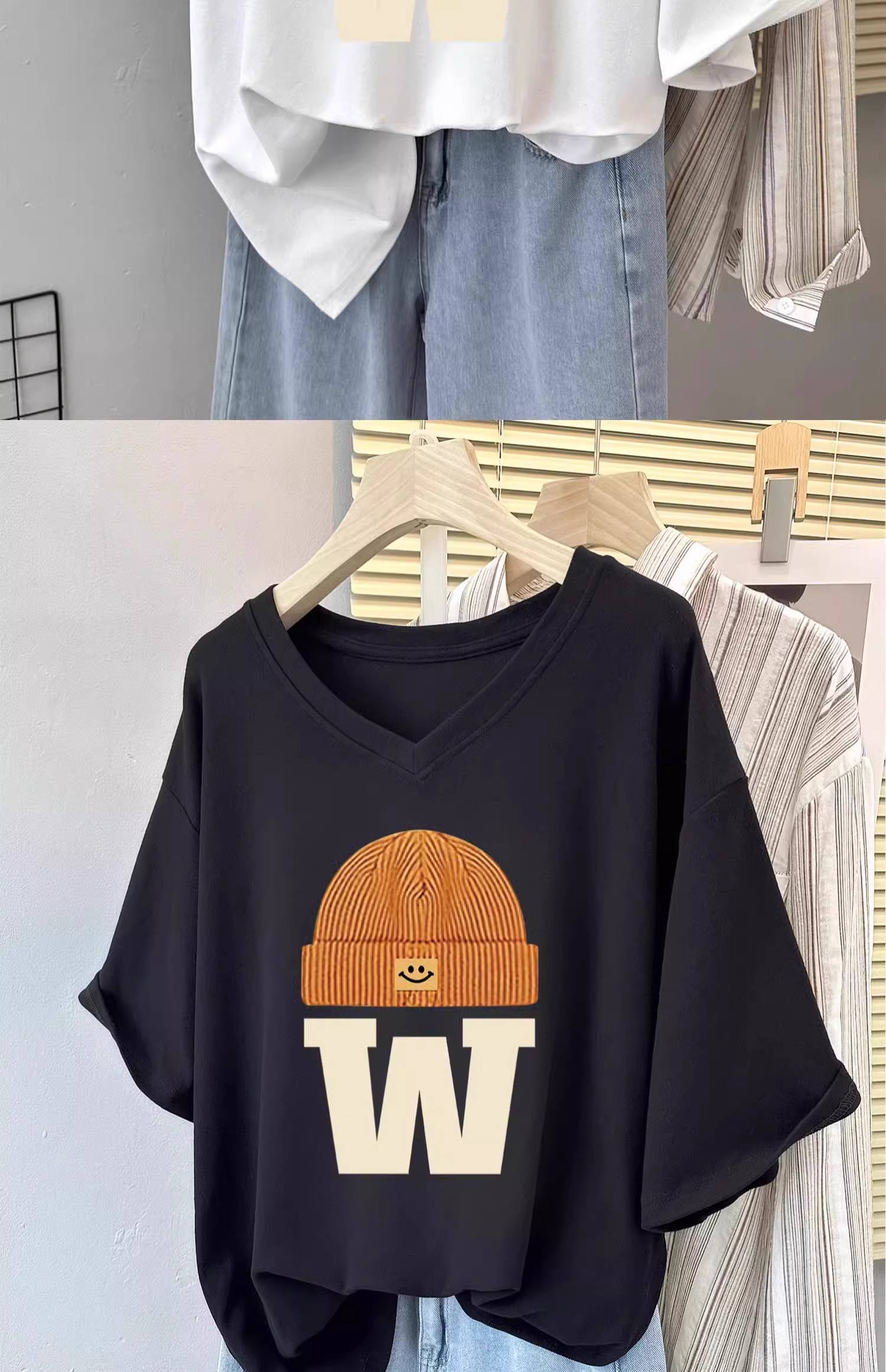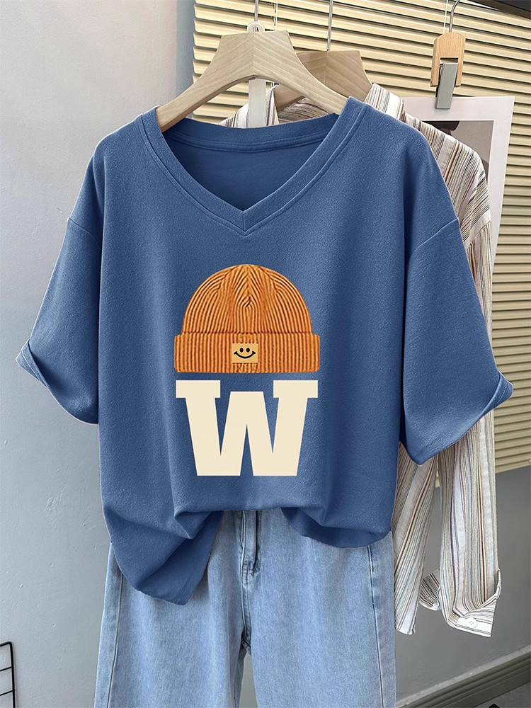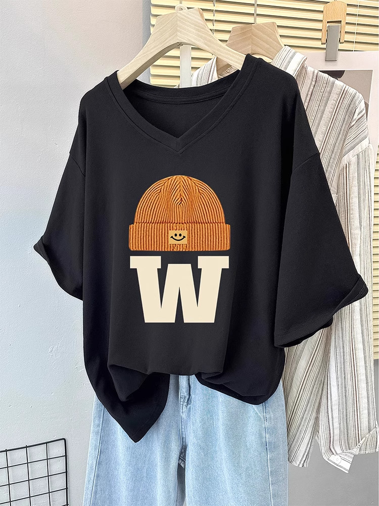 Черная футболка с коротким рукавом, V-образный вырез, в западном стиле, оверсайз, большой размер