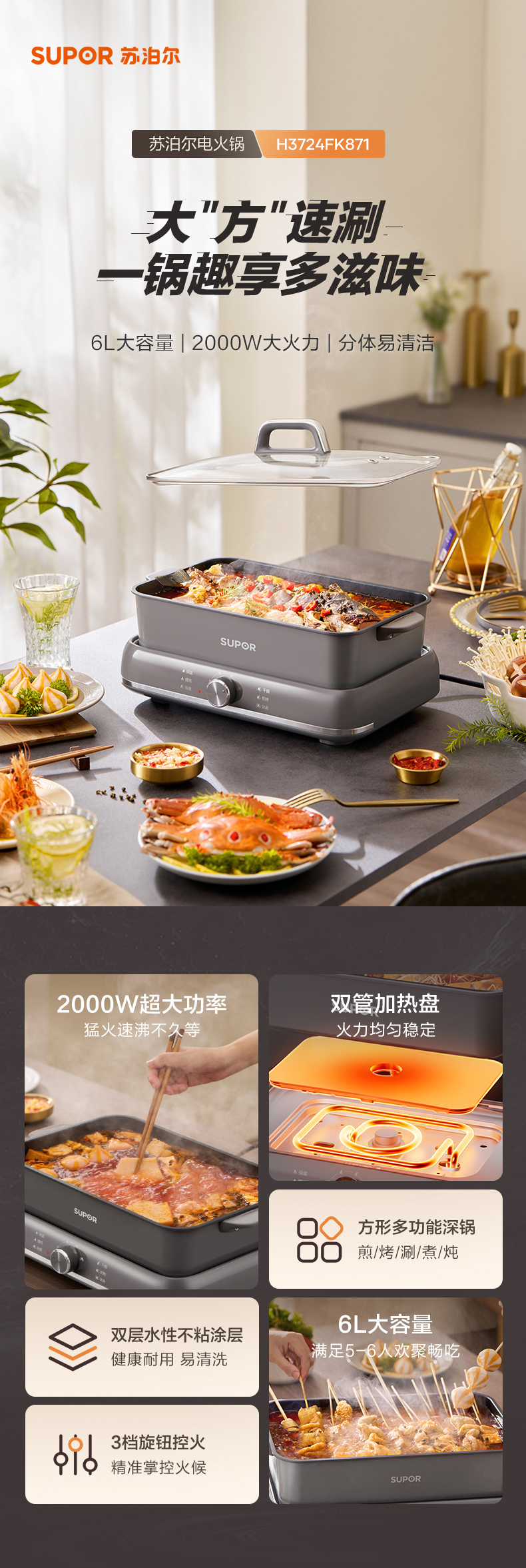 Supor Electric Hot Pot HomePacter Специфический горячий горшок 6 л.