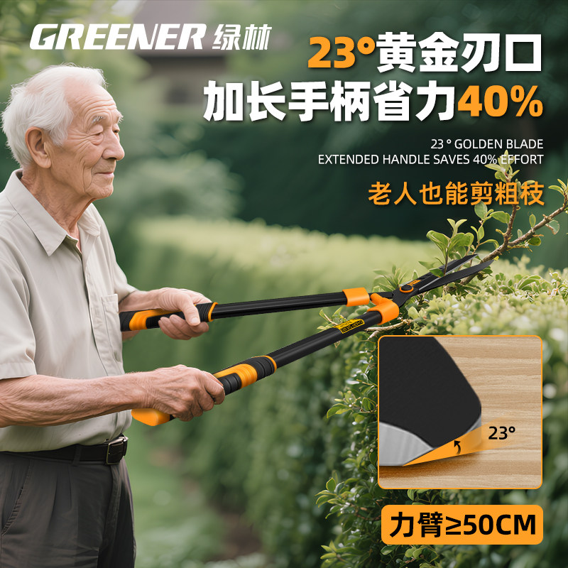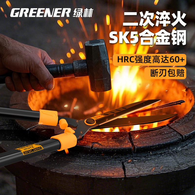 Зеленое лесное садоводство Большое ножницы покрывают покрытие сада зеленые режущие саженцы Высокие ветви Определяют филиалы специальные ножницы