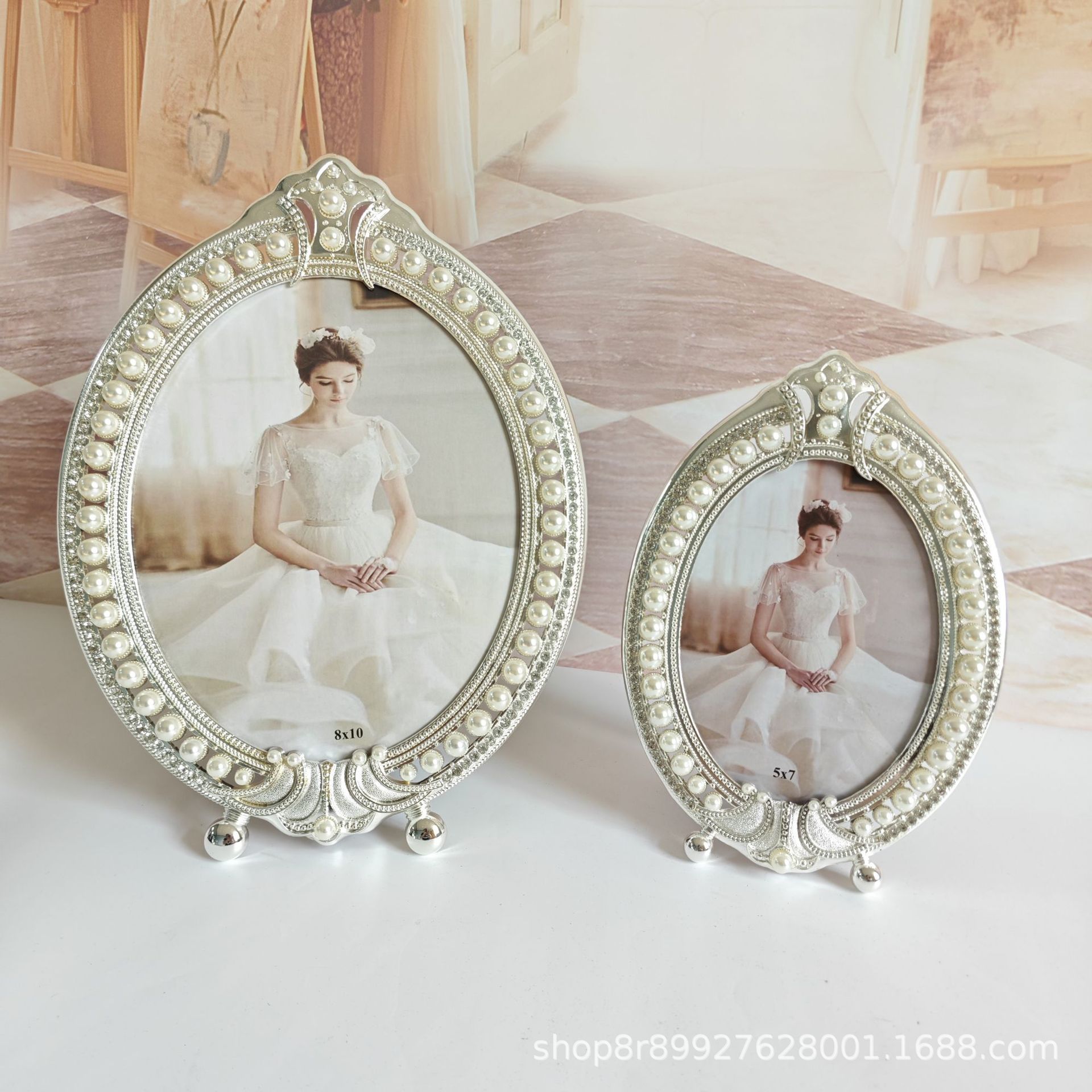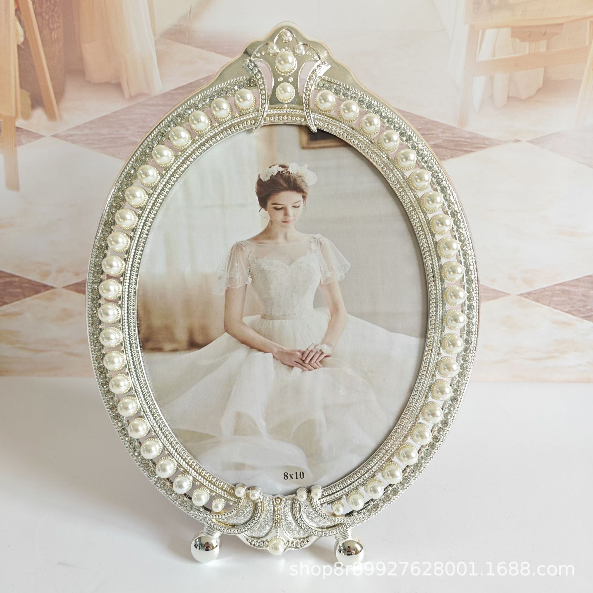 - 8*10 фоторамка с короной, серебряная металлическая фоторамка с жемчугом