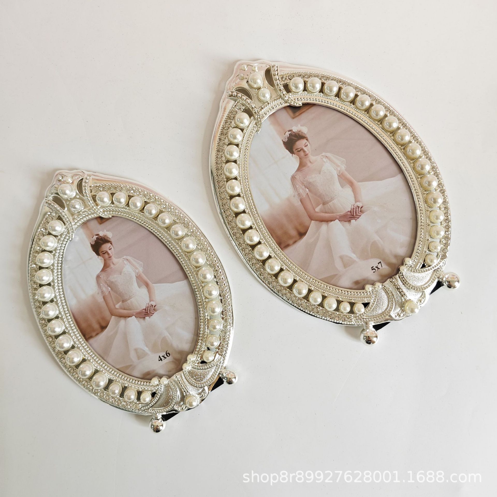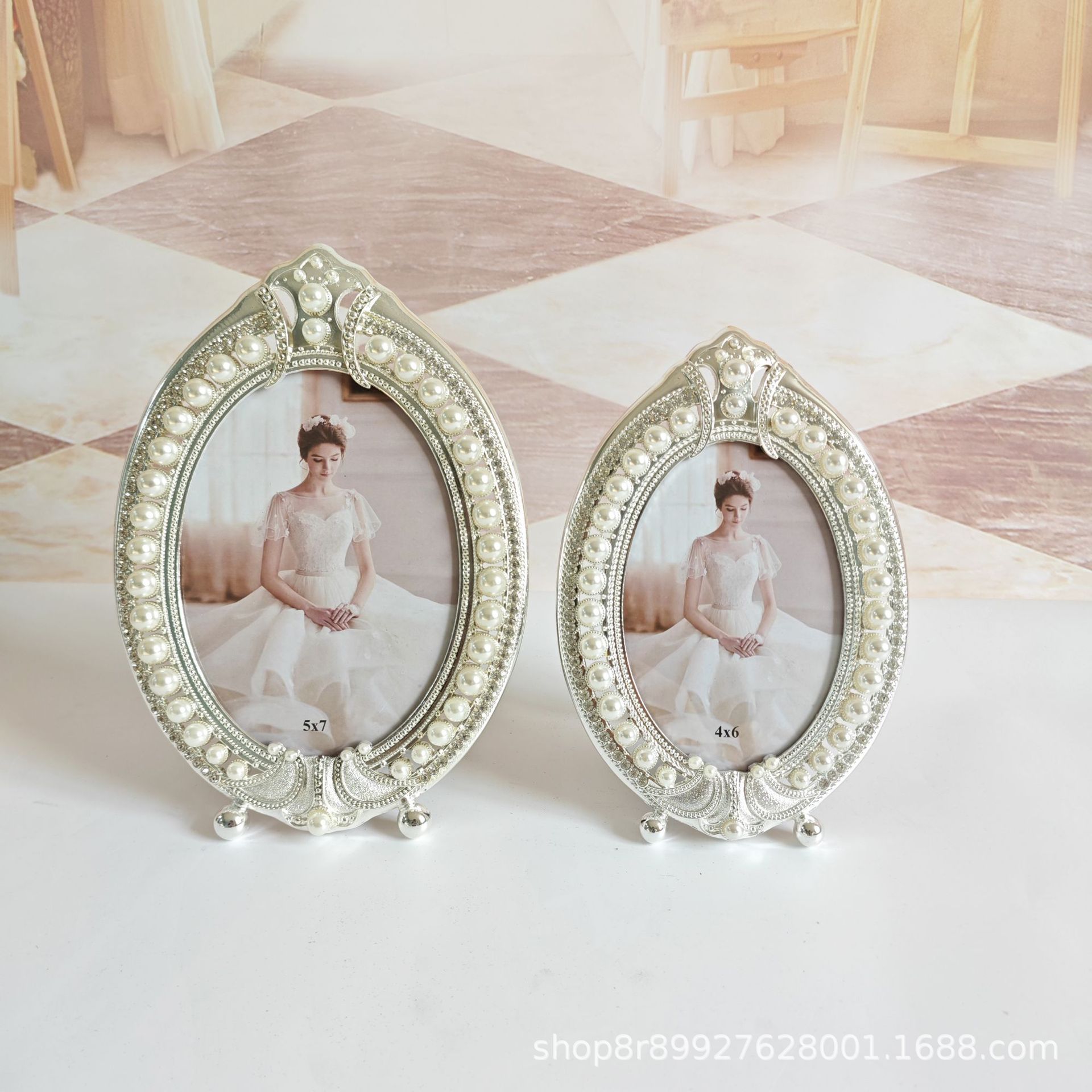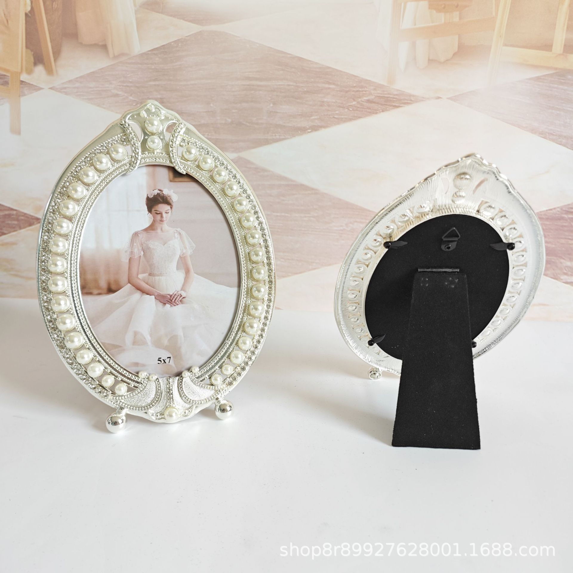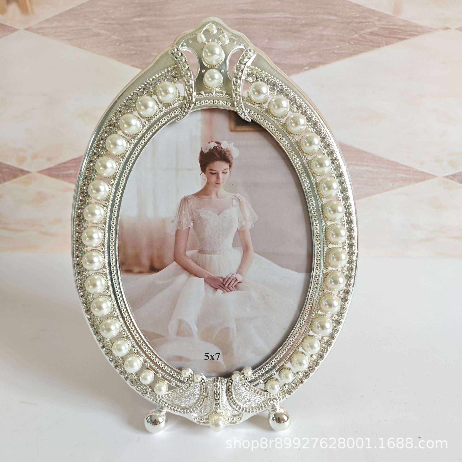 - 5*7 фоторамка с короной, серебряная металлическая фоторамка с жемчугом