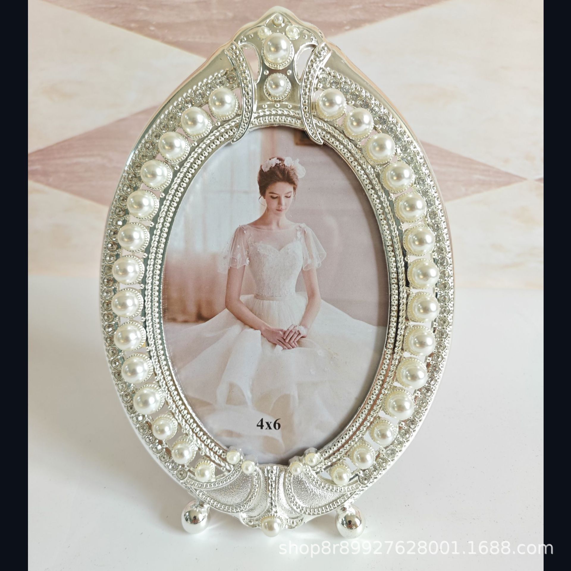 - 4*6 фоторамка с короной, серебряная металлическая фоторамка с жемчугом