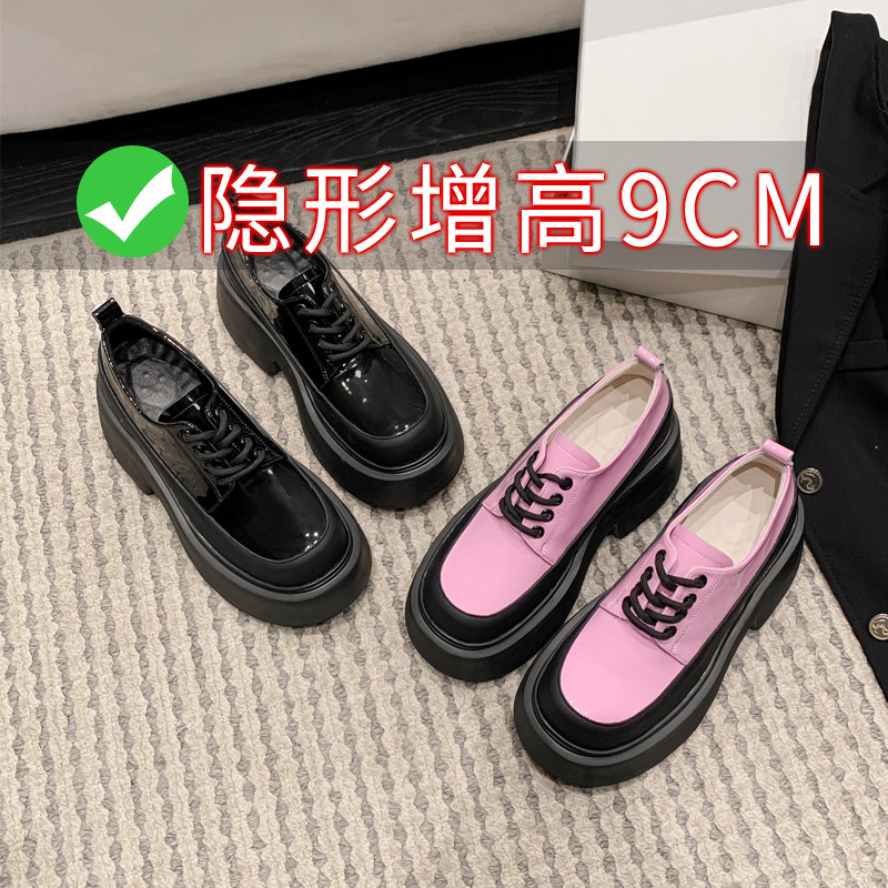 Маленькие кожаные туфли на высоком каблуке и толстой подошве для маленьких женщин, туфли из натуральной кожи на шнуровке, маленький размер 33 в британском стиле, суперпопулярная женская обувь, увеличивающая внутренний рост.