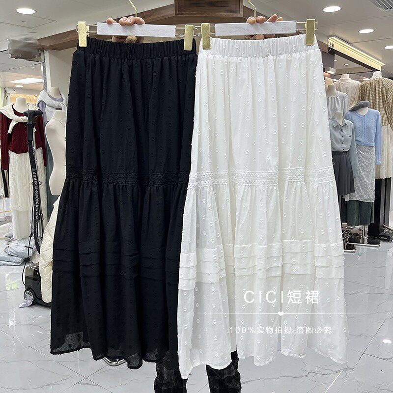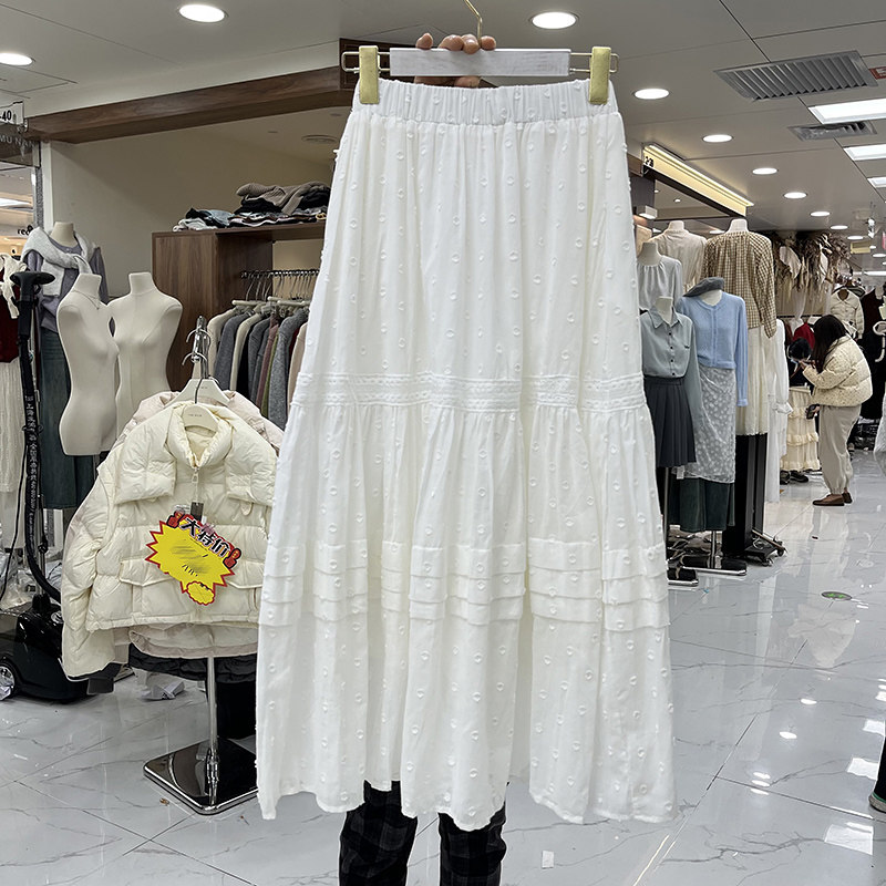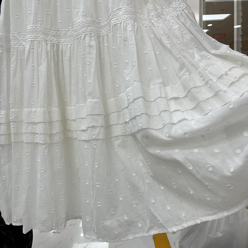 Кружевная длинная белая трехмерная хлопковая длинная юбка, французский стиль, с вышивкой, А-силуэт