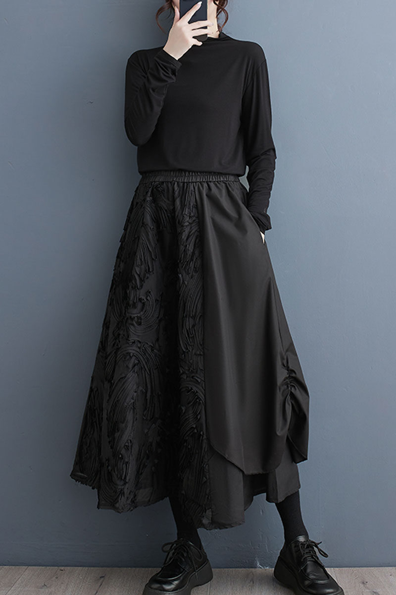 Трехмерная приталенная юбка, свободный крой, А-силуэт, высокая талия