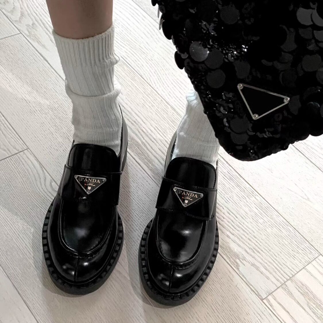 Британские модные туфли на одной платформе, весенние женские туфли на толстом каблуке, 2024 г., маленькие гонконгские лоферы из натуральной кожи с толстой подошвой, треугольные лоферы с педалями