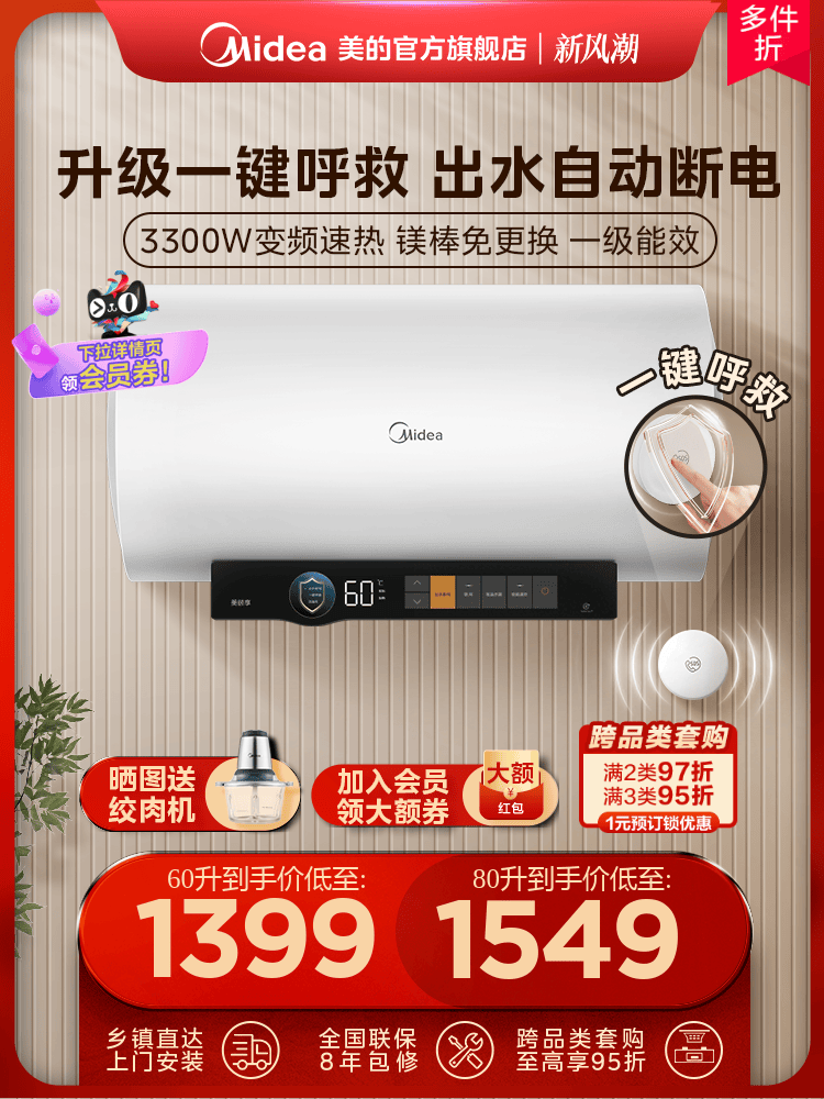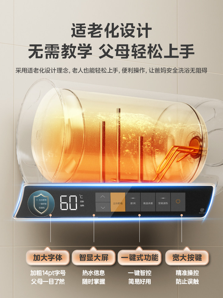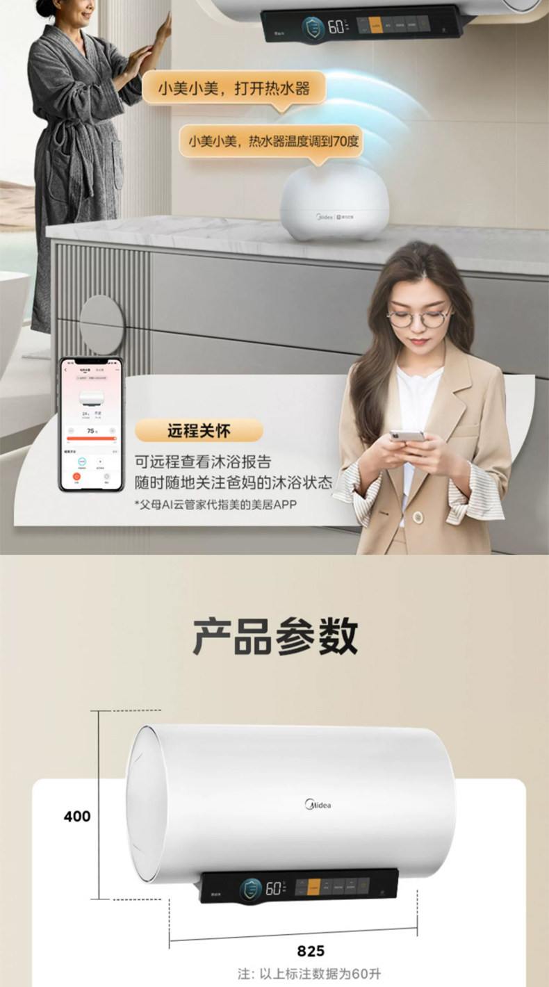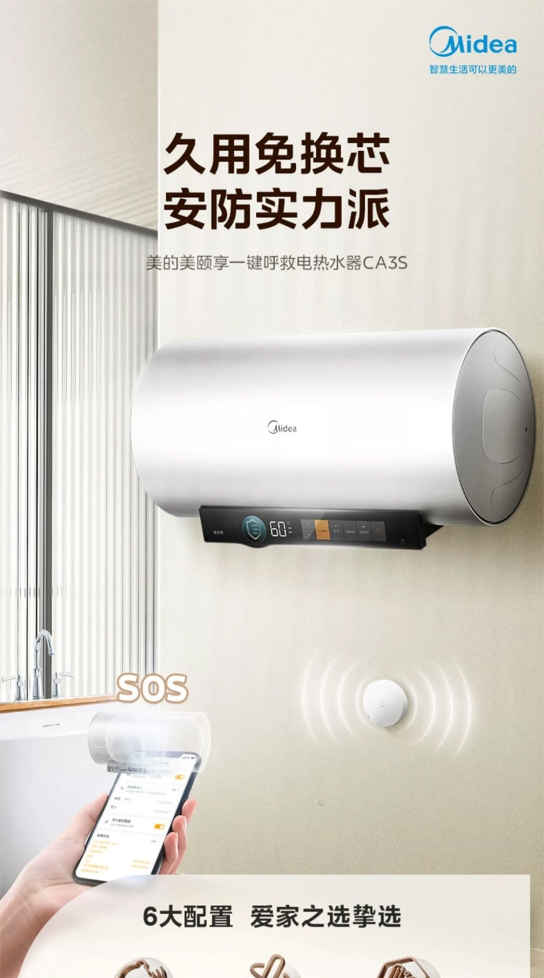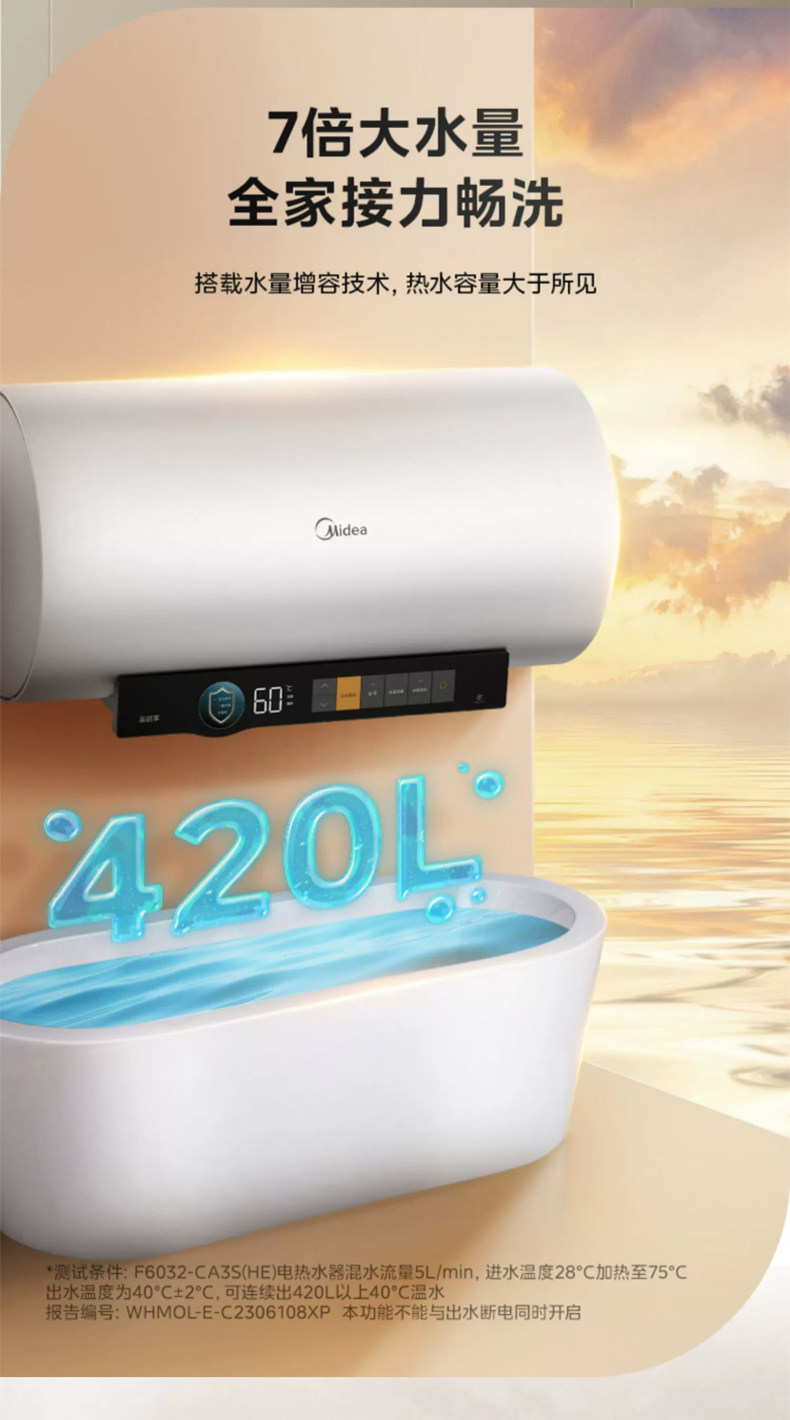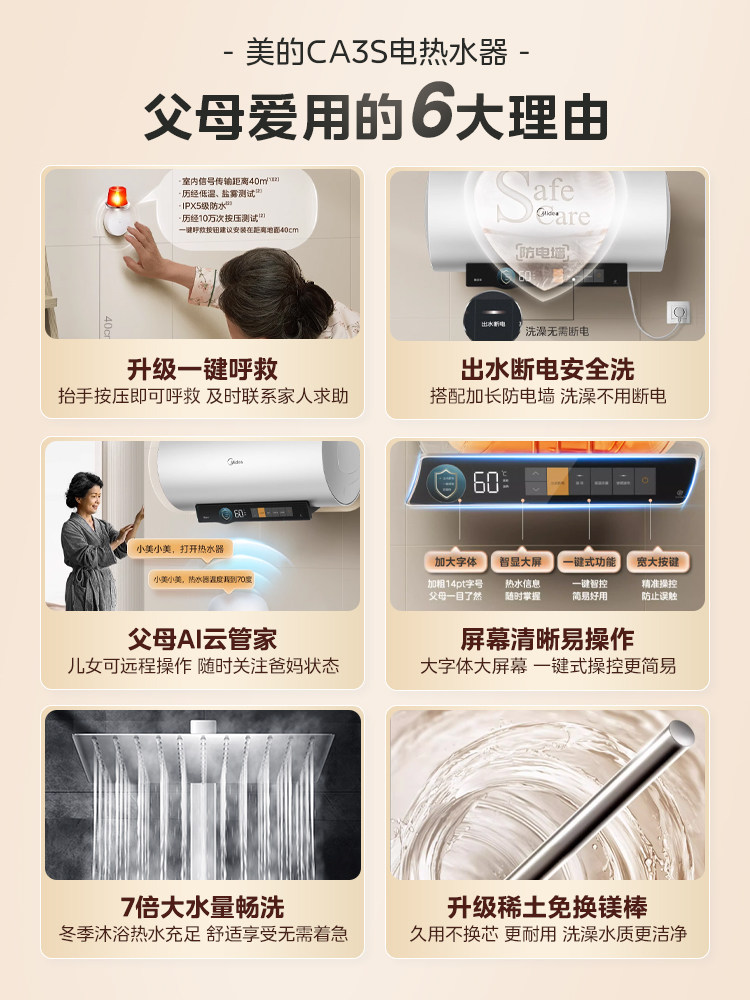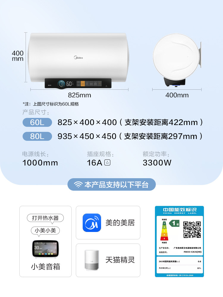 [Один -клик для помощи] Midea CA3S Электрический водонагреватель 60 -литровый частотный выходной разрыв водопровода -Первая энергоэффективность. Домохозяйство 80 литров